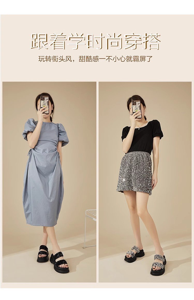샌들 및 슬리퍼 여성 여름 야외 착용 2025 새로운 스타일의 원라인 슬리퍼 머핀 두꺼운 바닥 높이 증가 스팽글 유행 야외 착용 샌들스토어 가기