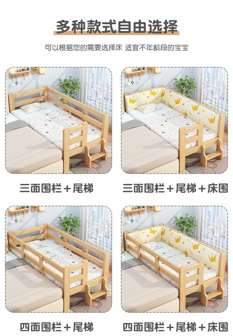 단단한 나무 어린이 침대 접합 침대 폭 넓은 침대 작은 침대 큰 수면 보호대 아기 확장 침대 접합 큰 침대