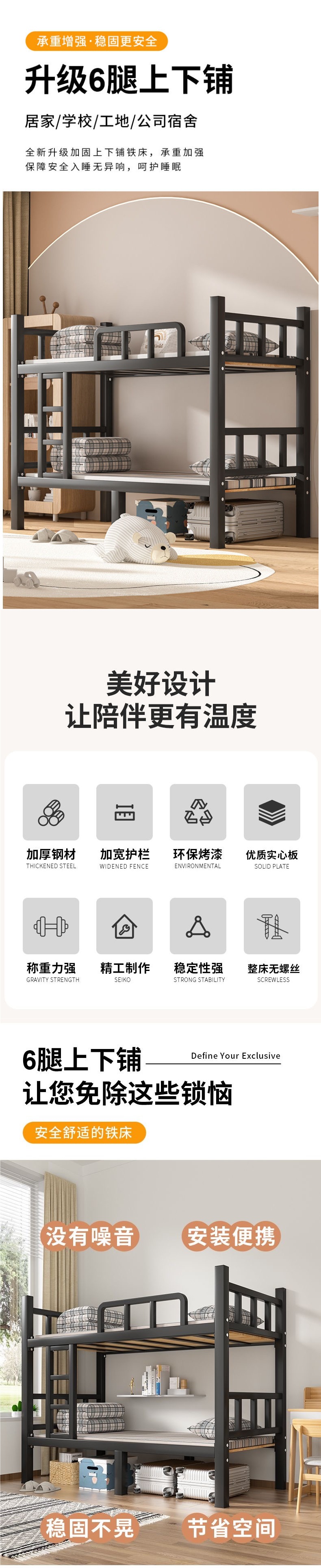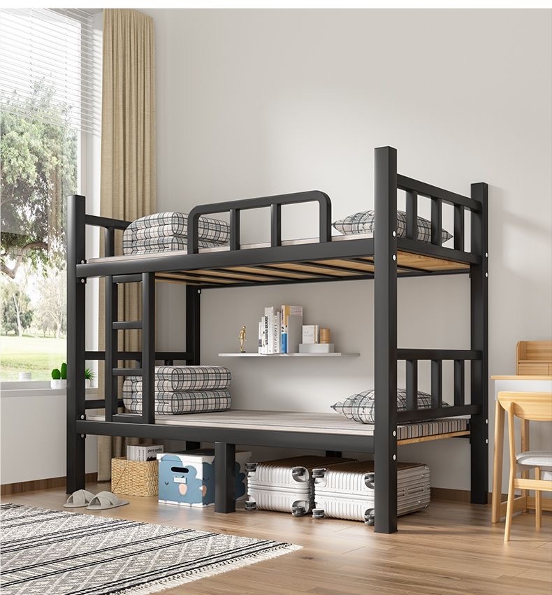 이층 침대 철제 침대 더블 직원 기숙사 침대 학교 아파트 철제 높고 낮은 철제 프레임 침대 선반스토어 가기