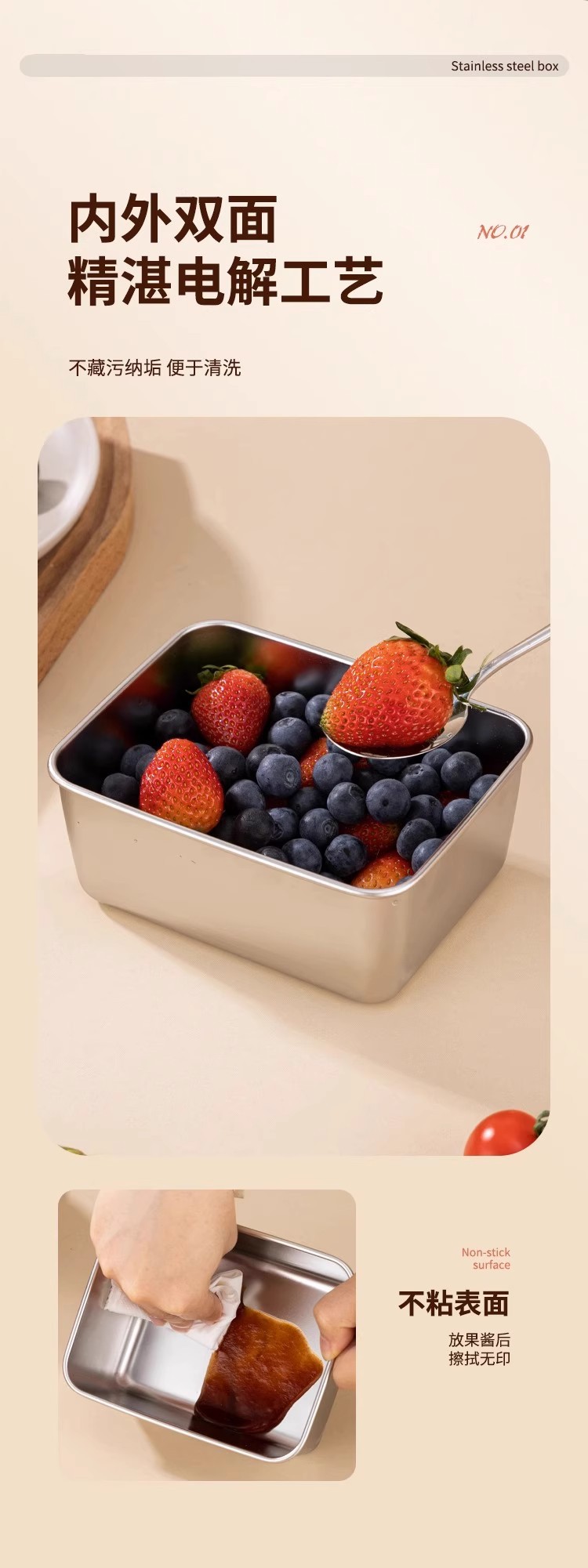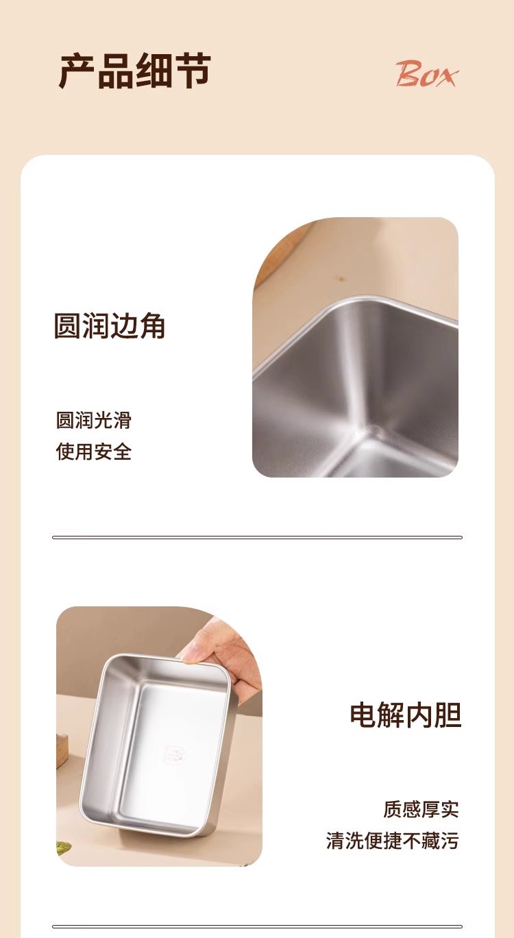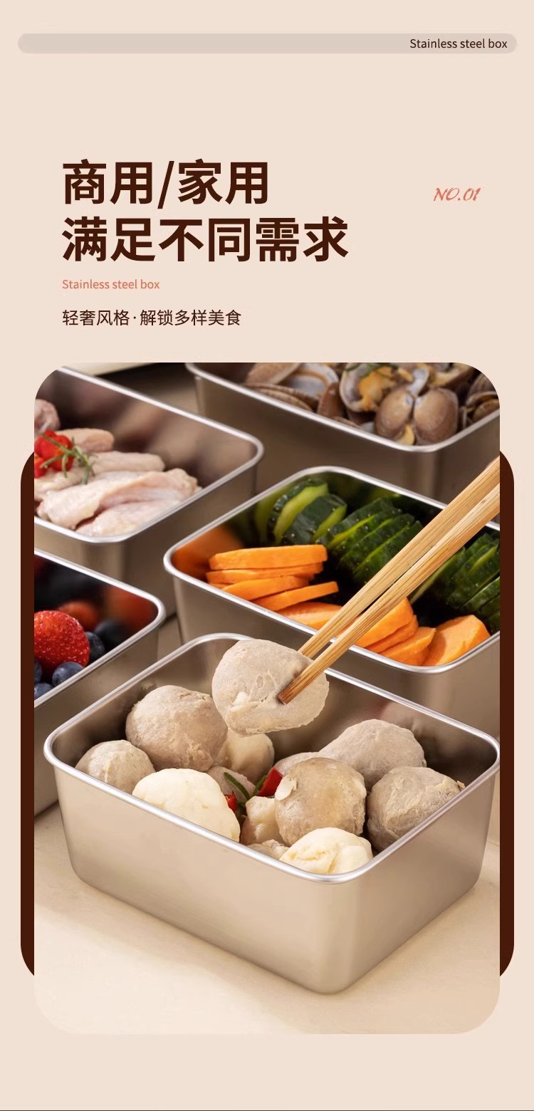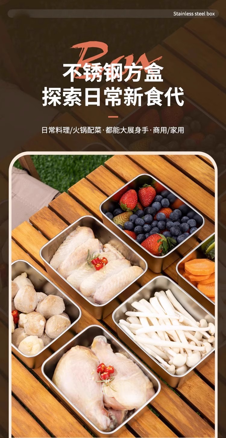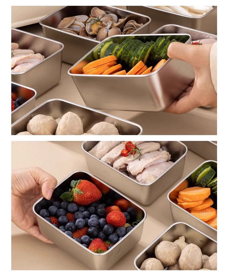 독일 304 신선한 보관 상자 식품 등급 스테인리스 고기 과일 방진 상자 냉장고 냉동고 보관 상자 도시락