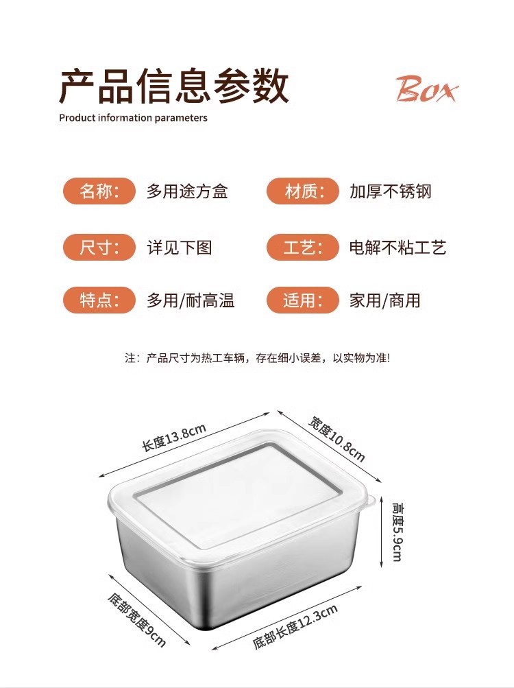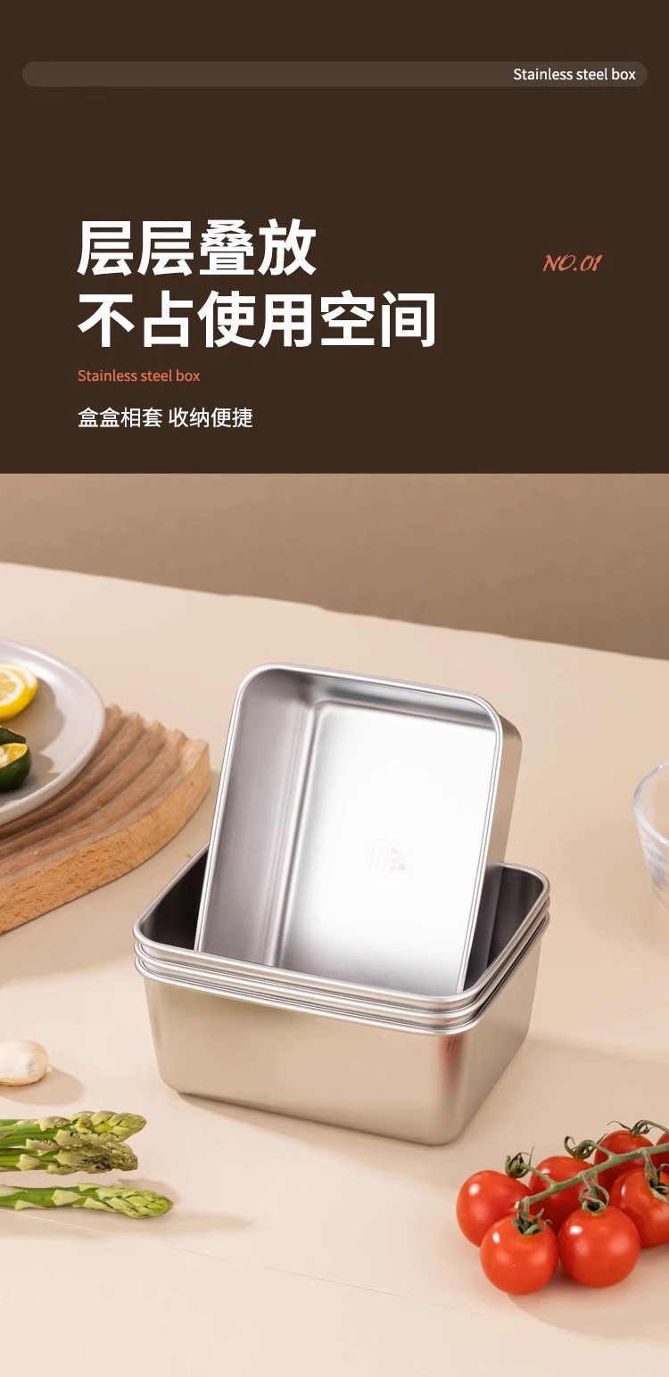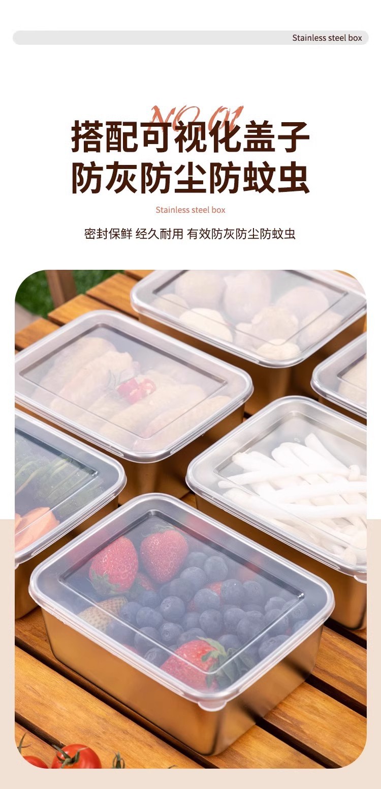 독일 304 신선한 보관 상자 식품 등급 스테인리스 고기 과일 방진 상자 냉장고 냉동고 보관 상자 도시락스토어 가기