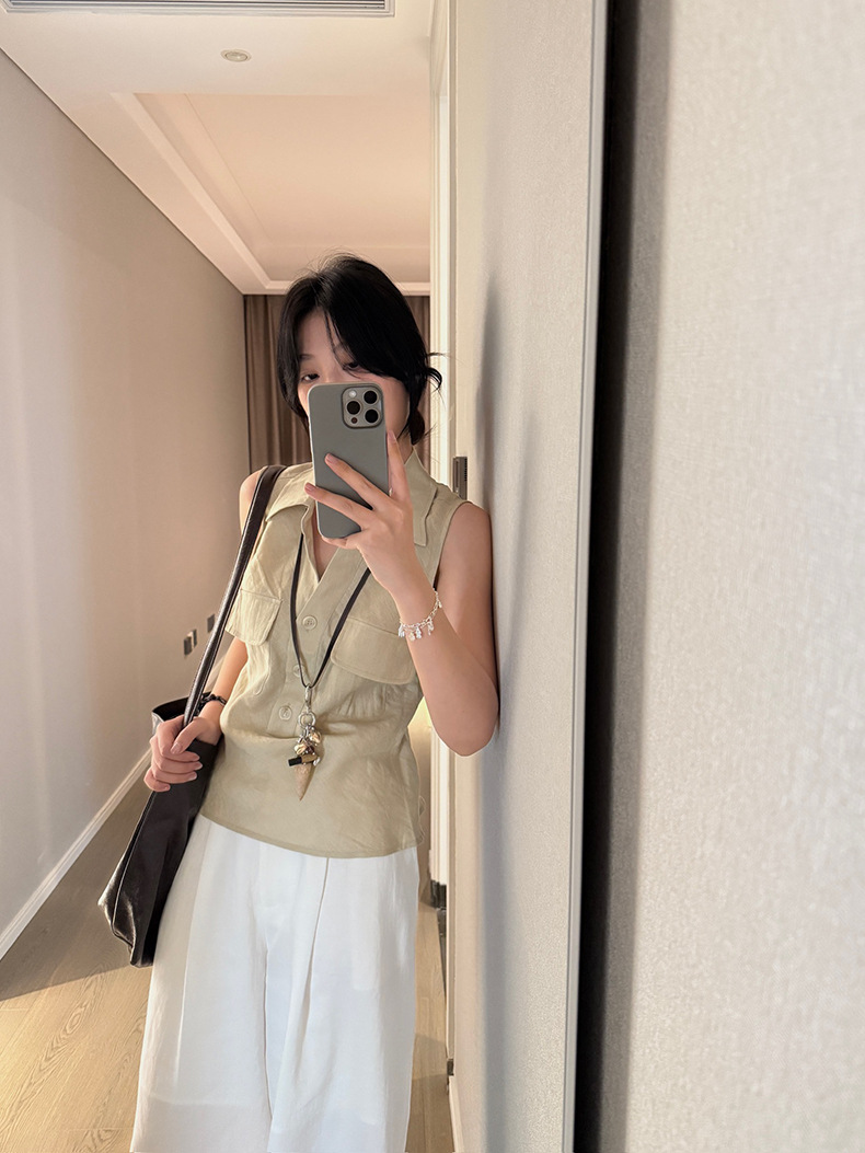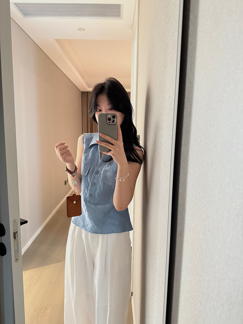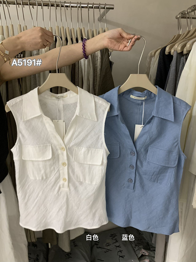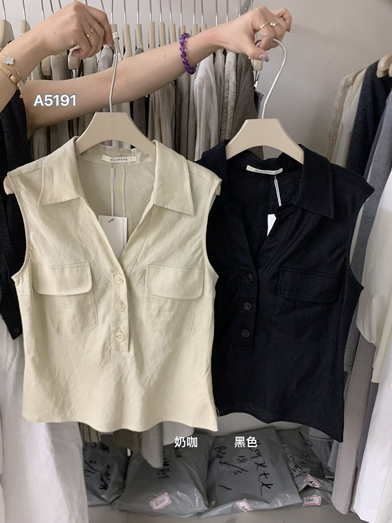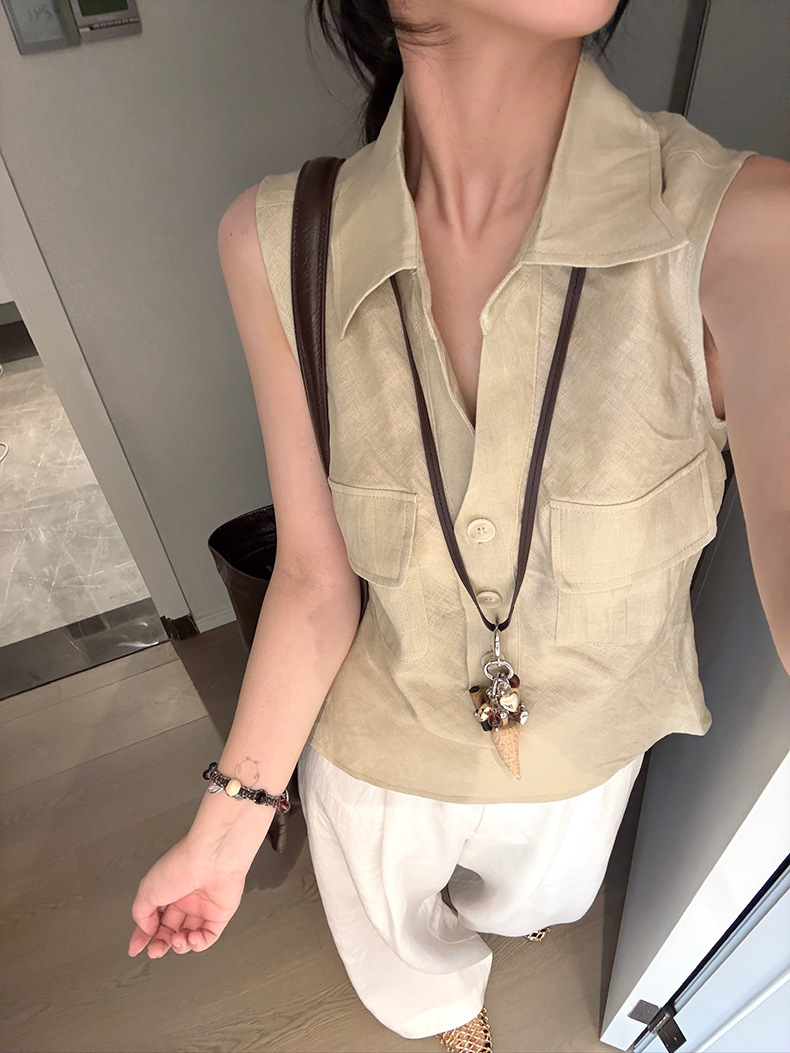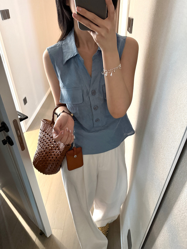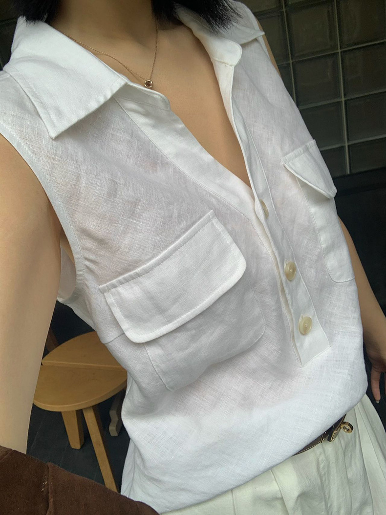 Yuanpai 청사진 2025 여름 새로운 100% 리넨 민소매 셔츠 빈티지 작업복 조끼 A5191스토어 가기