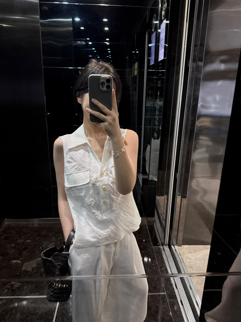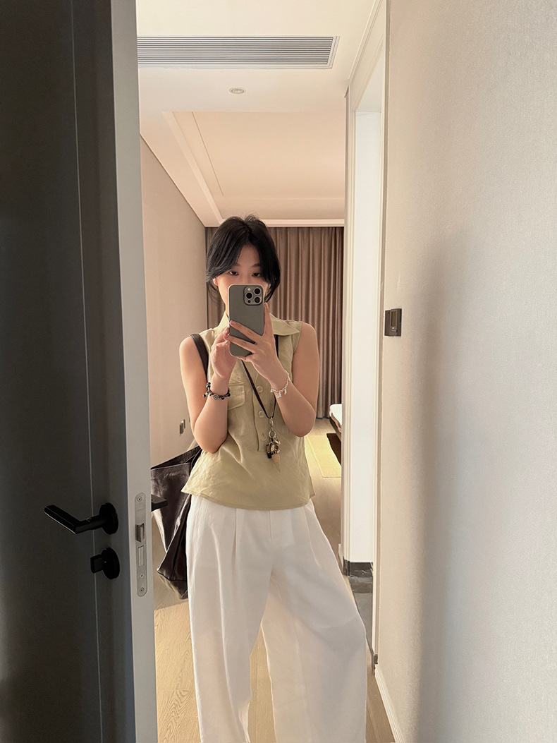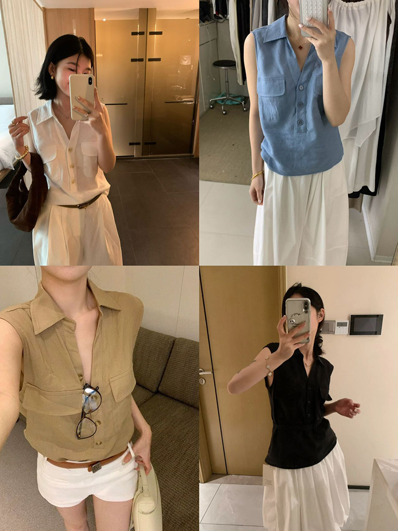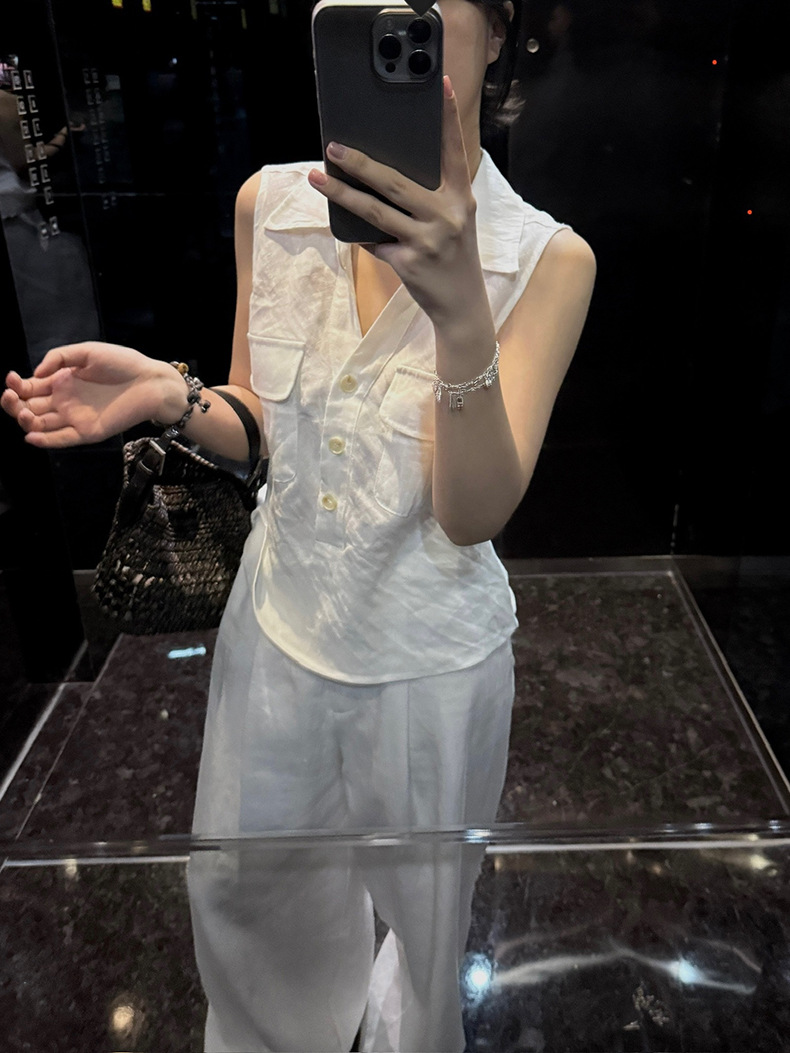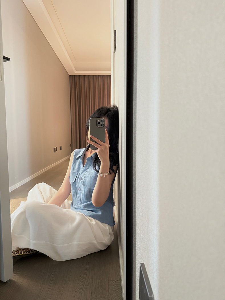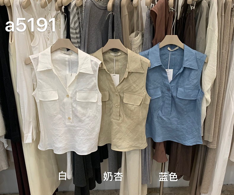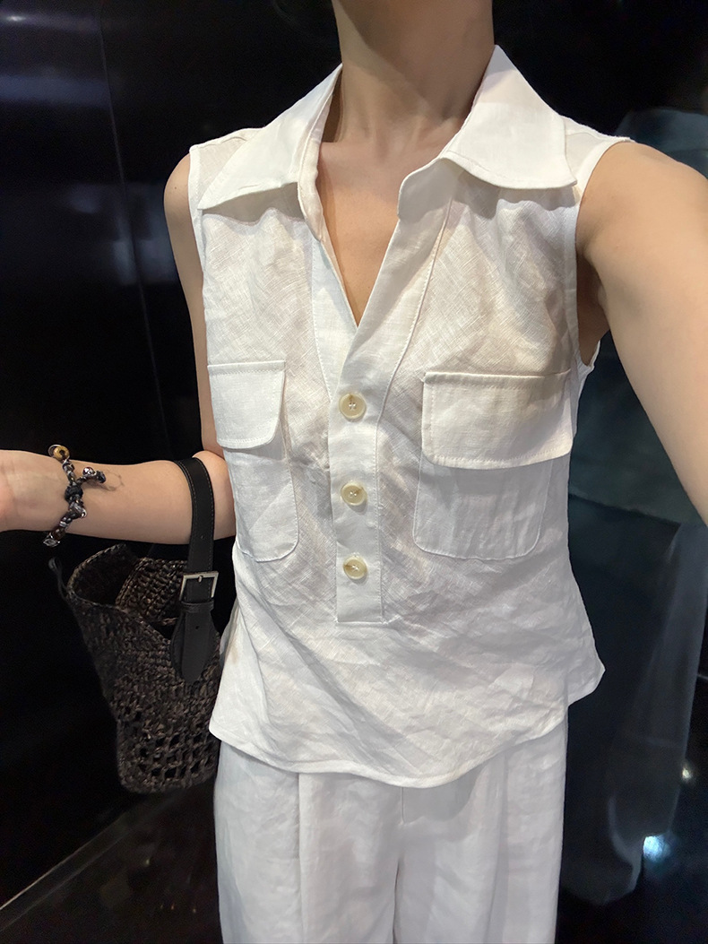 Yuanpai 청사진 2025 여름 새로운 100% 리넨 민소매 셔츠 빈티지 작업복 조끼 A5191스토어 가기