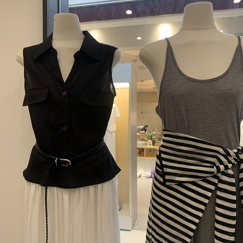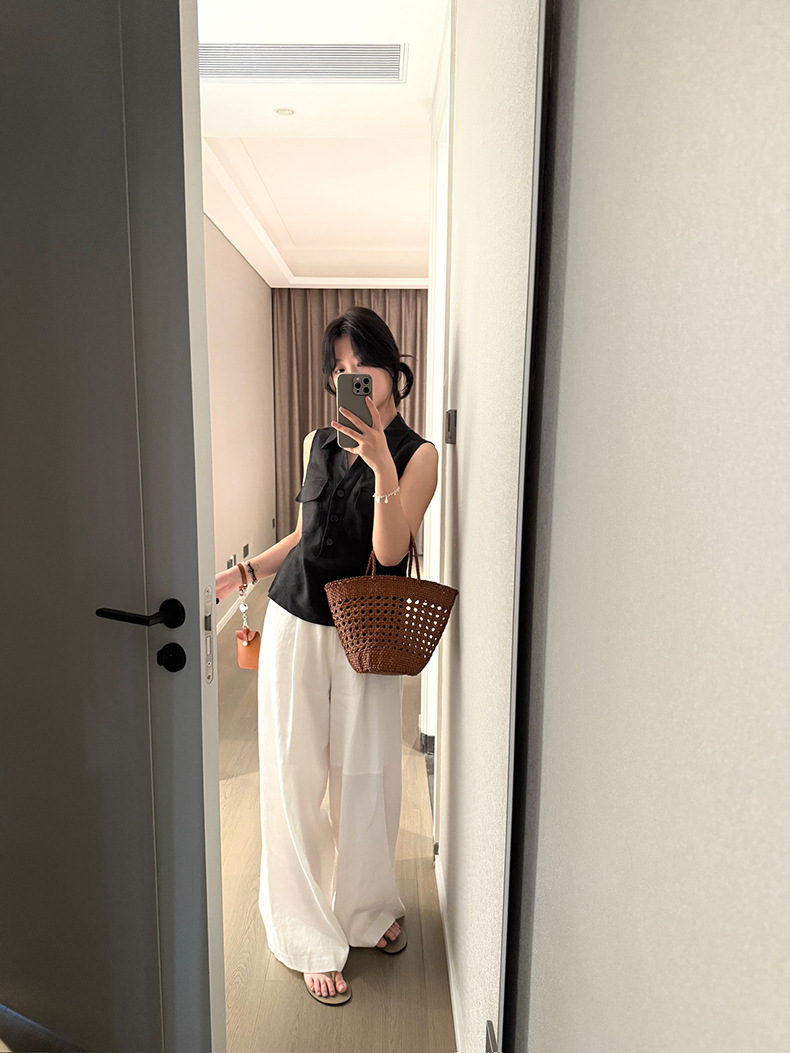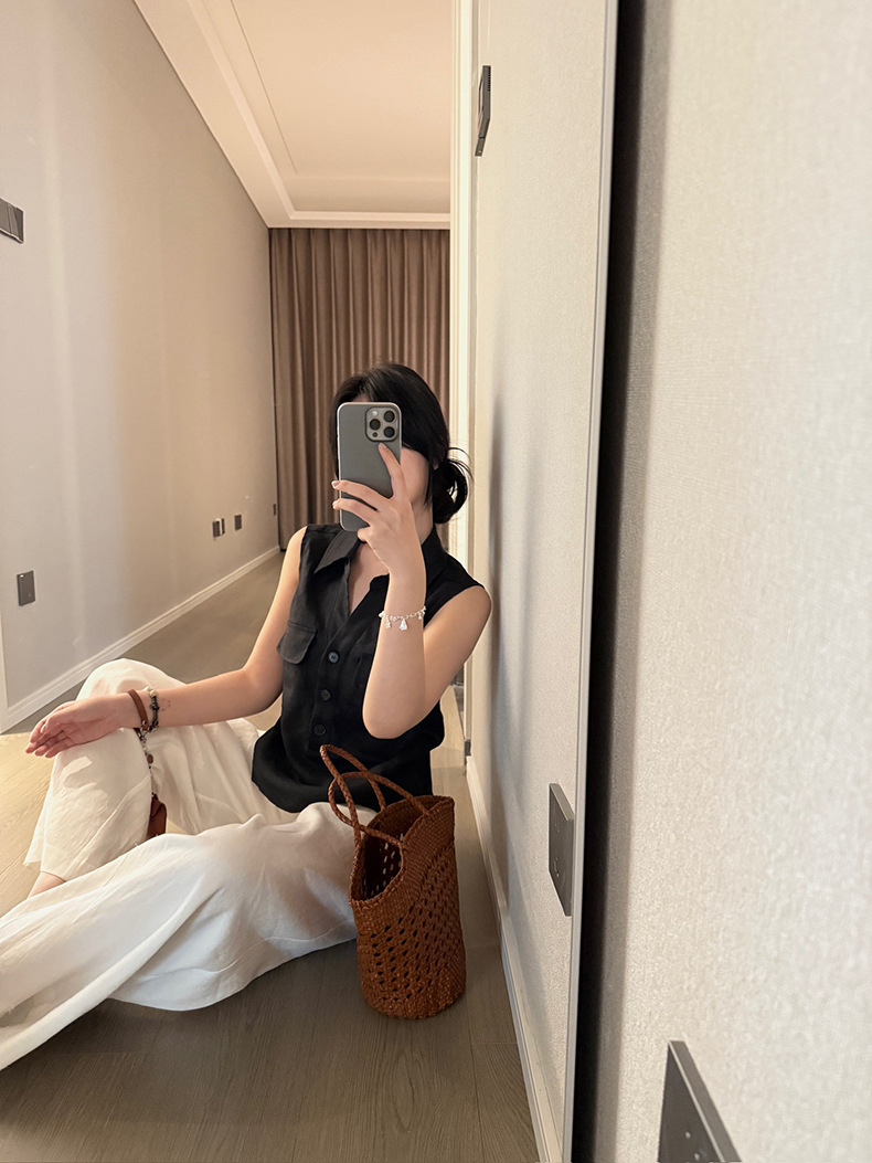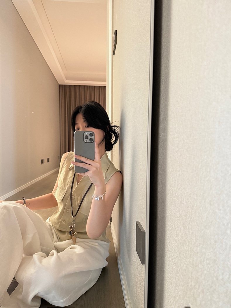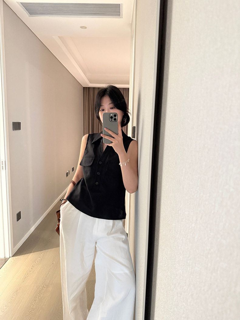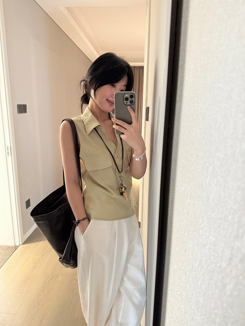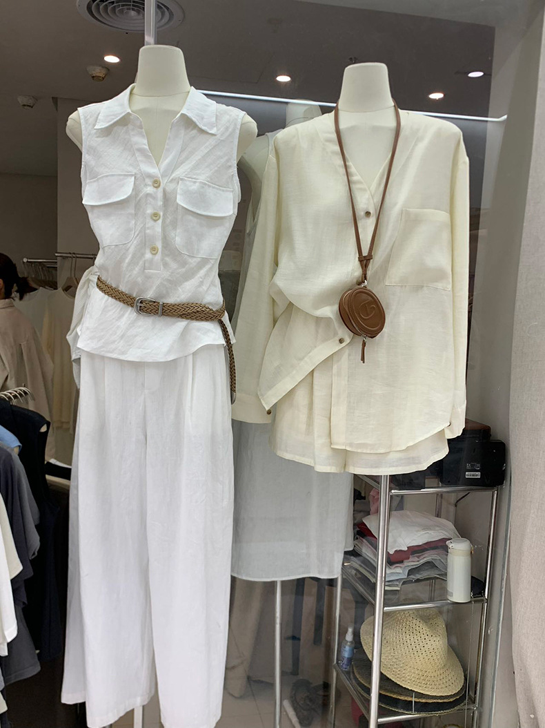 Yuanpai 청사진 2025 여름 새로운 100% 리넨 민소매 셔츠 빈티지 작업복 조끼 A5191스토어 가기