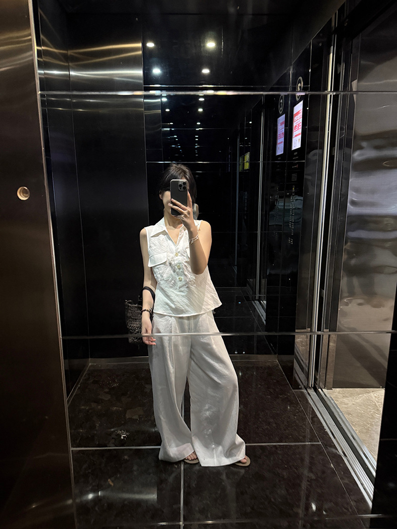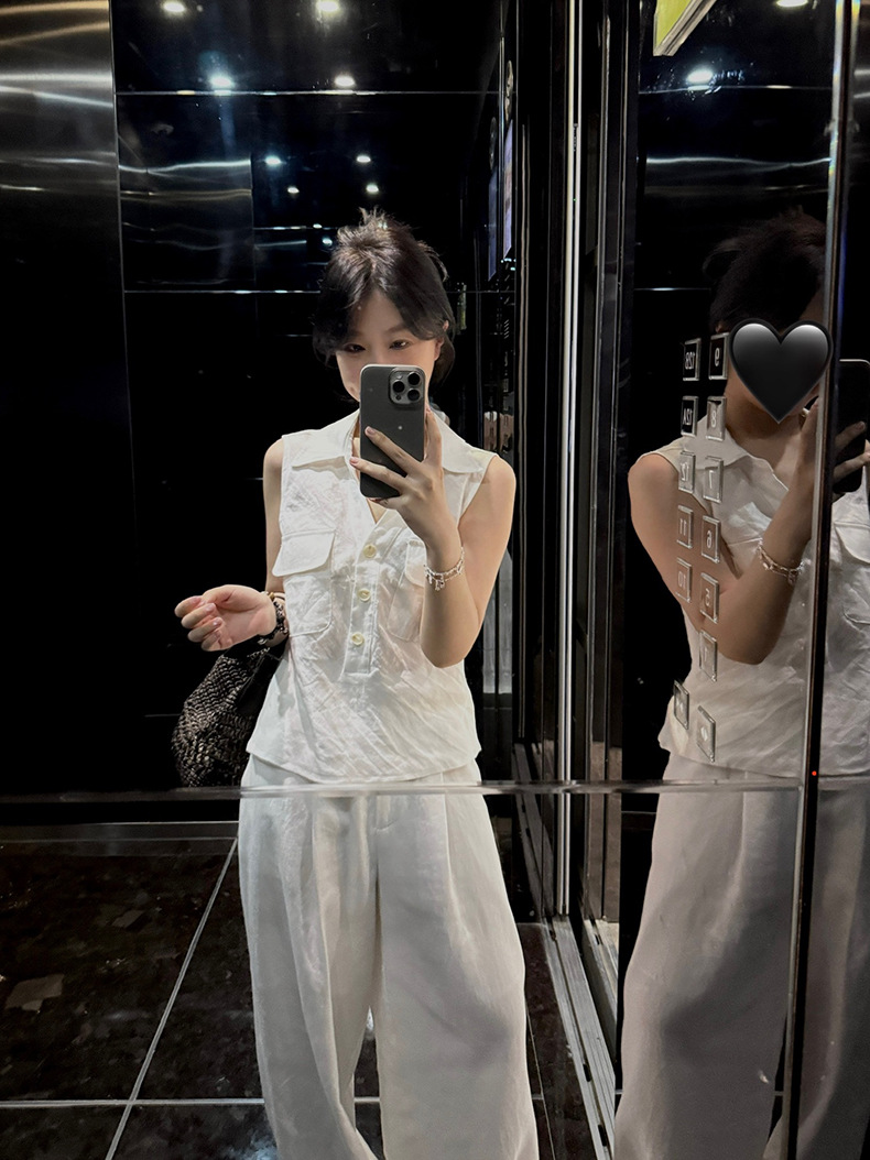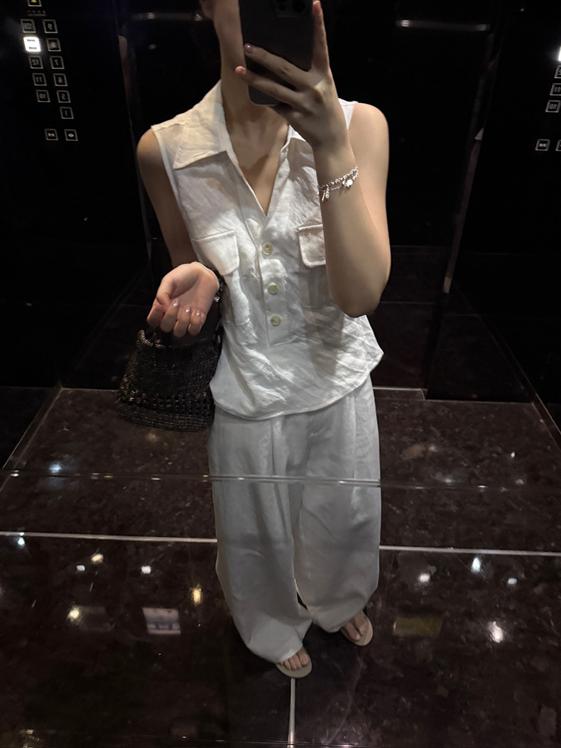 Yuanpai 청사진 2025 여름 새로운 100% 리넨 민소매 셔츠 빈티지 작업복 조끼 A5191
