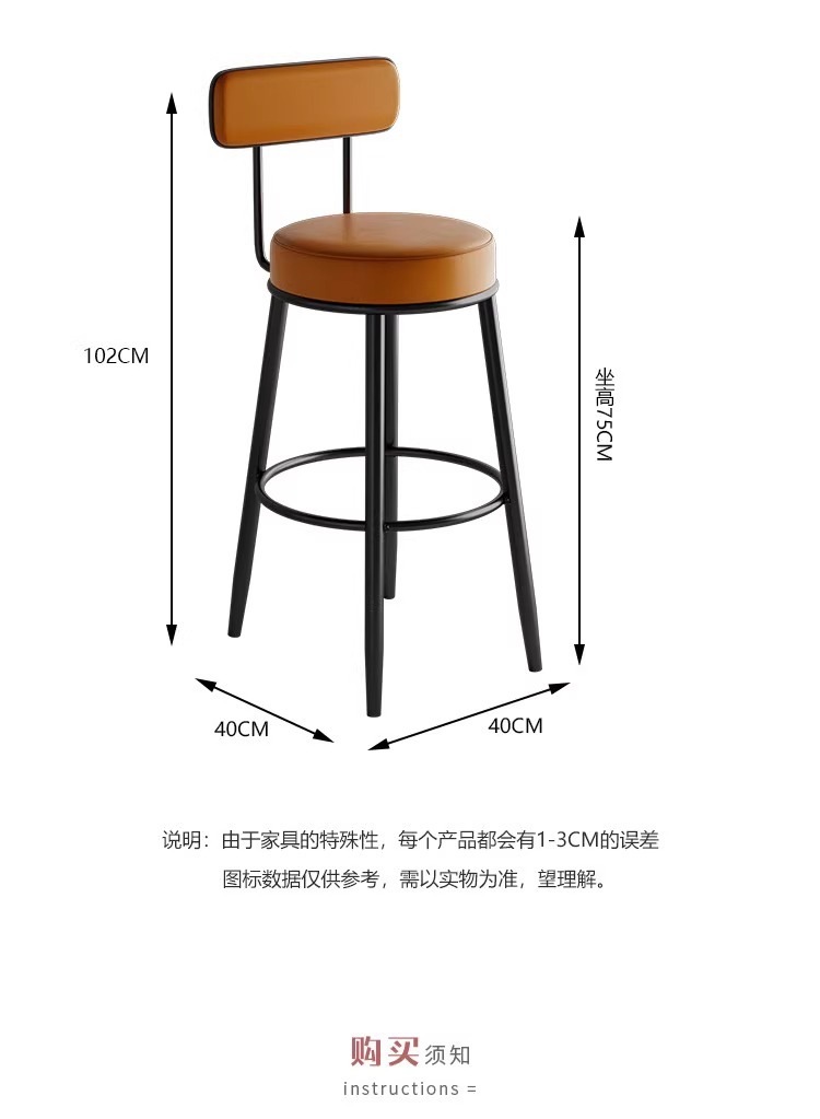 • 45 높이 블랙 다리 + 오렌지 가죽 시트쿠션