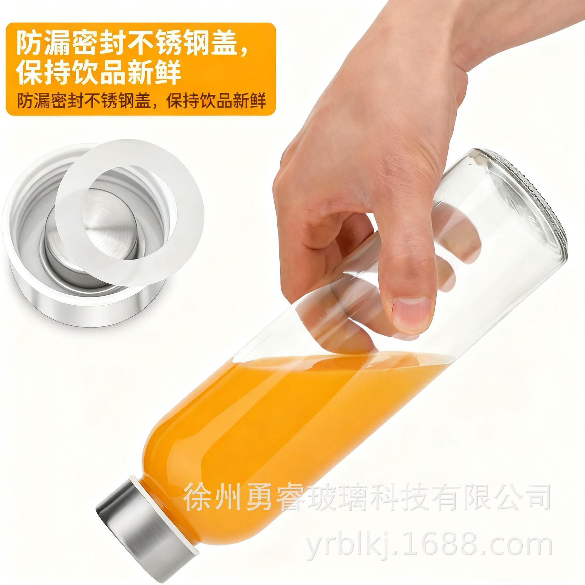 국경 16 온스 유리 컵 폭발 투명 주스 병 음료 주스 차 컵 뚜껑 누출 방지 세트스토어 가기