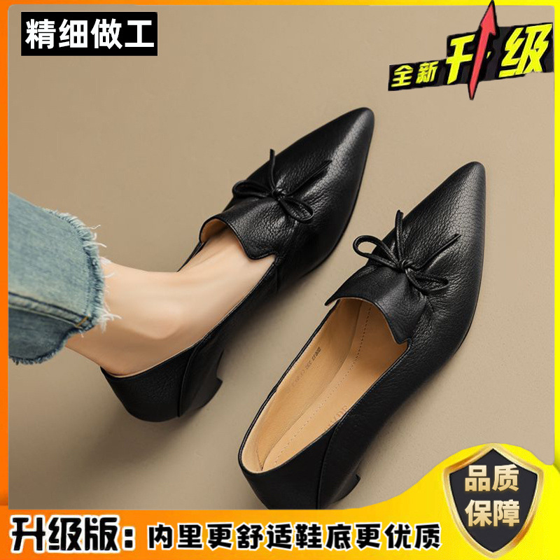 여성용 새 신발, 낮은 굽, 부드러운 밑창, 부드러운 표면, 깊은 입, 뾰족한 발가락, 두꺼운 굽, 편안하고 피곤하지 않은 작업 신발, 대형 사이즈스토어 가기