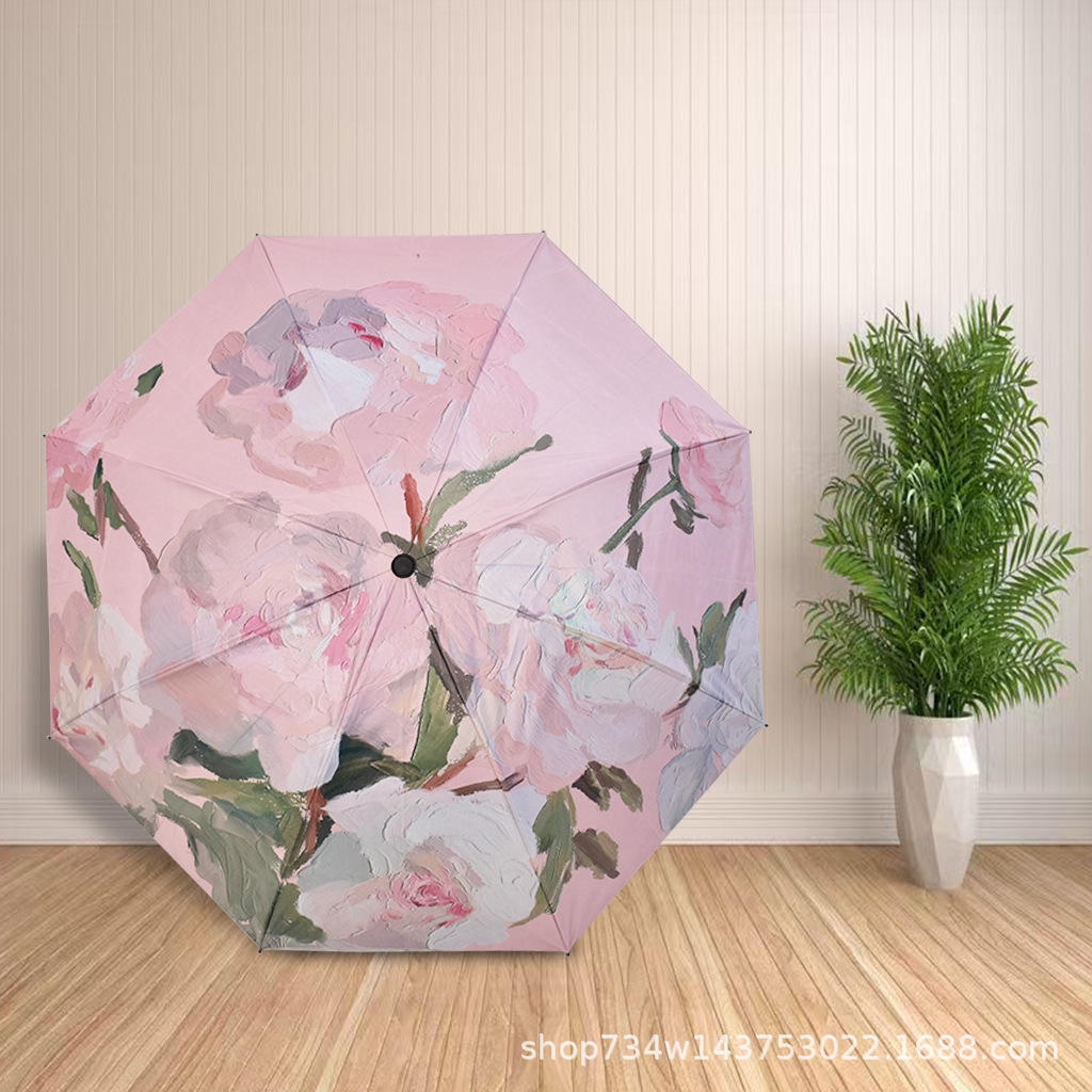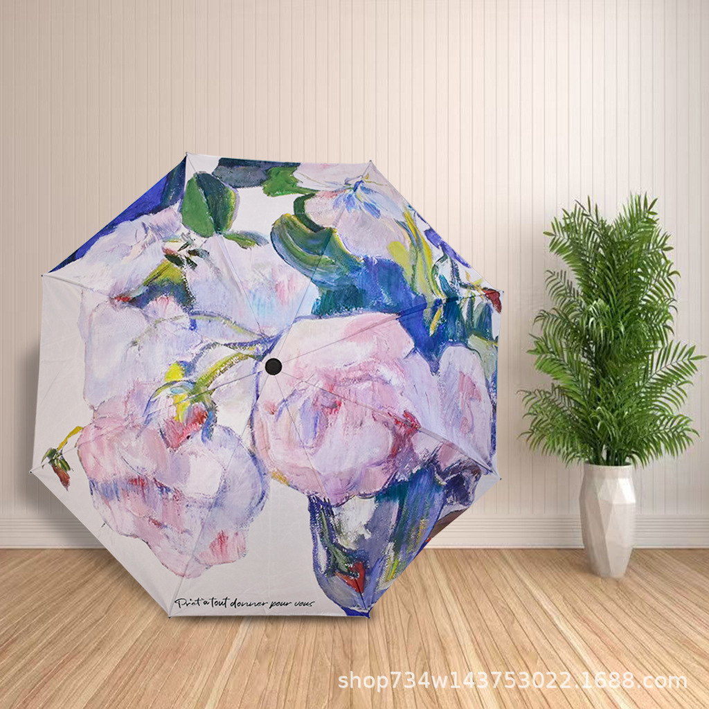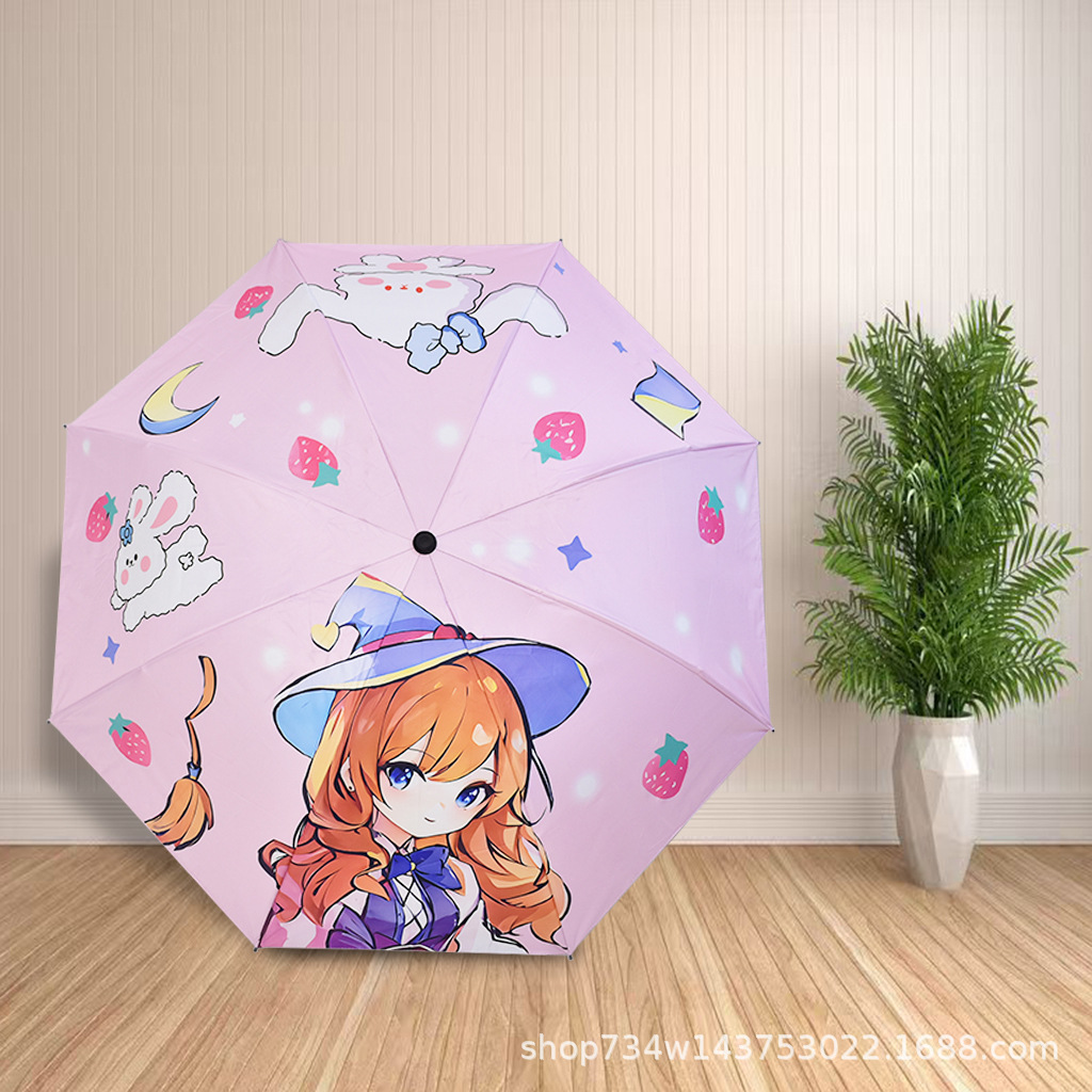 안전한 접이식 어린이 색 비와 빛나는 이중 사용 남성과 여성의 차양 선 스크린 우산 수동 우산 디지털 인쇄스토어 가기