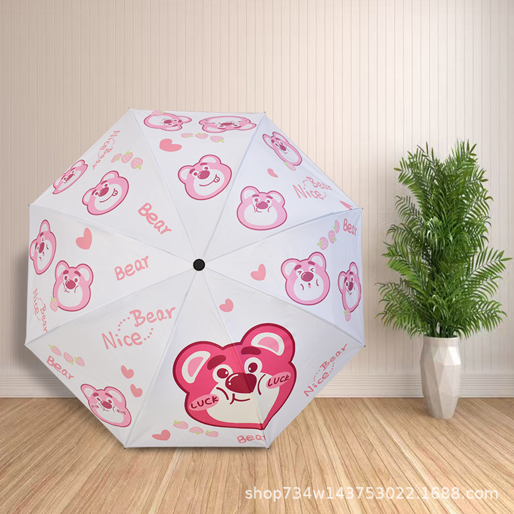 • 수동 8본 - 우산 아래 98cm - 귀여운 딸기곰
