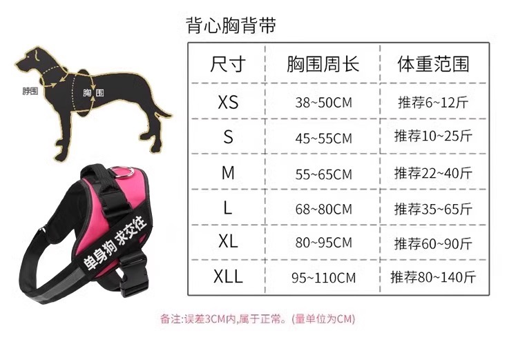 • 핑크 [가슴과 등판 별도 + 1.5m 반사 원형 로프 블랙]