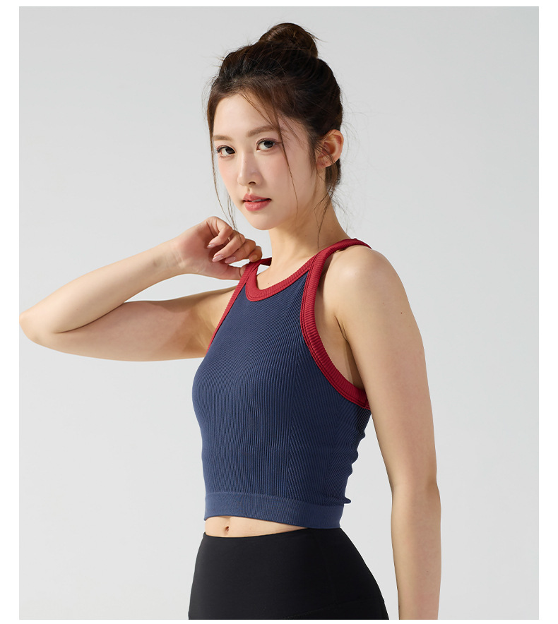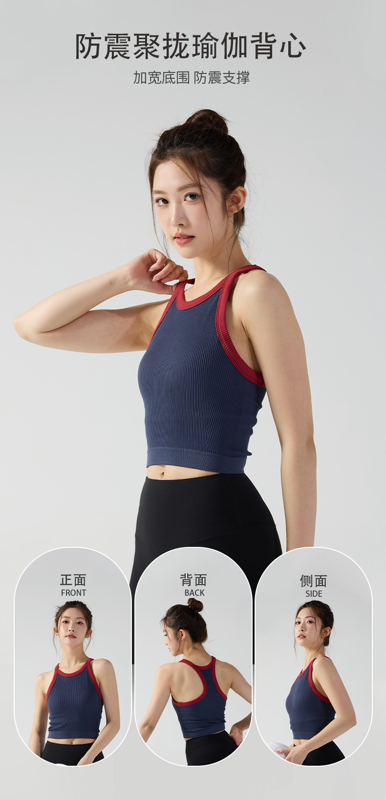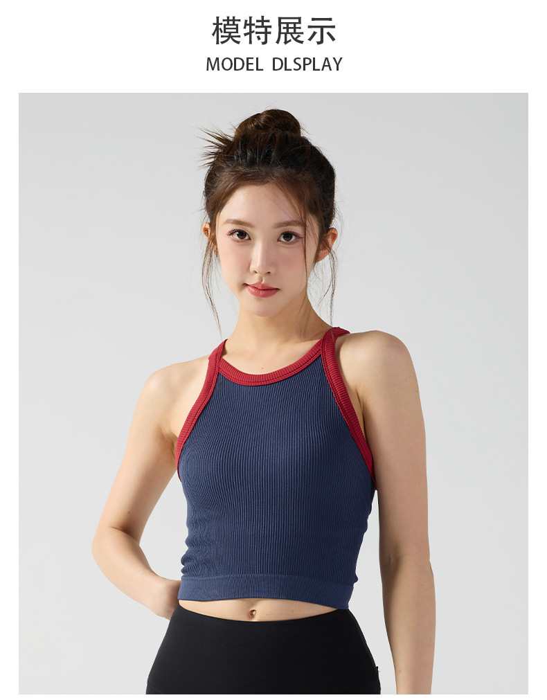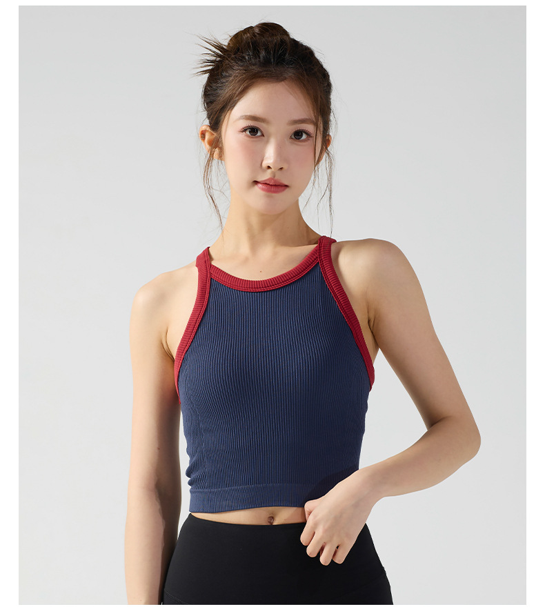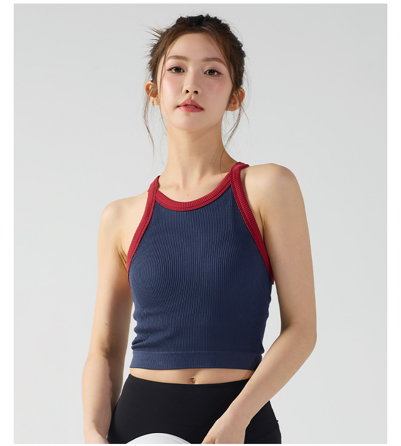 고정 컵 갈비뼈 3 차원 컬러 블록 요가 조끼 여성 원피스 충격 방지 타이트핏 스포츠 조끼스토어 가기