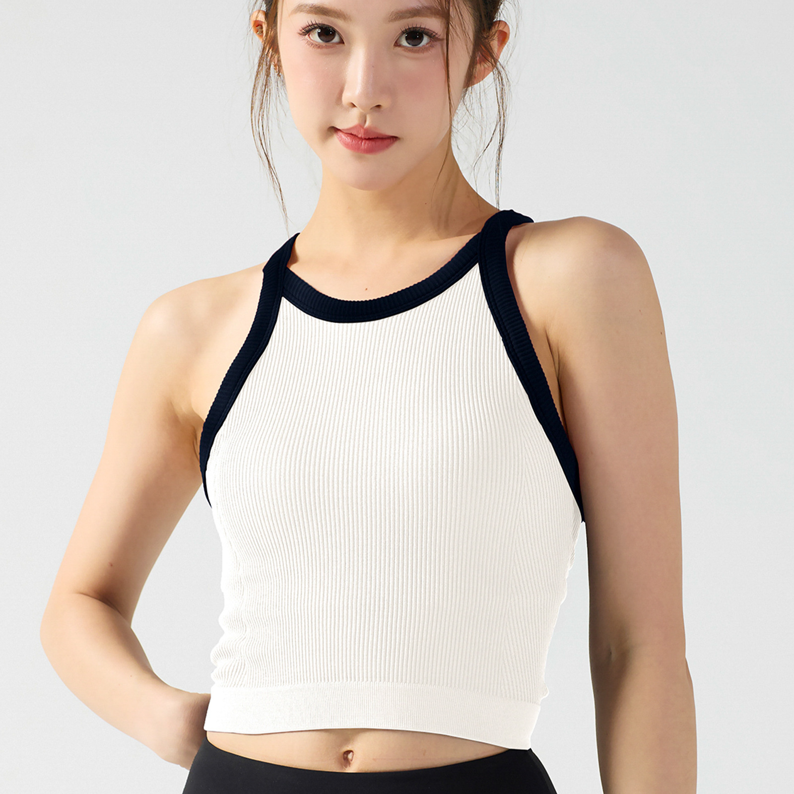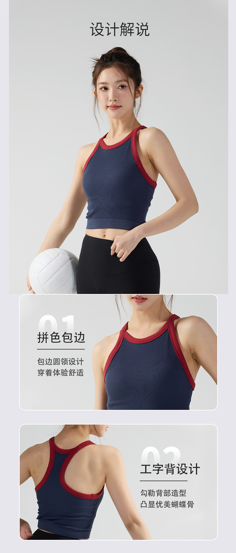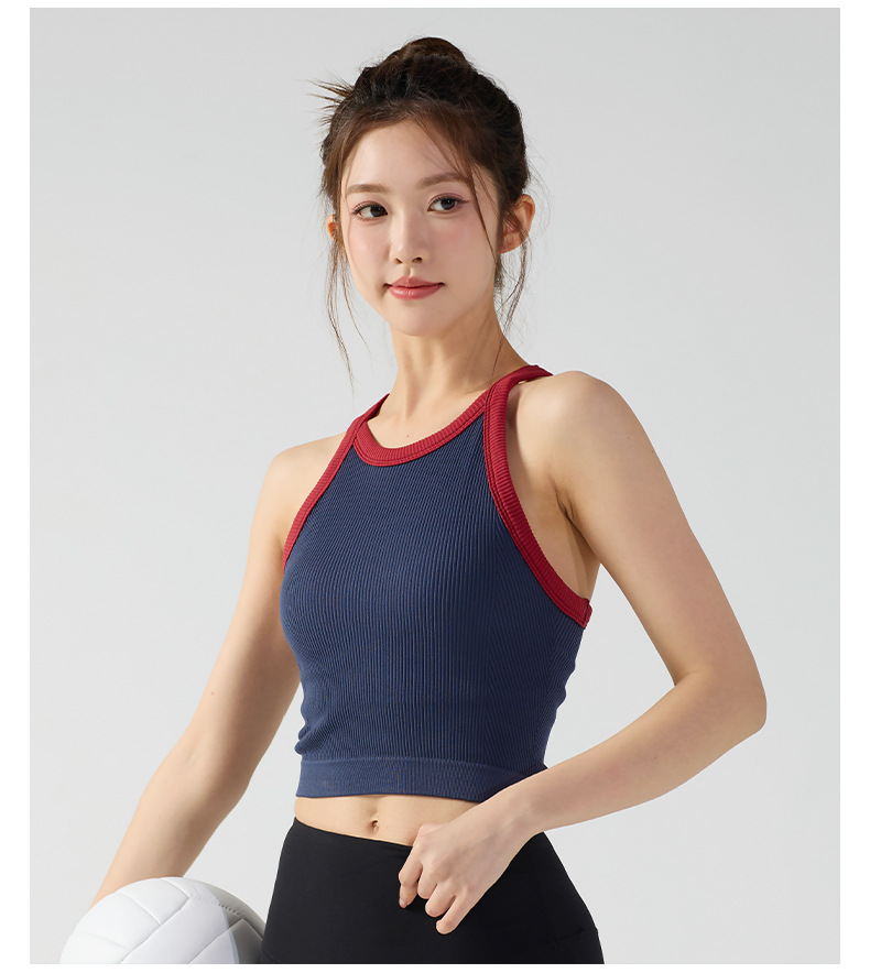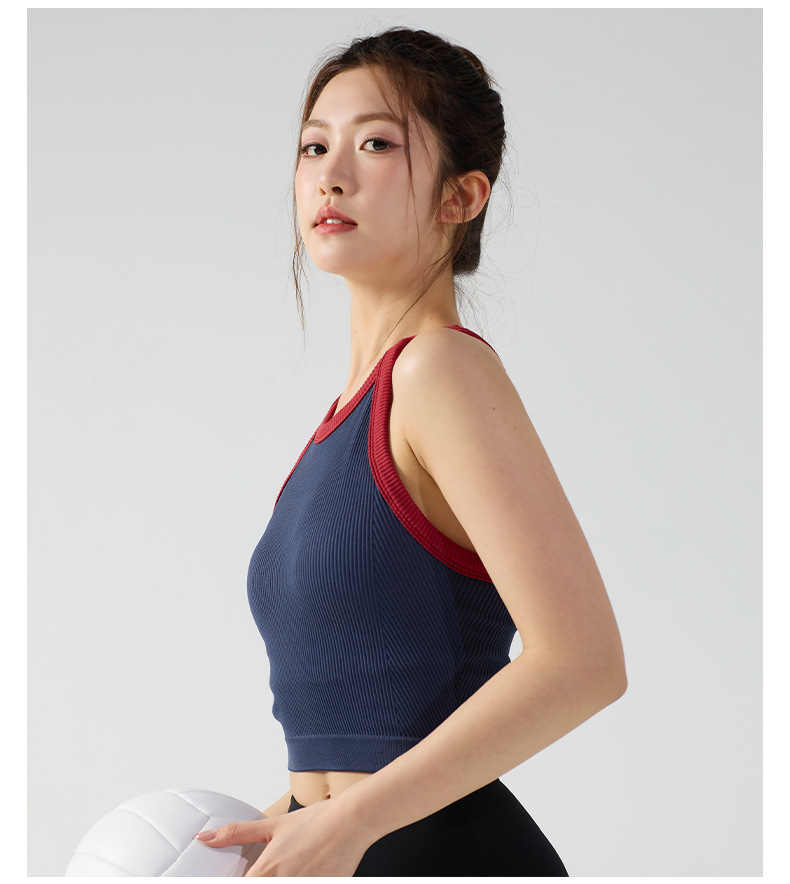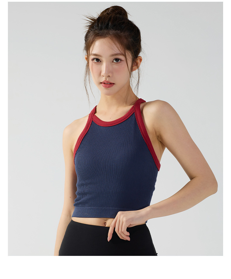 고정 컵 갈비뼈 3 차원 컬러 블록 요가 조끼 여성 원피스 충격 방지 타이트핏 스포츠 조끼스토어 가기