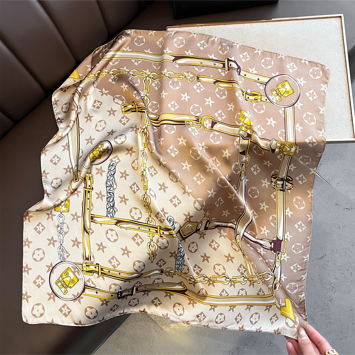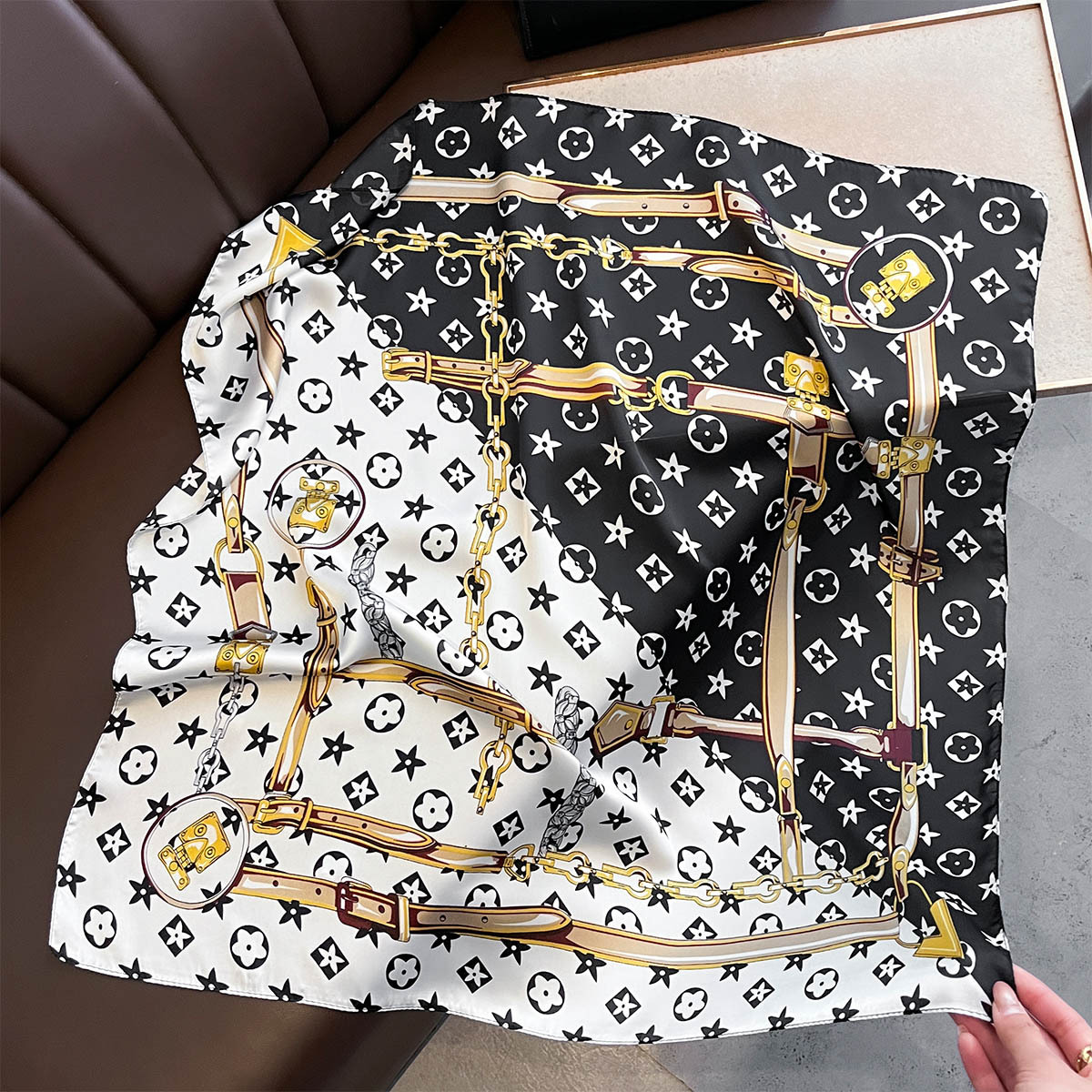 한국 스카프 여성 스카프 문자 색상 일치 외국식 올매치 넥 보호 스카프 선 스크린 목도리 모방 실크 70cm 대외 무역