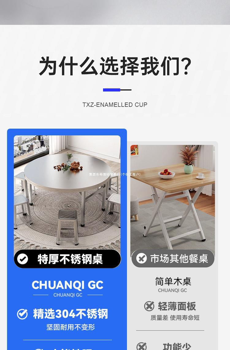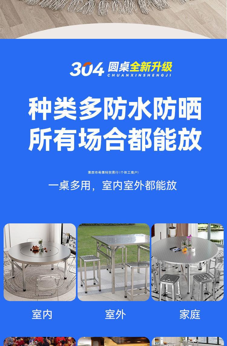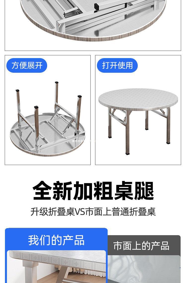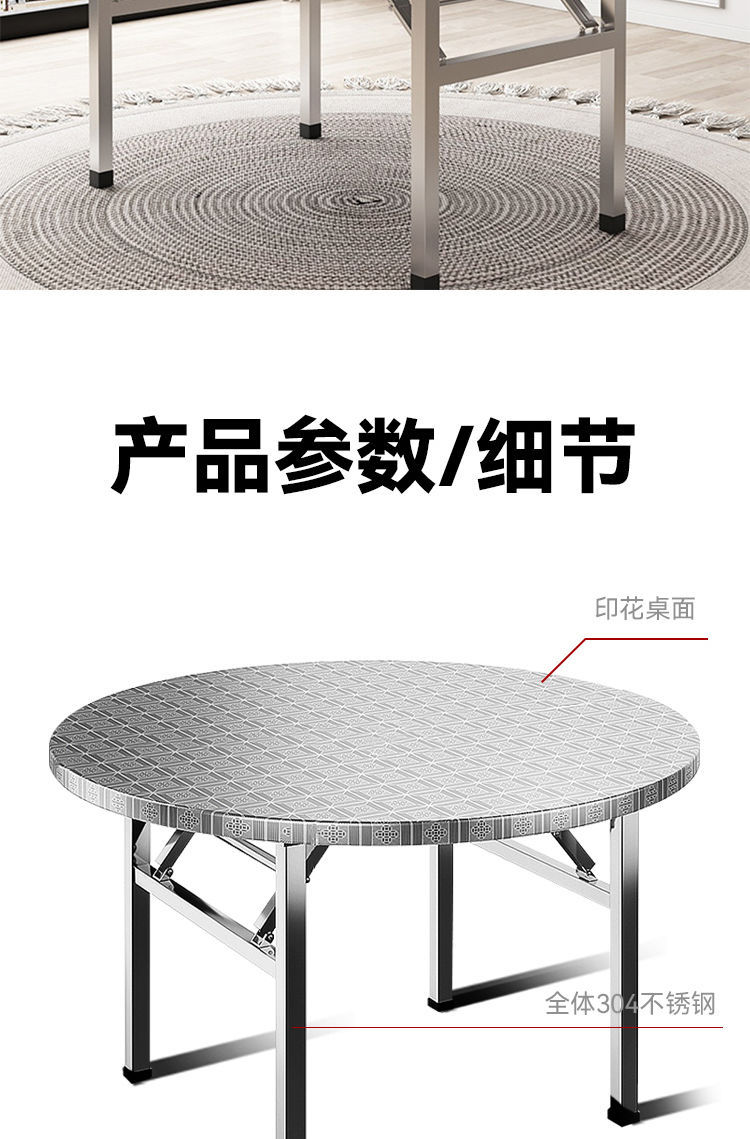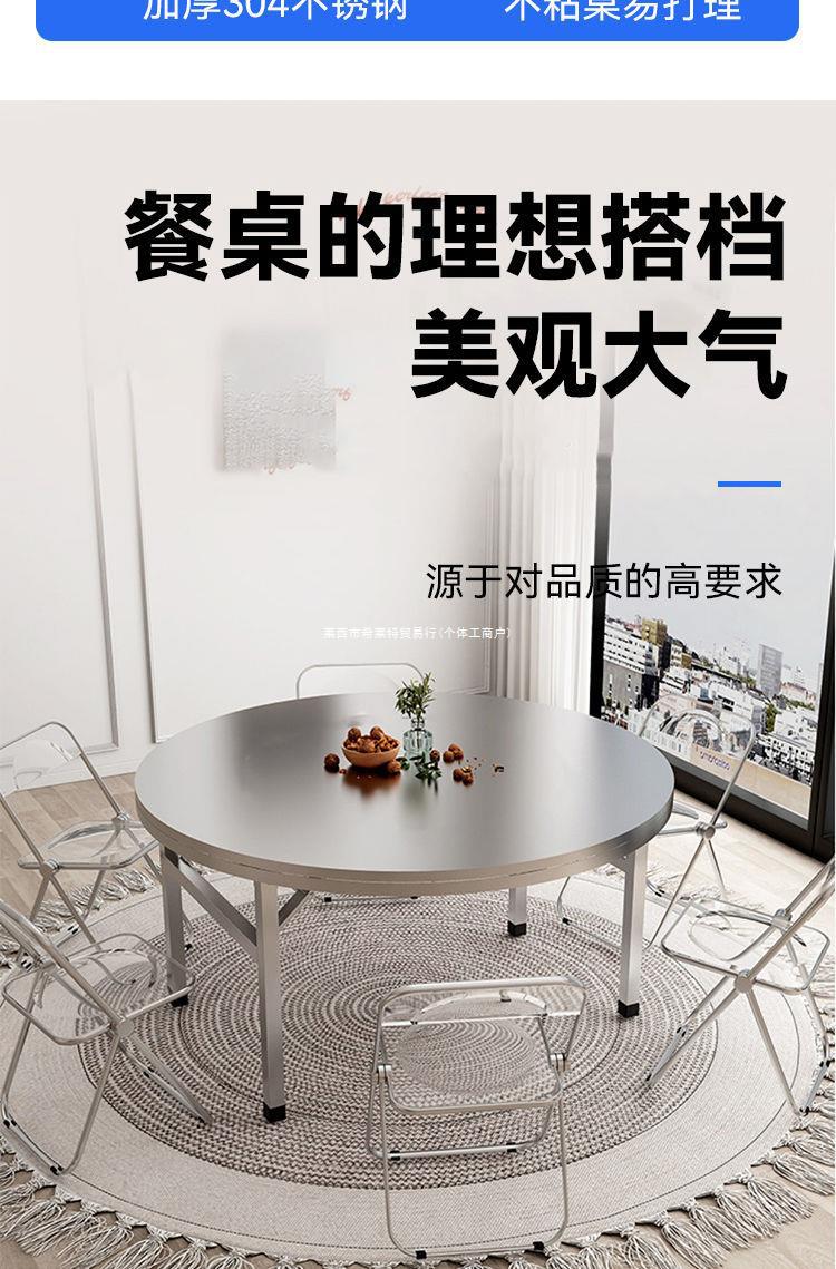 304 스테인레스 스틸 접이식 라운드 테이블 엑스트라 두꺼운 식탁 가정용 렌탈 하우스 레스토랑 발코니 다파이 캐터리 매점