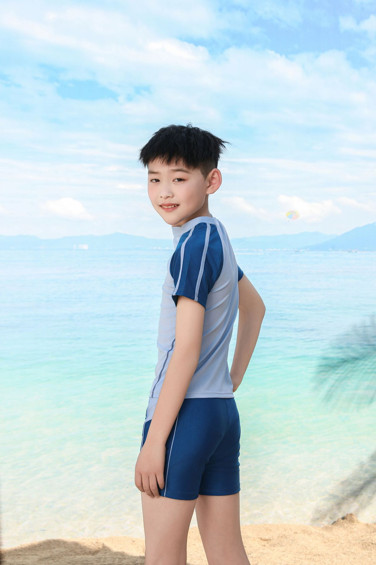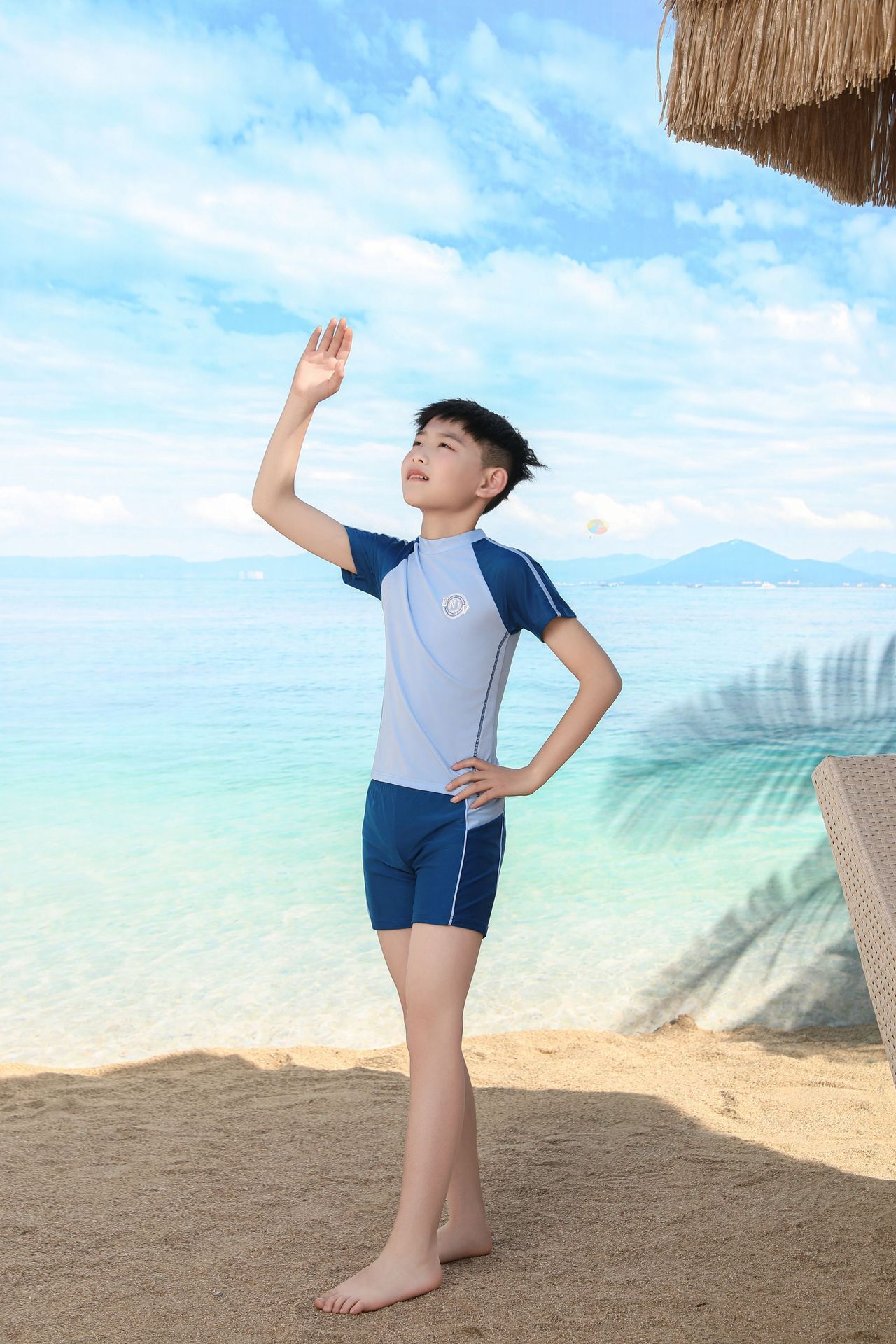 어린이 수영복 소년, 빠른 건조 스포츠 수영복 선스크린 소년 수영 트렁크 세트 도매 세트 2025 새로운스토어 가기