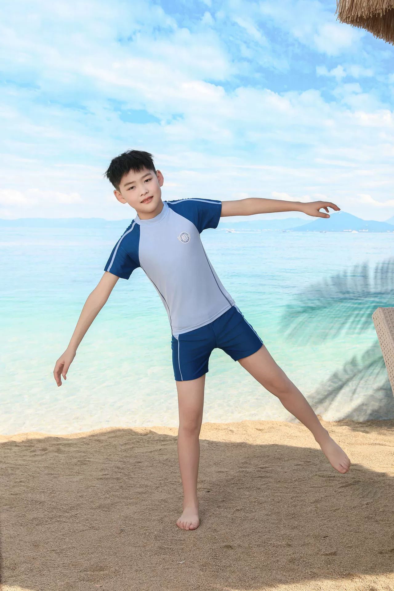 어린이 수영복 소년, 빠른 건조 스포츠 수영복 선스크린 소년 수영 트렁크 세트 도매 세트 2025 새로운