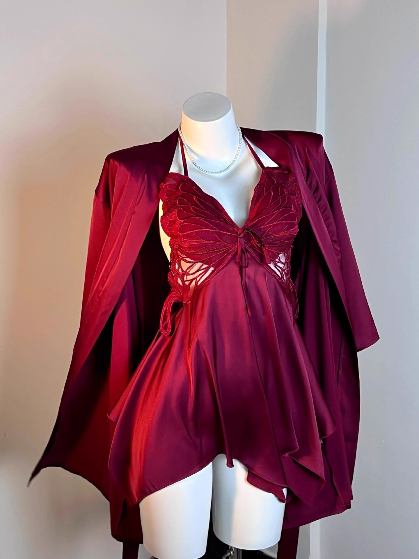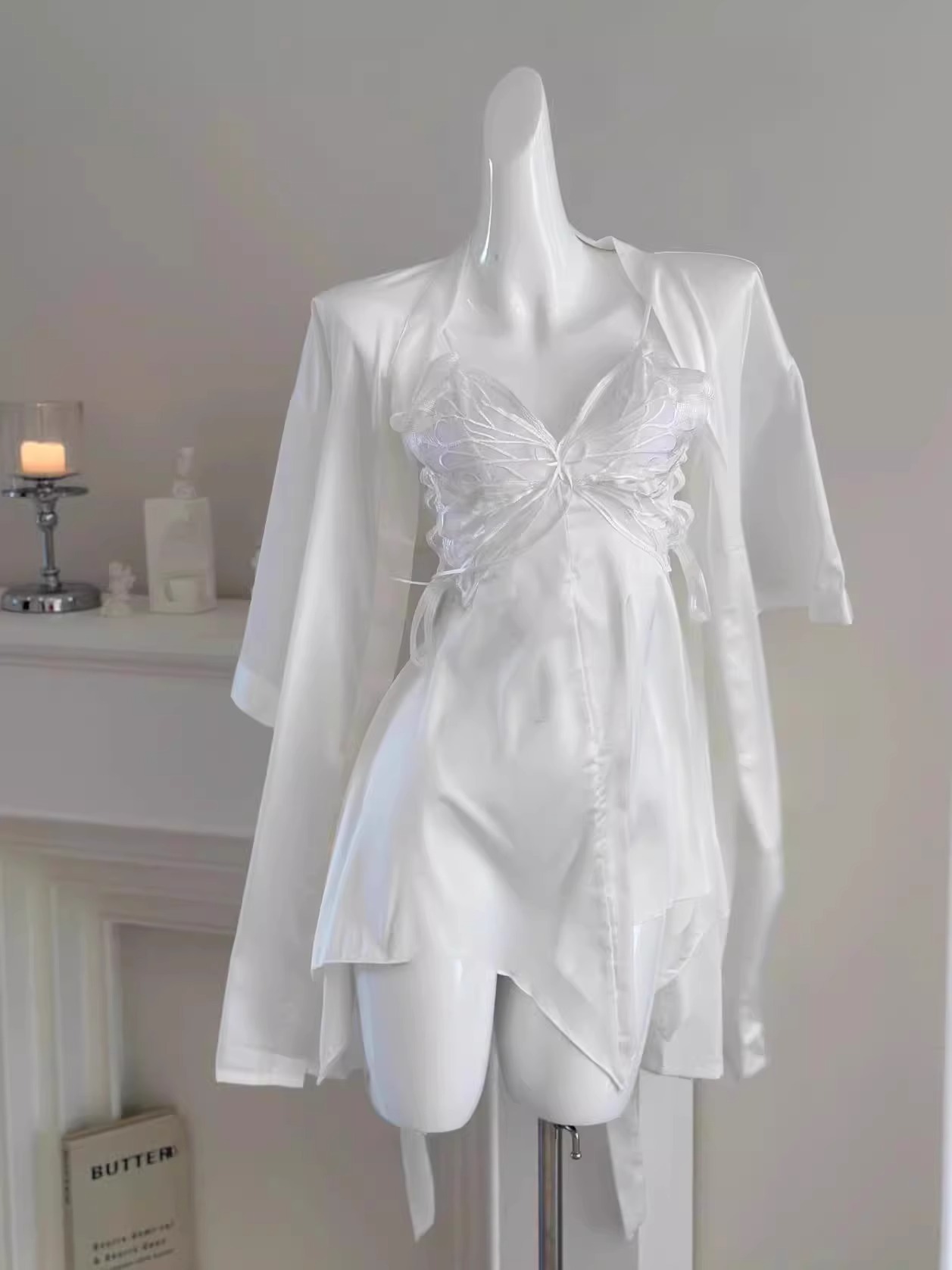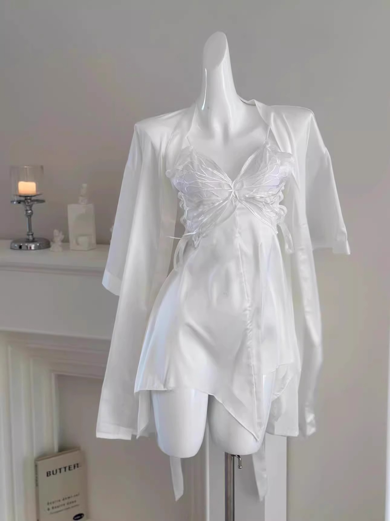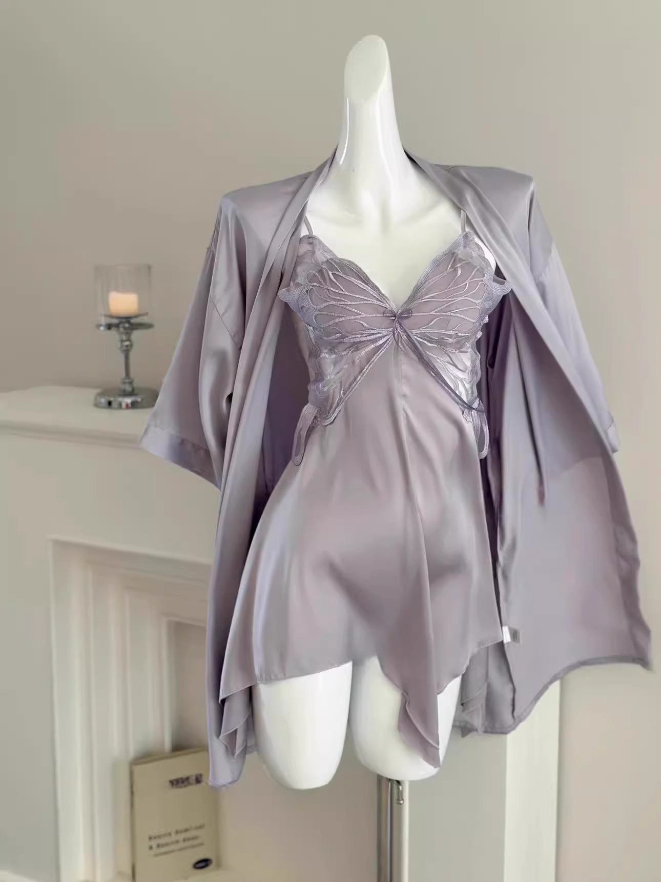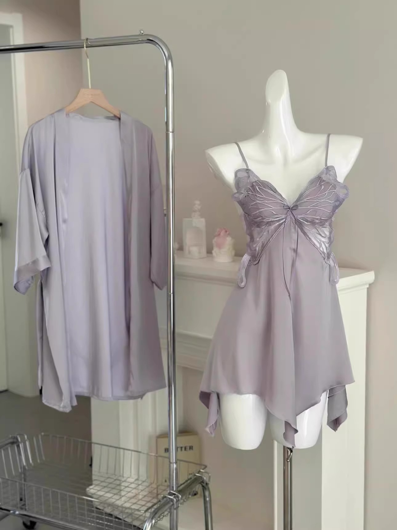 섹시한 여성용 잠옷 가을 겨울용 끈이 있는 아이스 실크 신상품 순수한 매력 스타일 투피스 세트 가슴 패드 포함 백리스 고급 잠옷