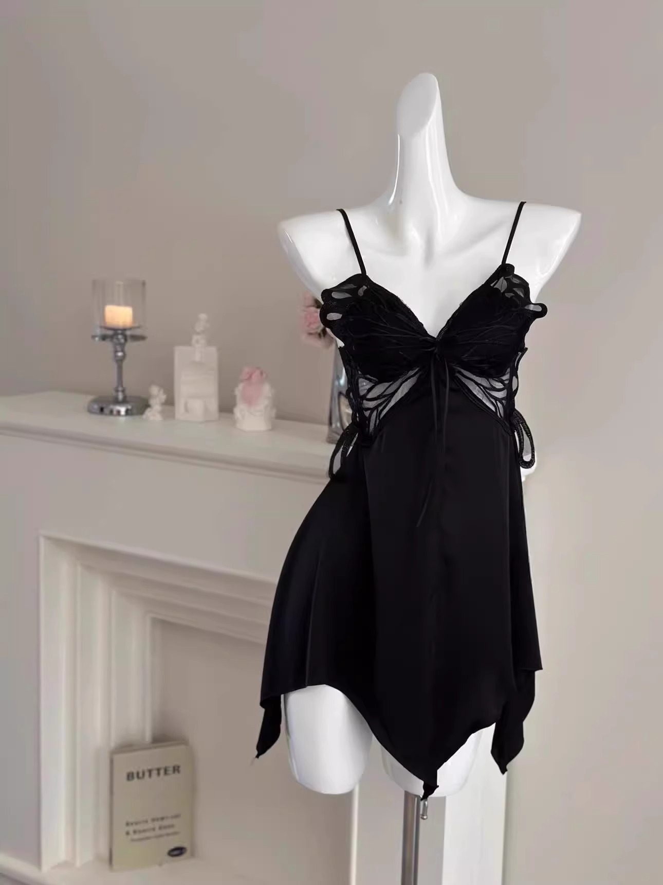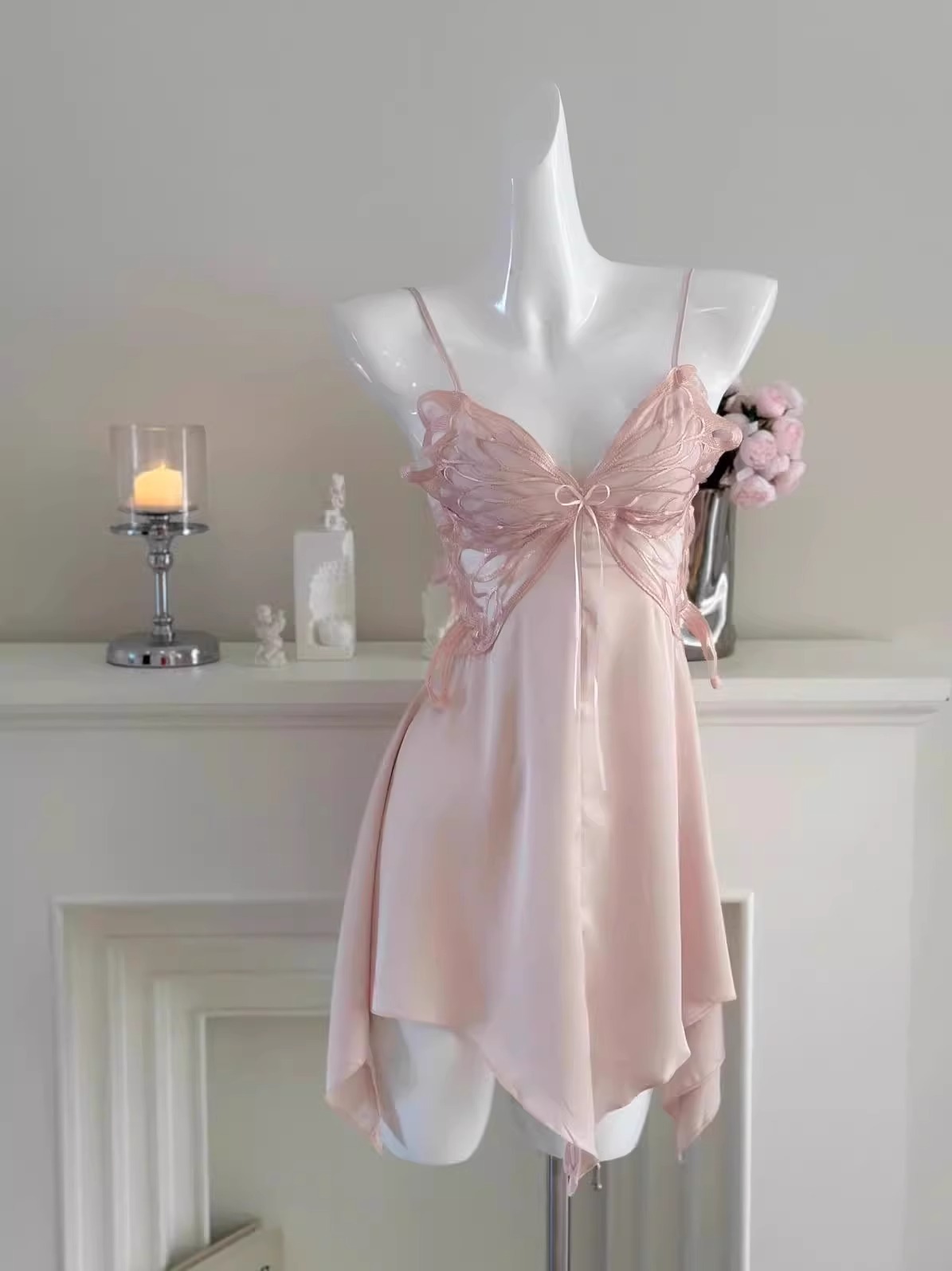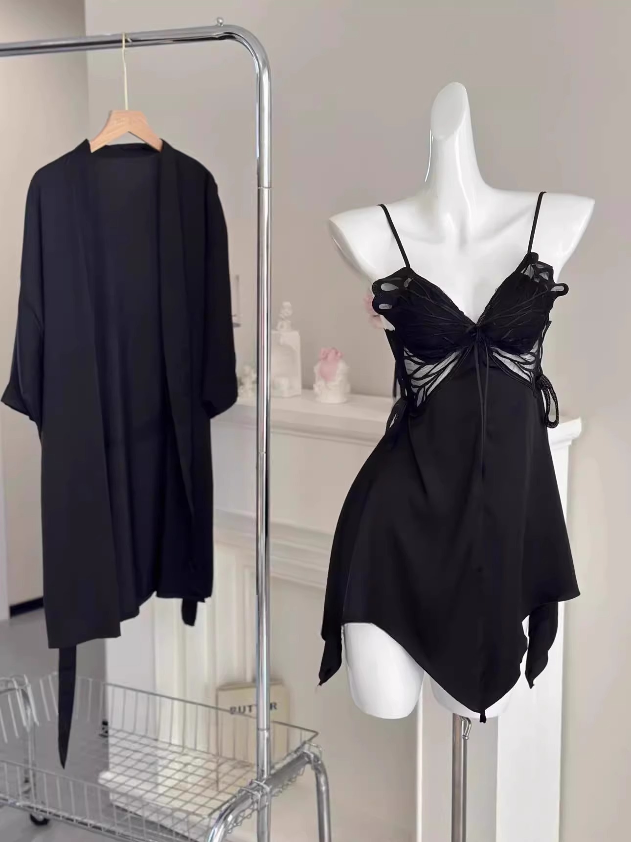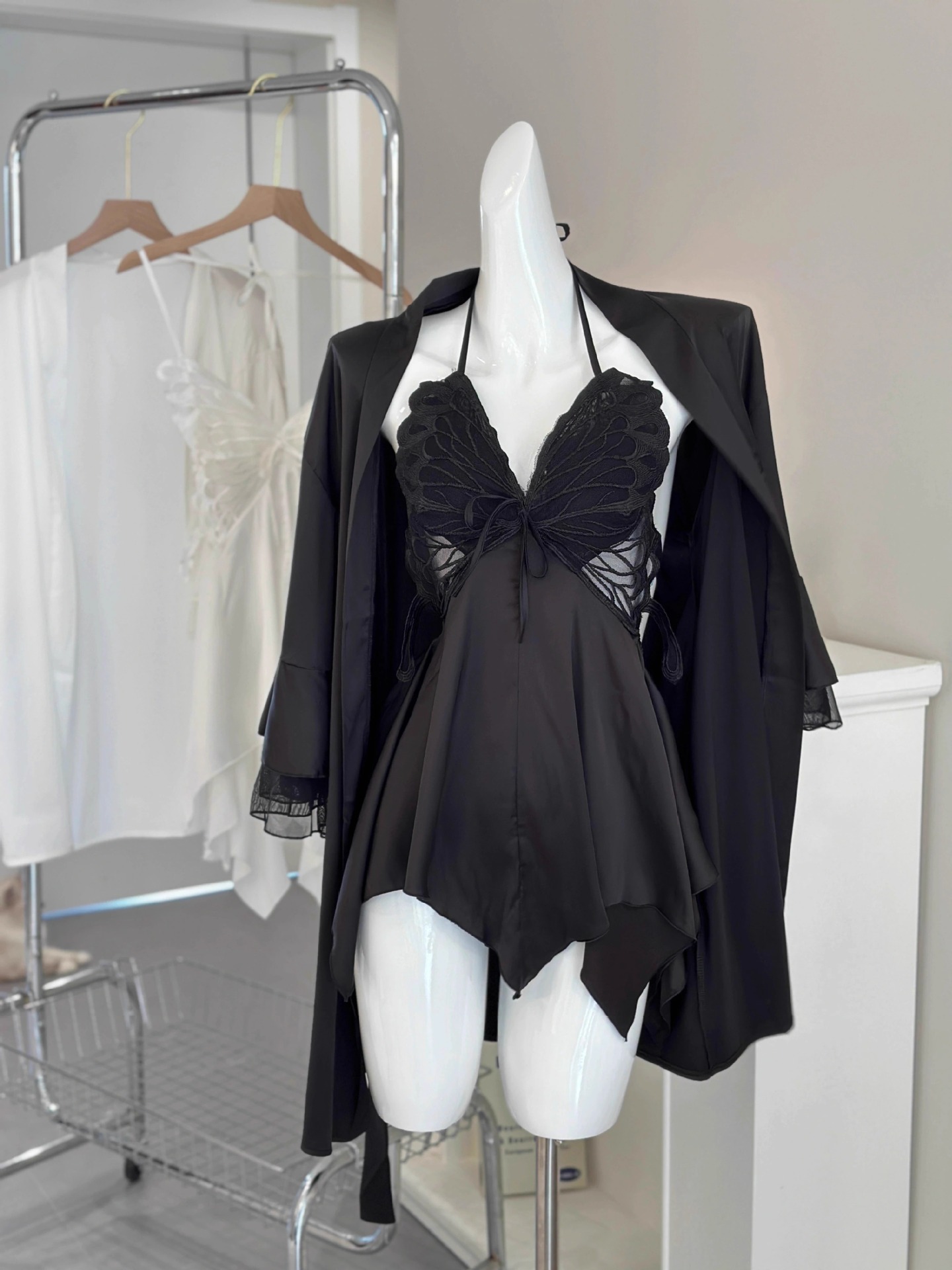 섹시한 여성용 잠옷 가을 겨울용 끈이 있는 아이스 실크 신상품 순수한 매력 스타일 투피스 세트 가슴 패드 포함 백리스 고급 잠옷스토어 가기