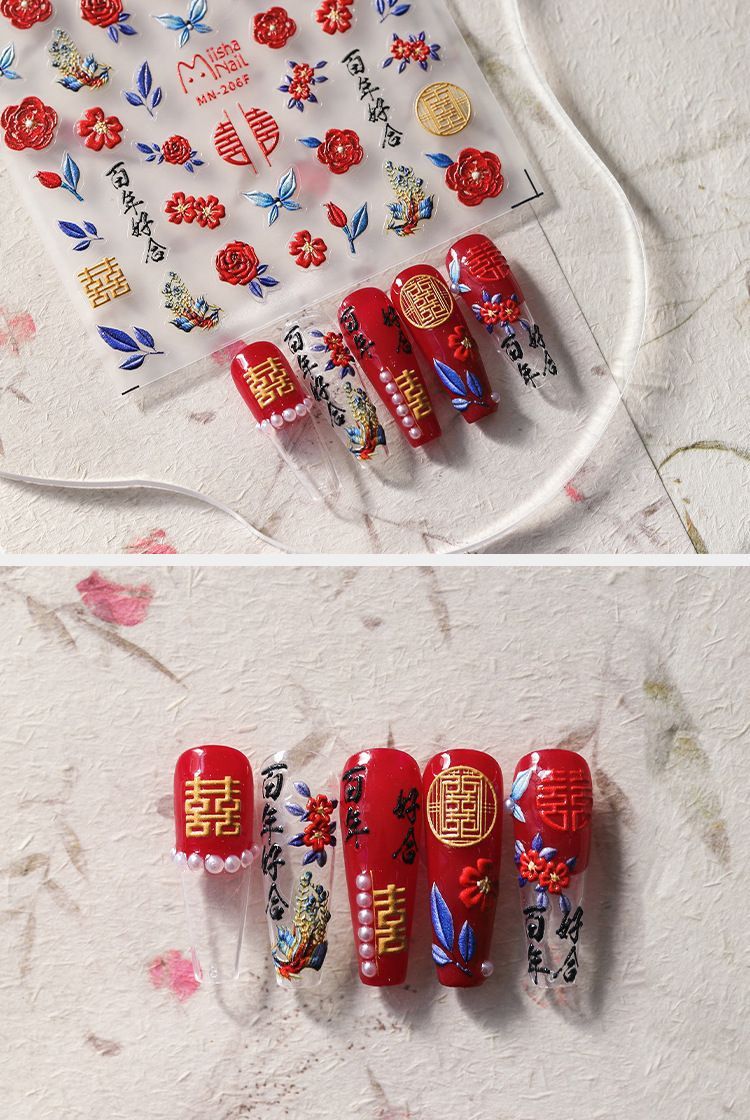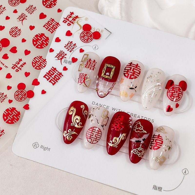 새해와 뱀의 해를 위한 행복한 단어가 있는 네일 아트 스티커, 양각 입체 네일 아트 스티커, 어린이를 위한 도매 2025 웨딩 네일 아트스토어 가기