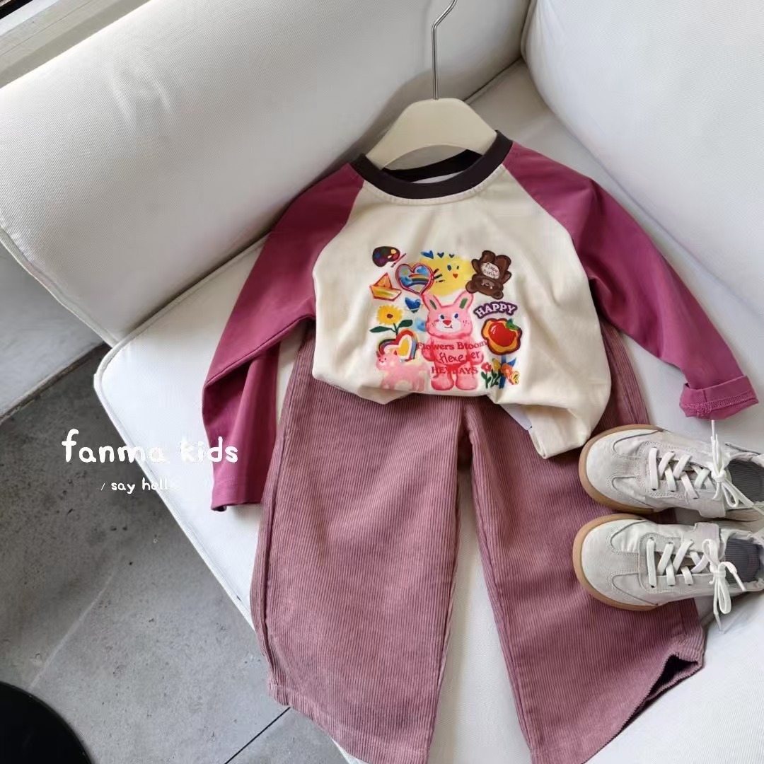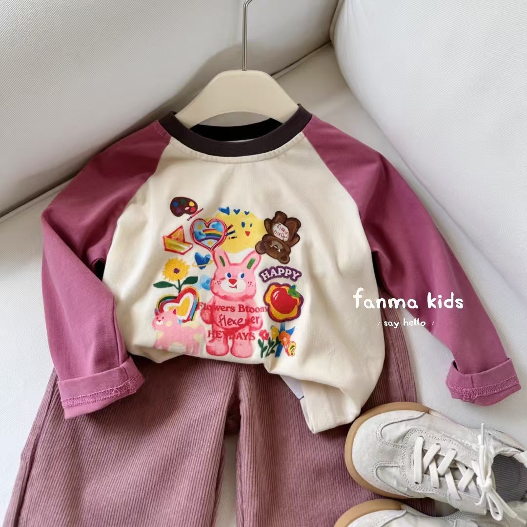 어린이 2025 새 여아 긴팔 티셔츠 봄과 가을 어린이 한국식 귀여운 베이스 셔츠 만화 내부 탑