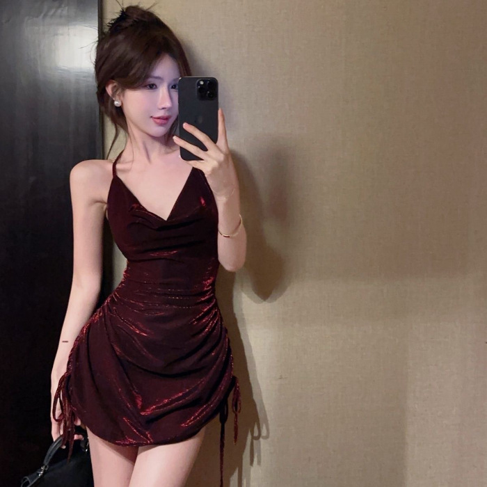 국경 간 여름 새로운 도착 순수한 욕망 스파이스 걸스 서랍 스트랩 수리 허리 스트랩 슬링 칼라 원피스 여성스토어 가기