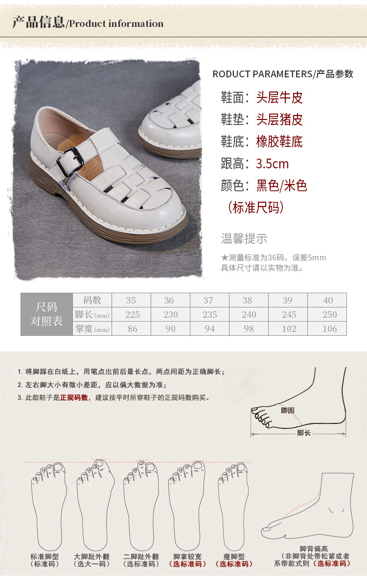 정품 가죽 짠 돼지 케이지 신발 여성 봄과 여름 2025 새로운 라운드 헤드 할로우 플랫 캐주얼 벨크로 탑 로마 샌들스토어 가기