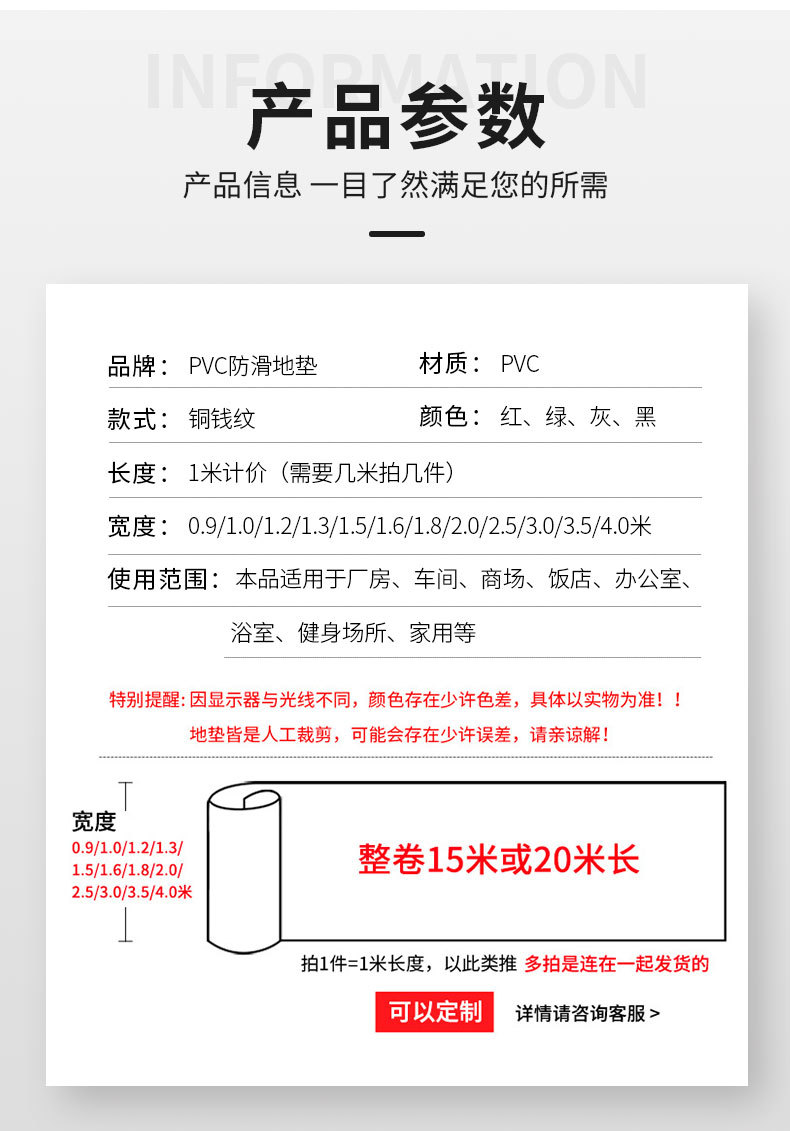 PVC 플라스틱 미끄럼 방지 바닥 매트 두꺼운 내마모성 방수 카펫 바닥 작업장 복도 통로 실내 전체 바닥스토어 가기