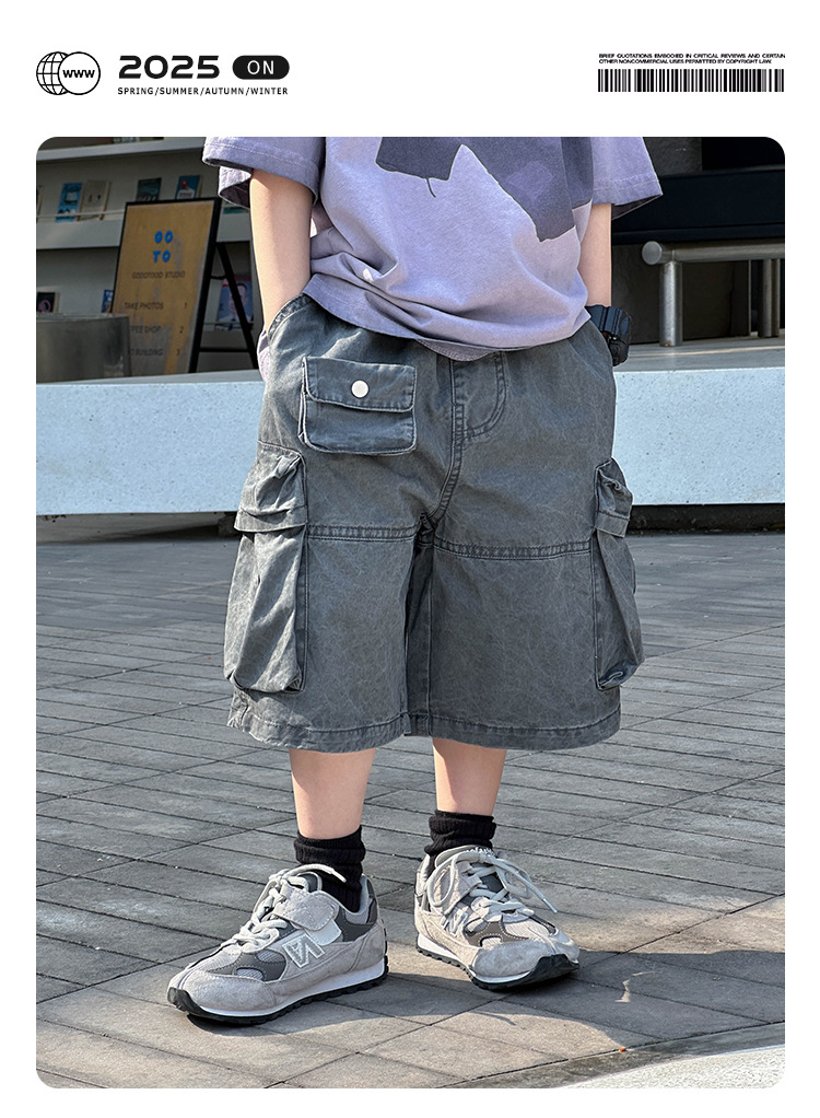 어린이 포켓 반바지 2025 여름 새 소년 한국식 느슨한 바지 어린이 유행 올매치 여름복스토어 가기