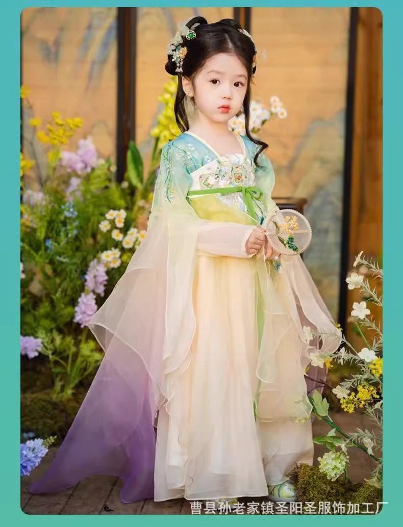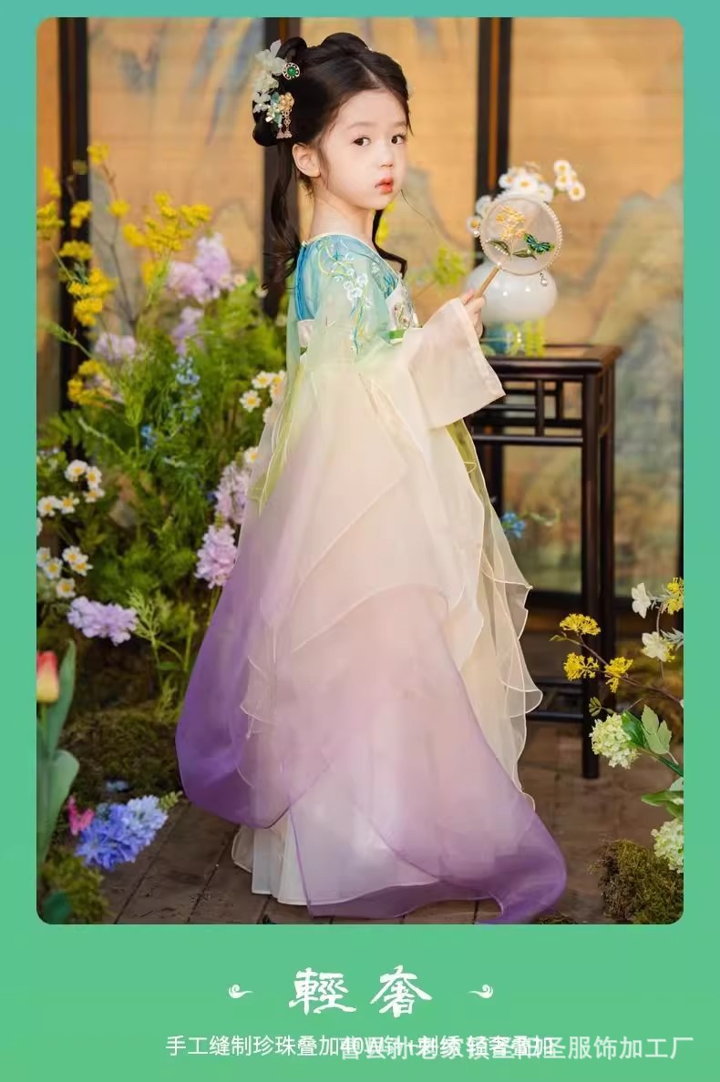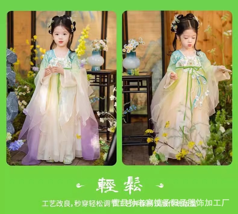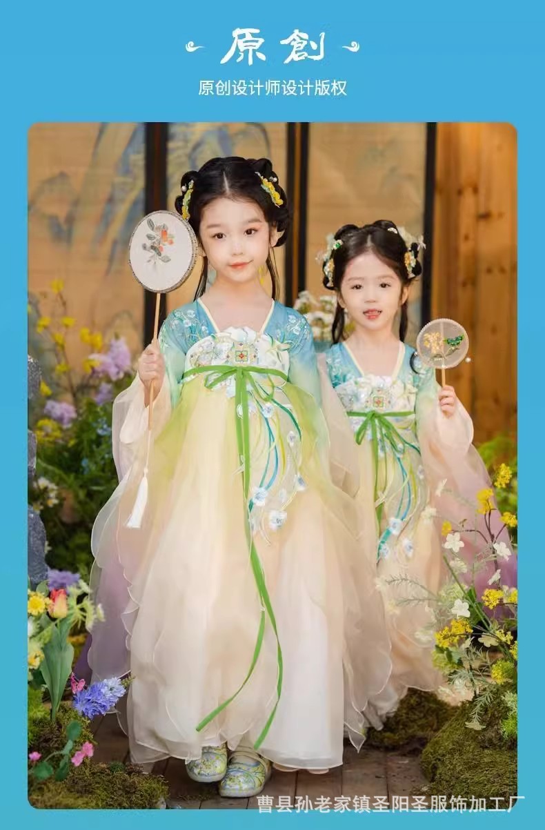 여아용 한복, 중국풍 긴팔 전통 드레스, 봄 가을 공주풍 고대 의상, 당나라풍 의상