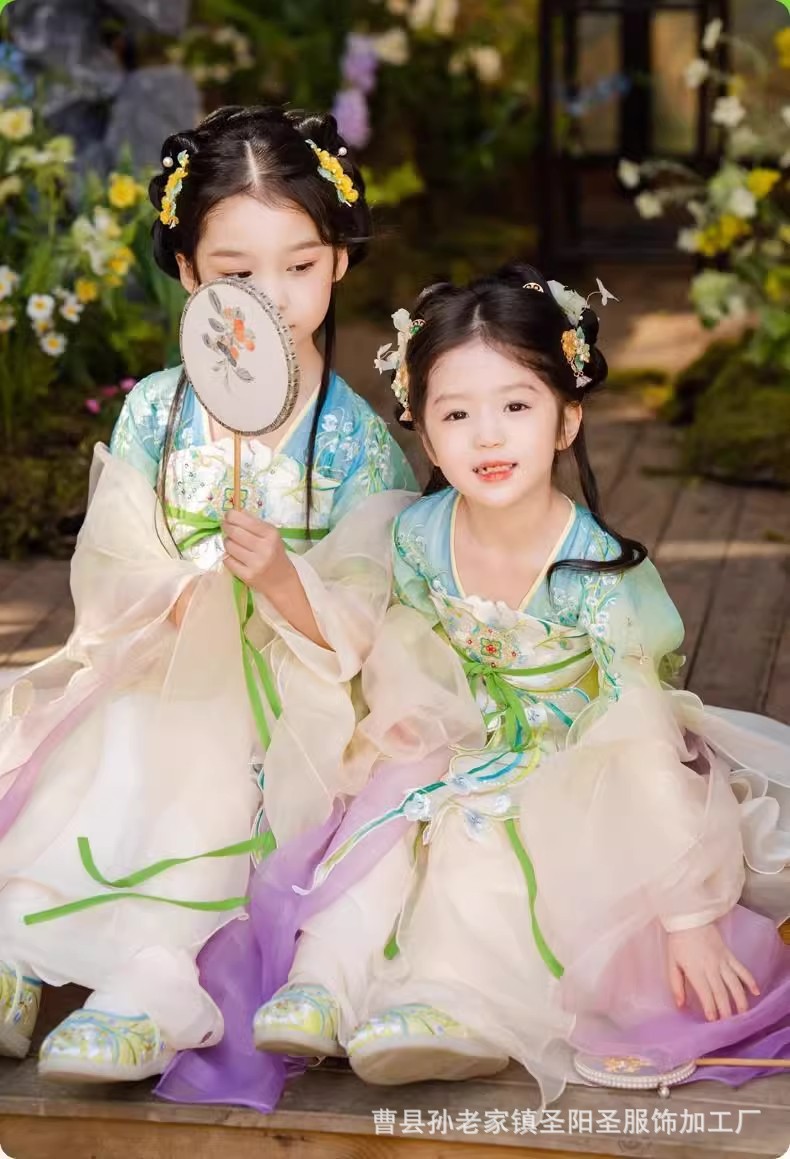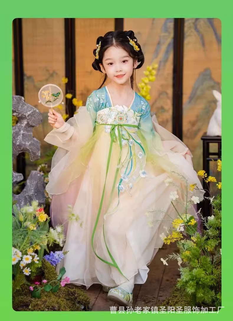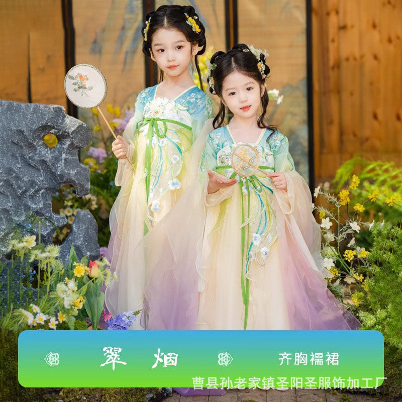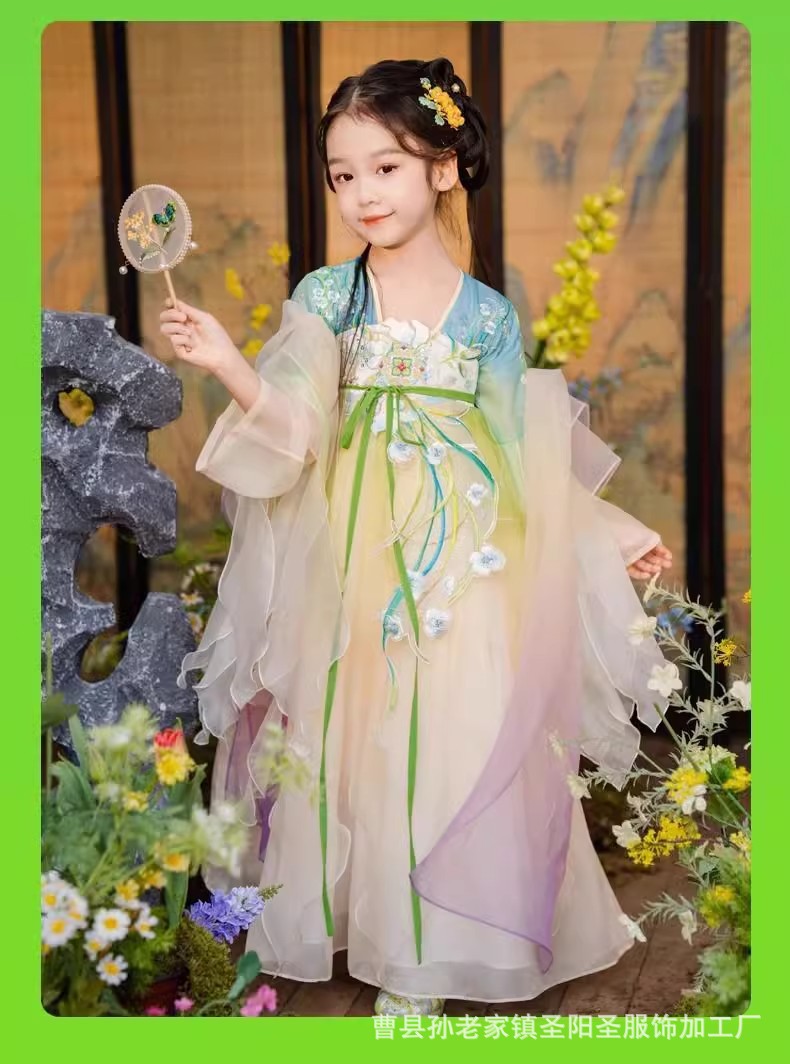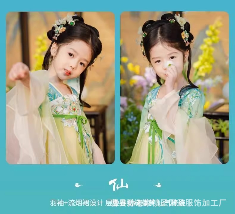 여아용 한복, 중국풍 긴팔 전통 드레스, 봄 가을 공주풍 고대 의상, 당나라풍 의상