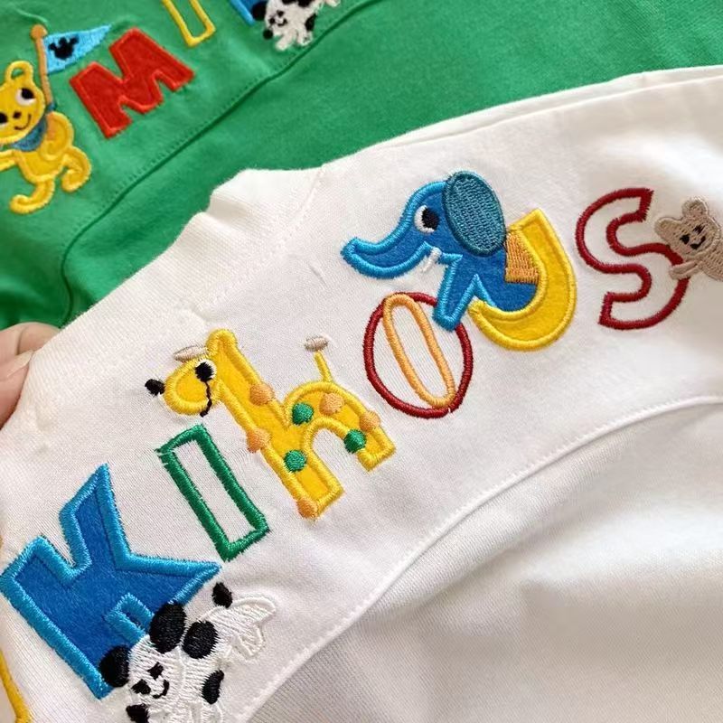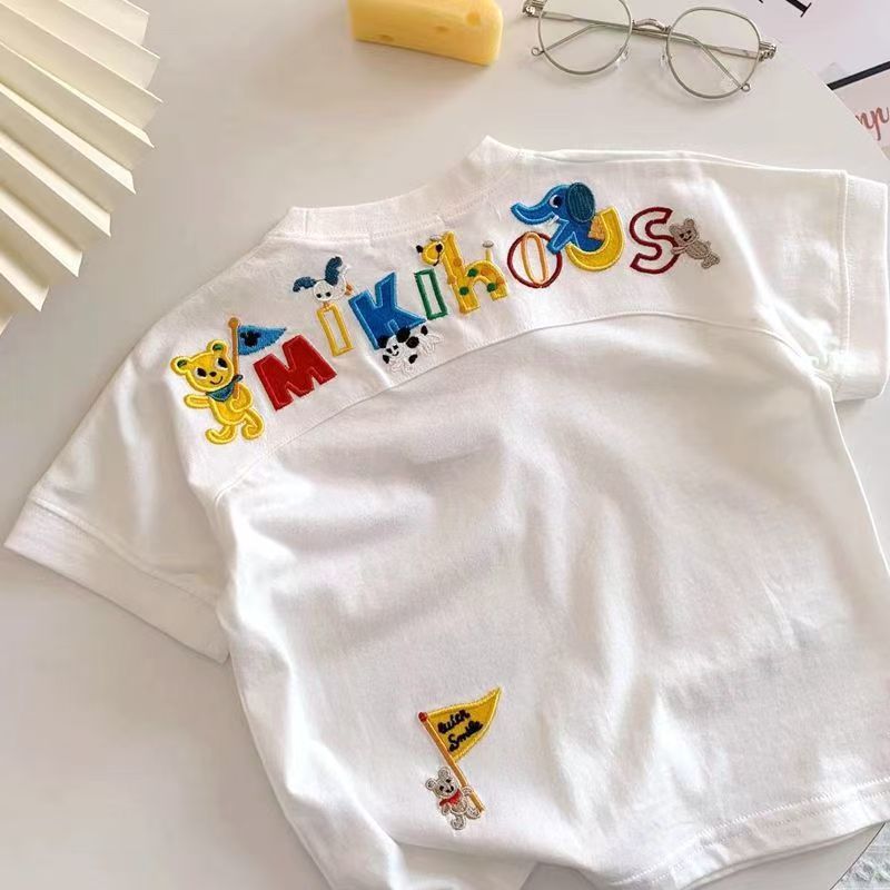 소년과 소녀 2025 새로운 여름 만화 자수 귀여운 아기 반팔 어린이 티셔츠 스타일리시 트렌디 한 반팔 티셔츠스토어 가기