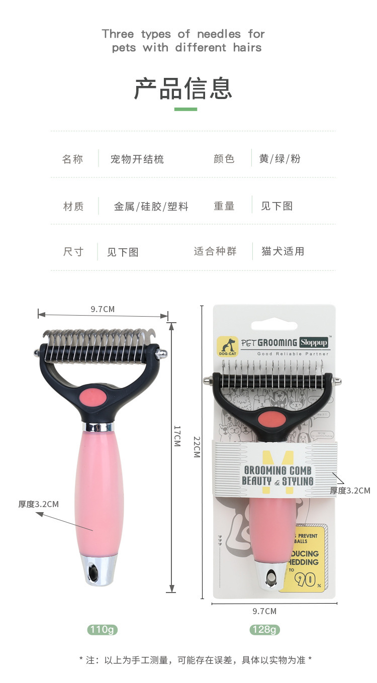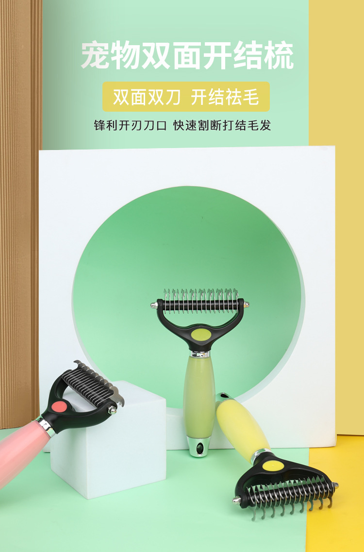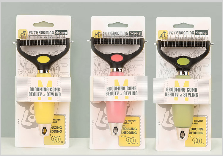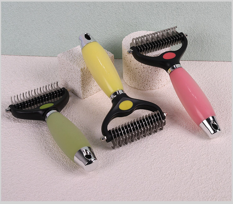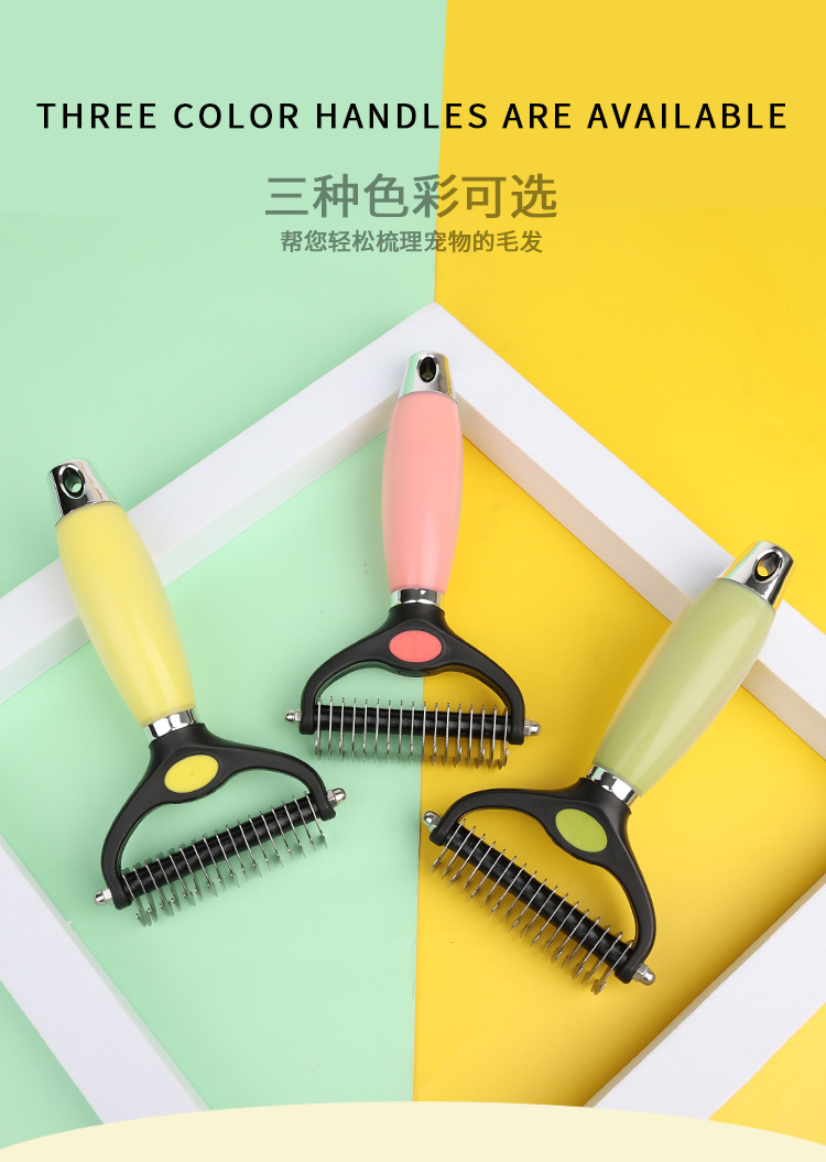 제조업체 애완동물 털 제거 빗 양면 강아지 빗 고양이 미용 빗 금속 블레이드 털 제거 빗 애완동물 용품 도매