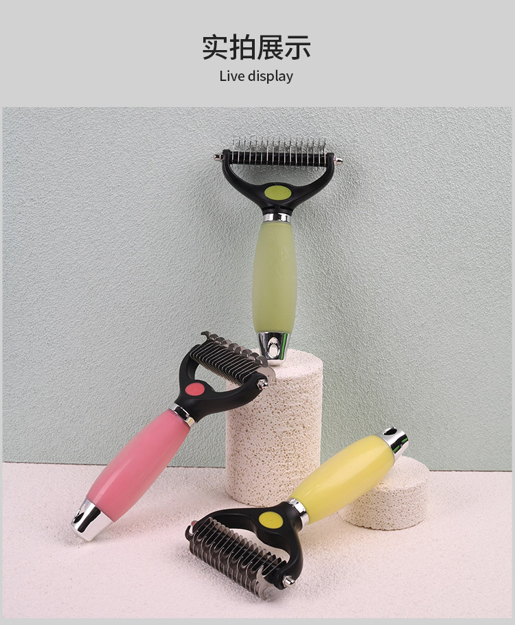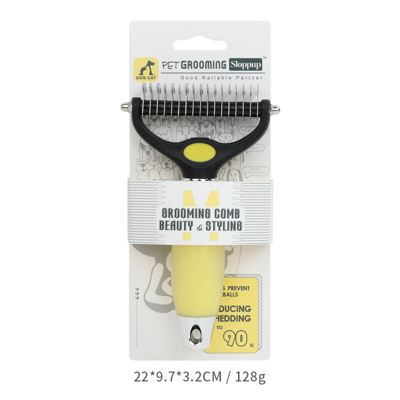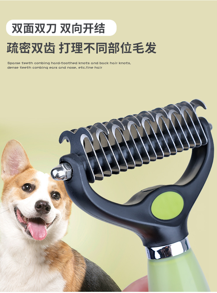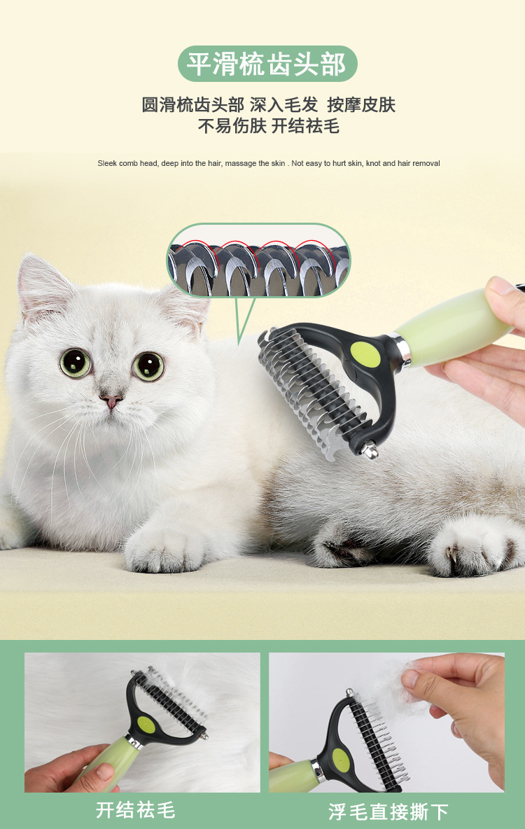 제조업체 애완동물 털 제거 빗 양면 강아지 빗 고양이 미용 빗 금속 블레이드 털 제거 빗 애완동물 용품 도매스토어 가기