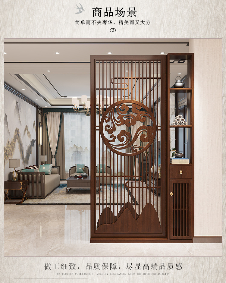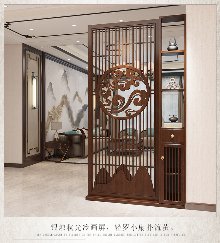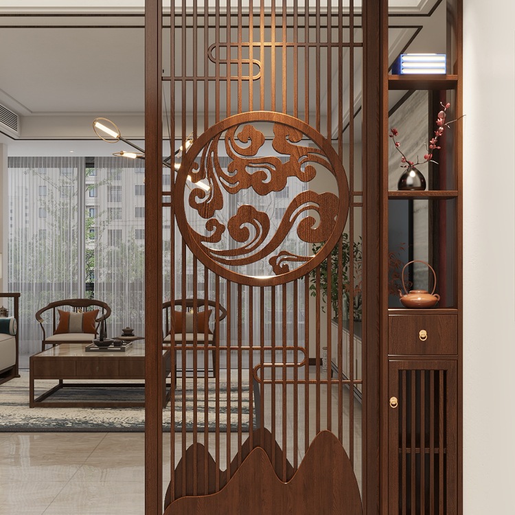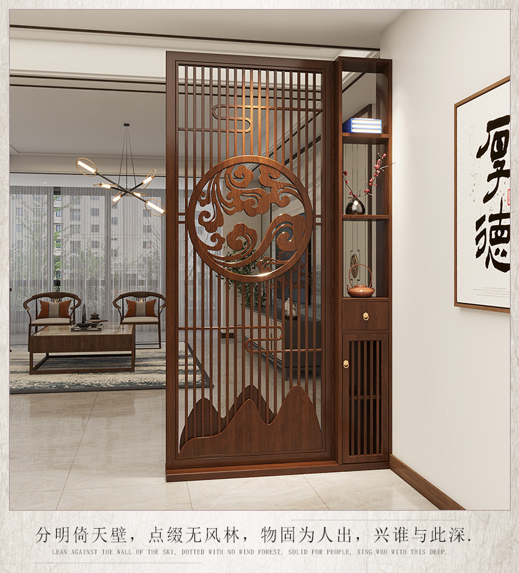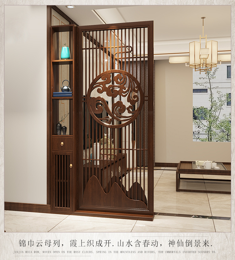 새로운 중국 솔리드 우드 스크린 파티션 거실 2025 새로운 입구 내각이 문 풍수 대피소 T &스토어 가기