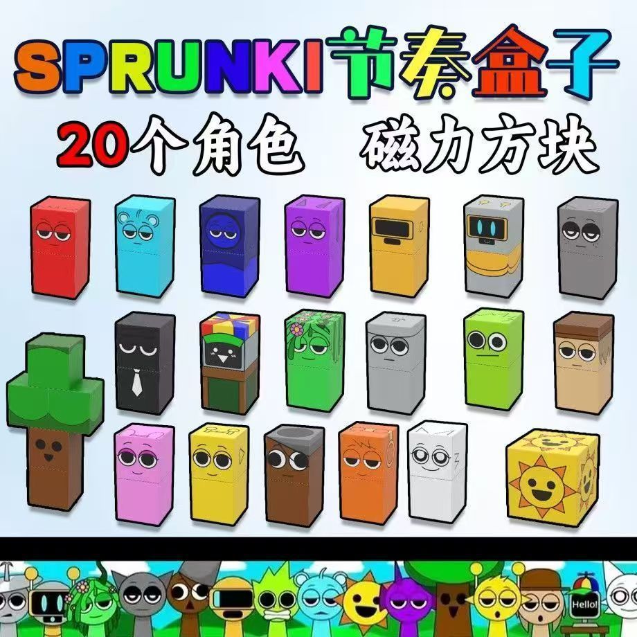 리듬 박스 1 단계 sprunki 마그네틱 박스 어린이 교육 조립 건물 블록 장난감 생일 선물