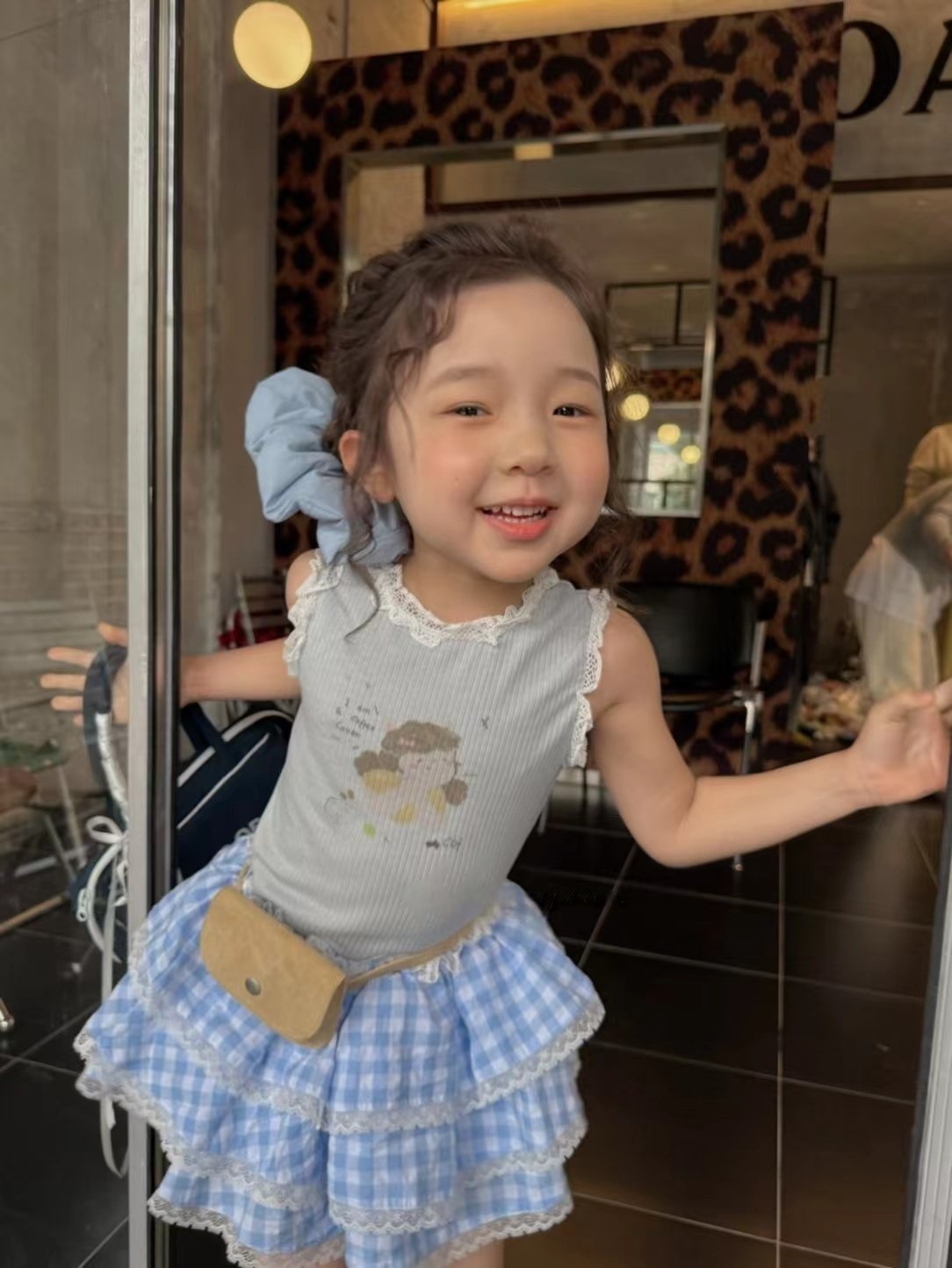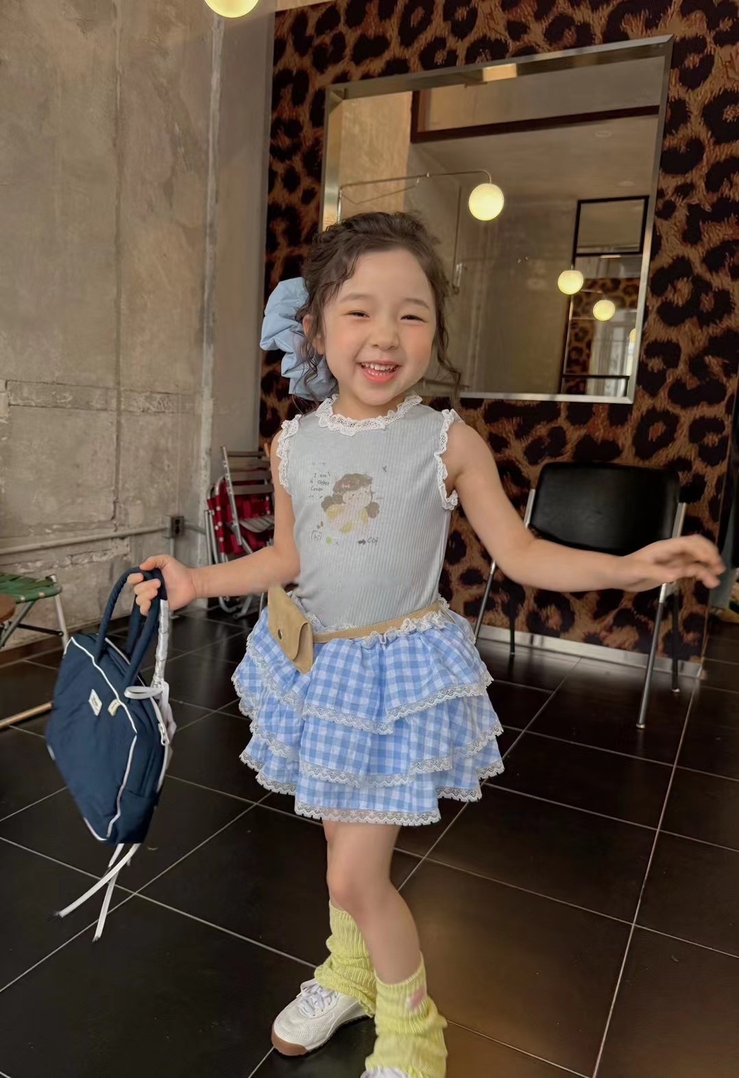 한국 아동복 여아 스커트 25 여름 새로운 달콤한 우아한 어린이 서양식 올 매치 레이스 플레이드 스커트
