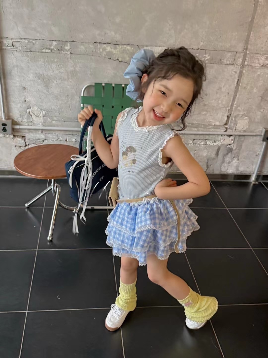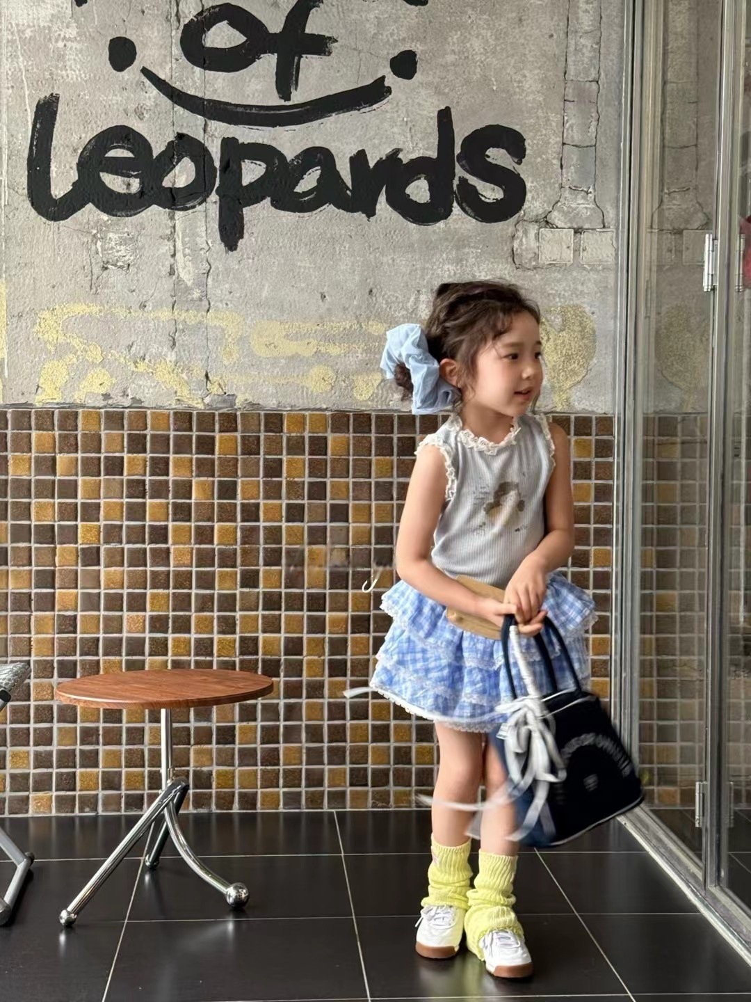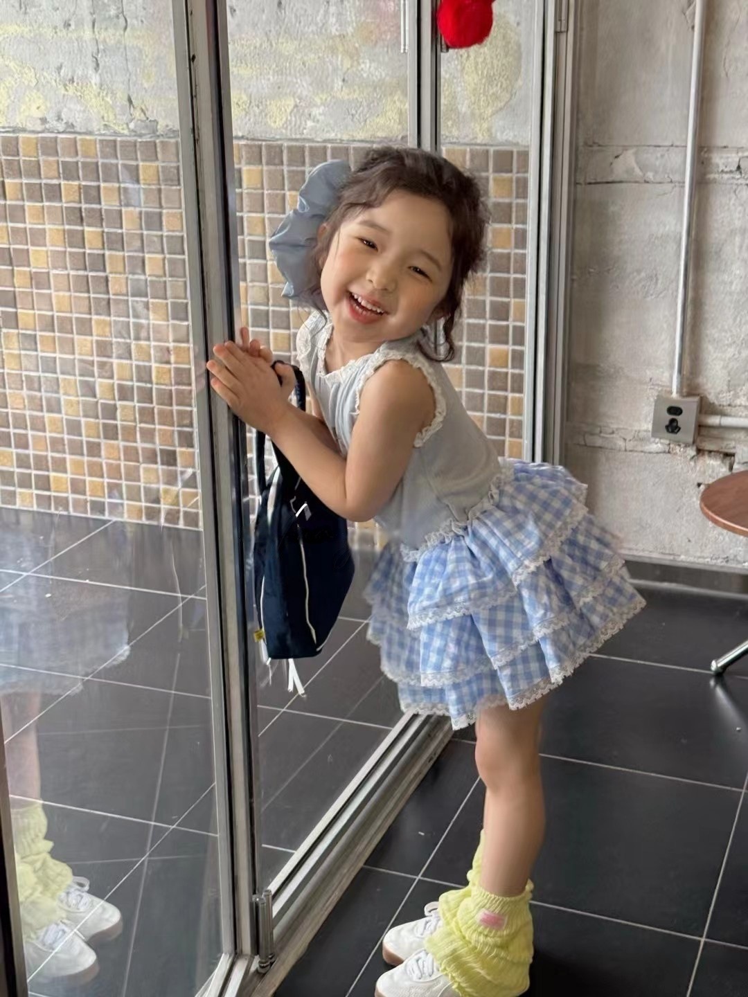 한국 아동복 여아 스커트 25 여름 새로운 달콤한 우아한 어린이 서양식 올 매치 레이스 플레이드 스커트스토어 가기