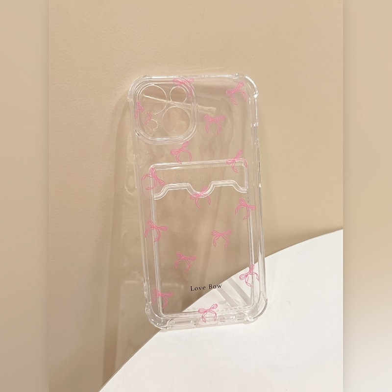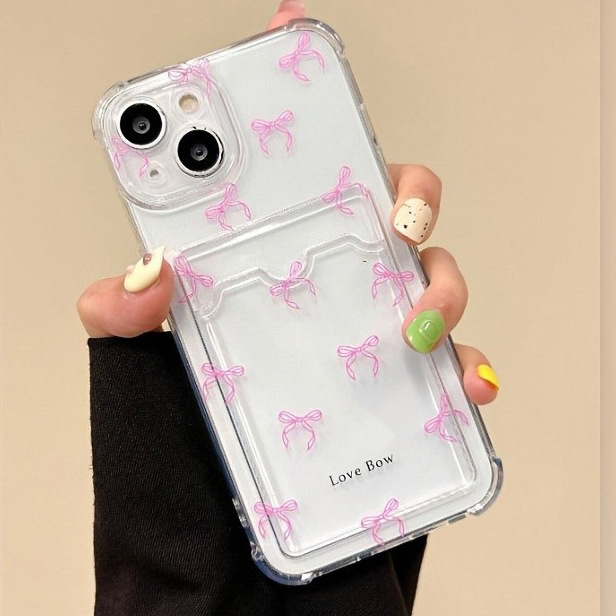 Apple 16/15/14/13/12promax 카드 홀더 카드 휴대폰 케이스 iphone11 소프트에 적합한 핑크 리본