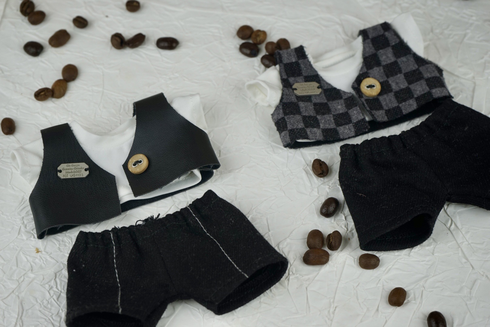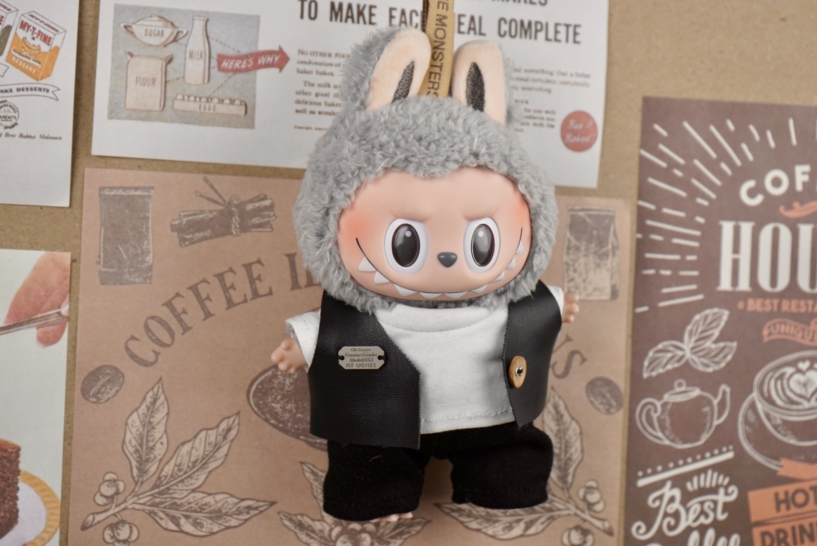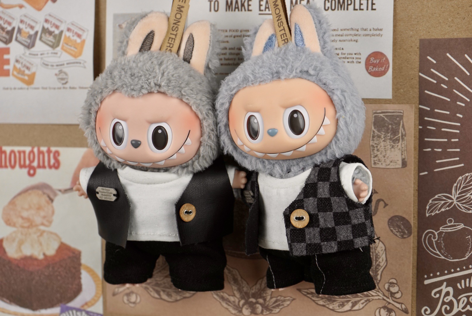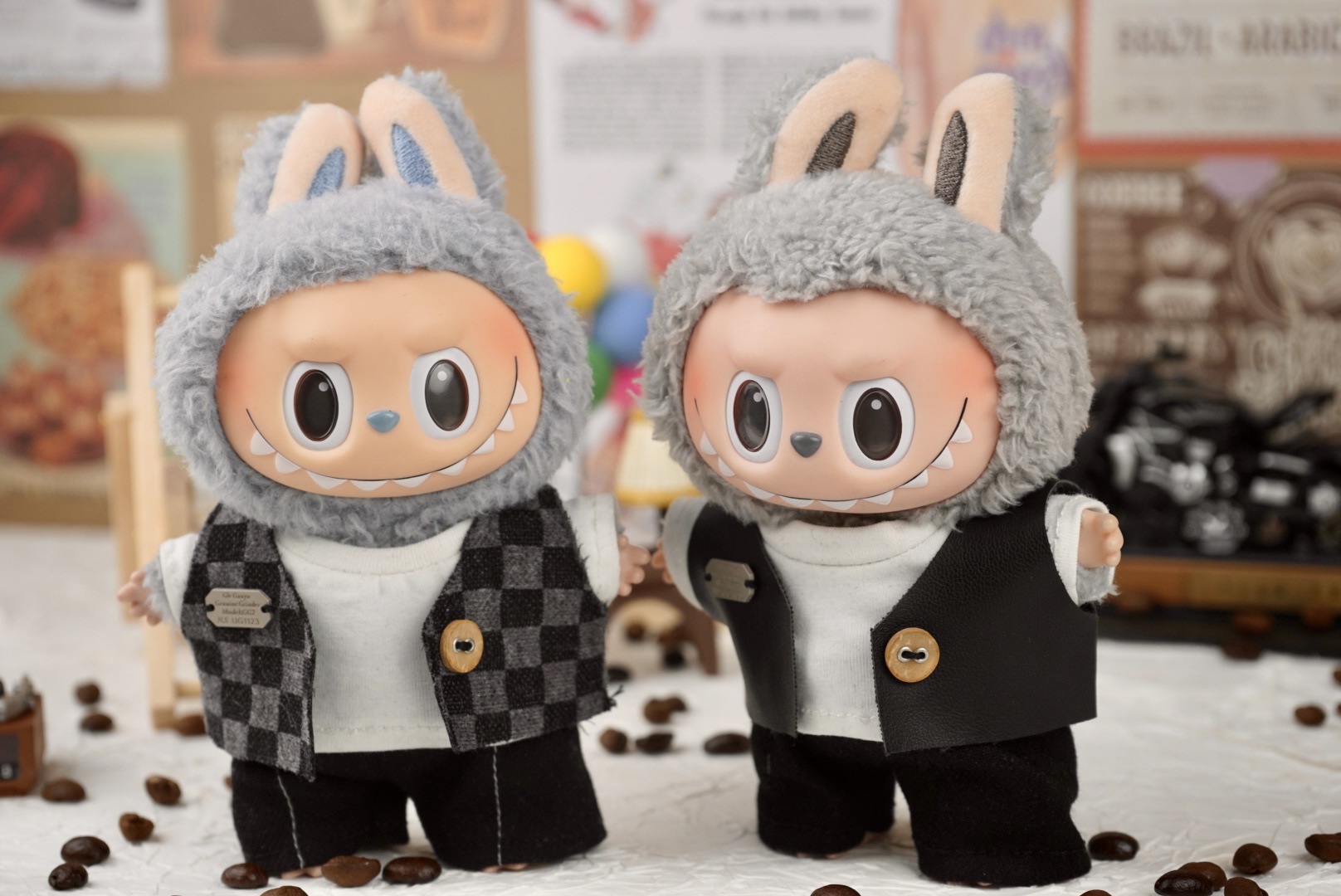 Labubu17cm 베이비 코트 버블 마트 블라인드 박스 인형 펜던트 랩 흑백 지옥 업무 세트 옷