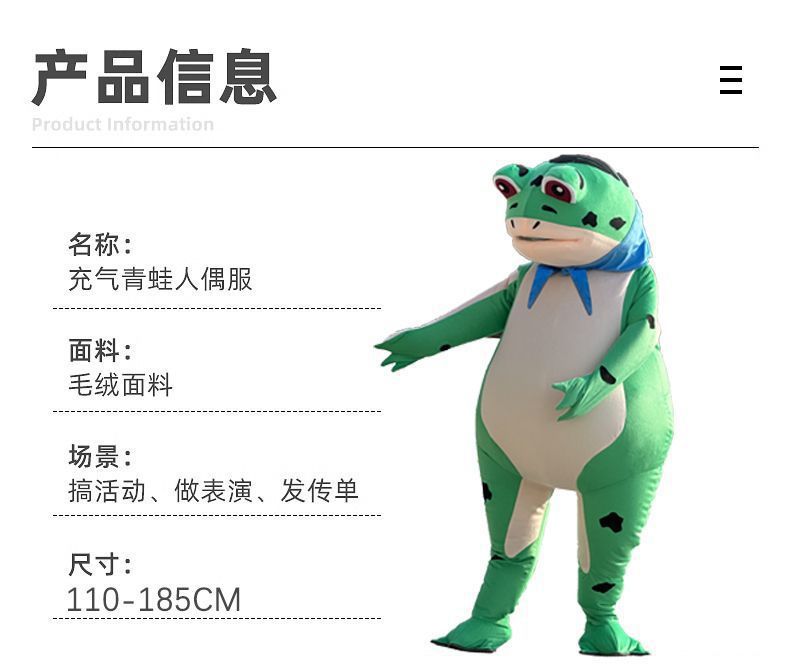 개구리 의상 인형 사이버 기념 개구리 의상 작은 개구리 의상 어린이 여름 풍선 인형 의상 만화 스타일