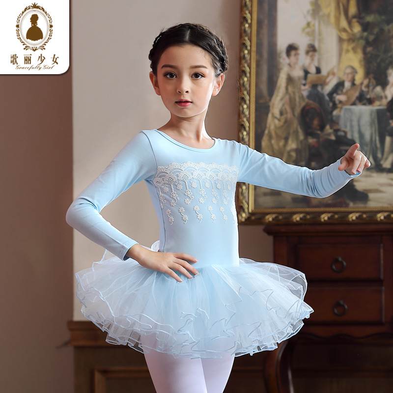 어린이 춤 옷 봄과 가을 긴팔 발레 원피스 소녀 춤 원피스 핑크 중국 댄스 연습 원피스스토어 가기