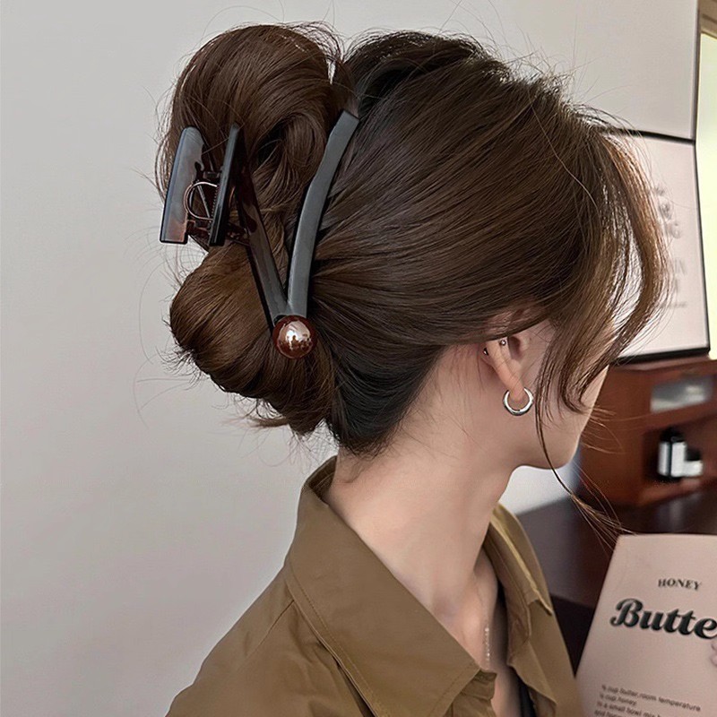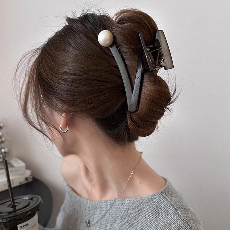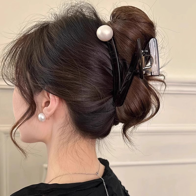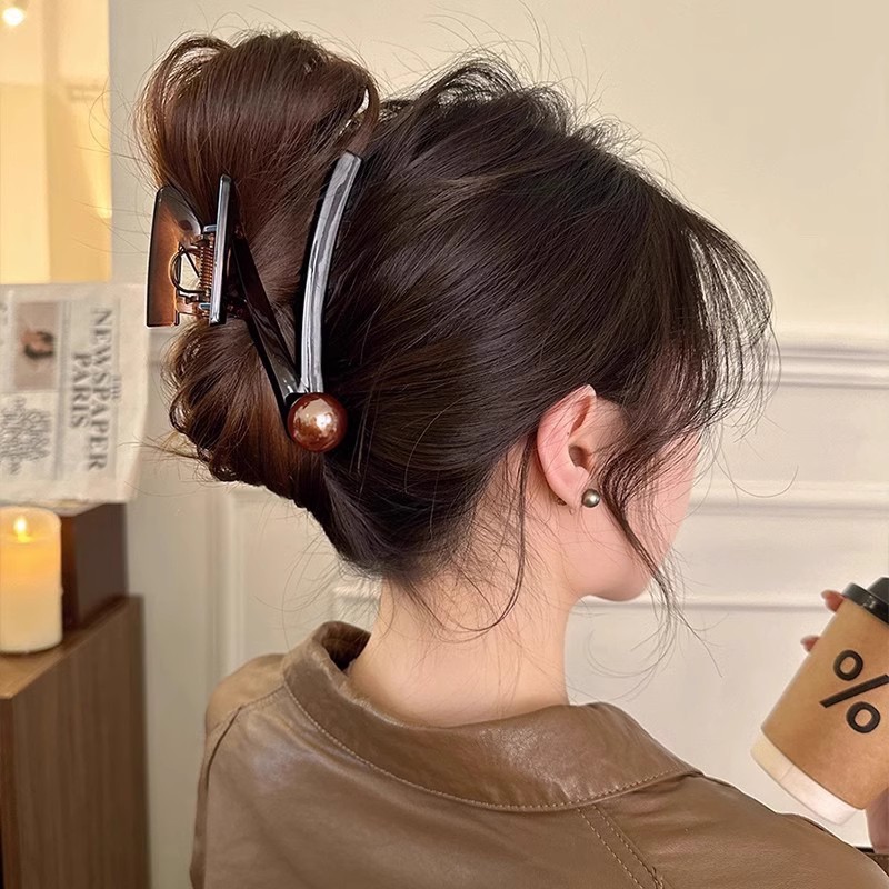 간단한 Z 모양의 진주 클립 여성의 2025 새로운 하이 엔드 아크릴 머리핀 머리 큰 상어 클립스토어 가기
