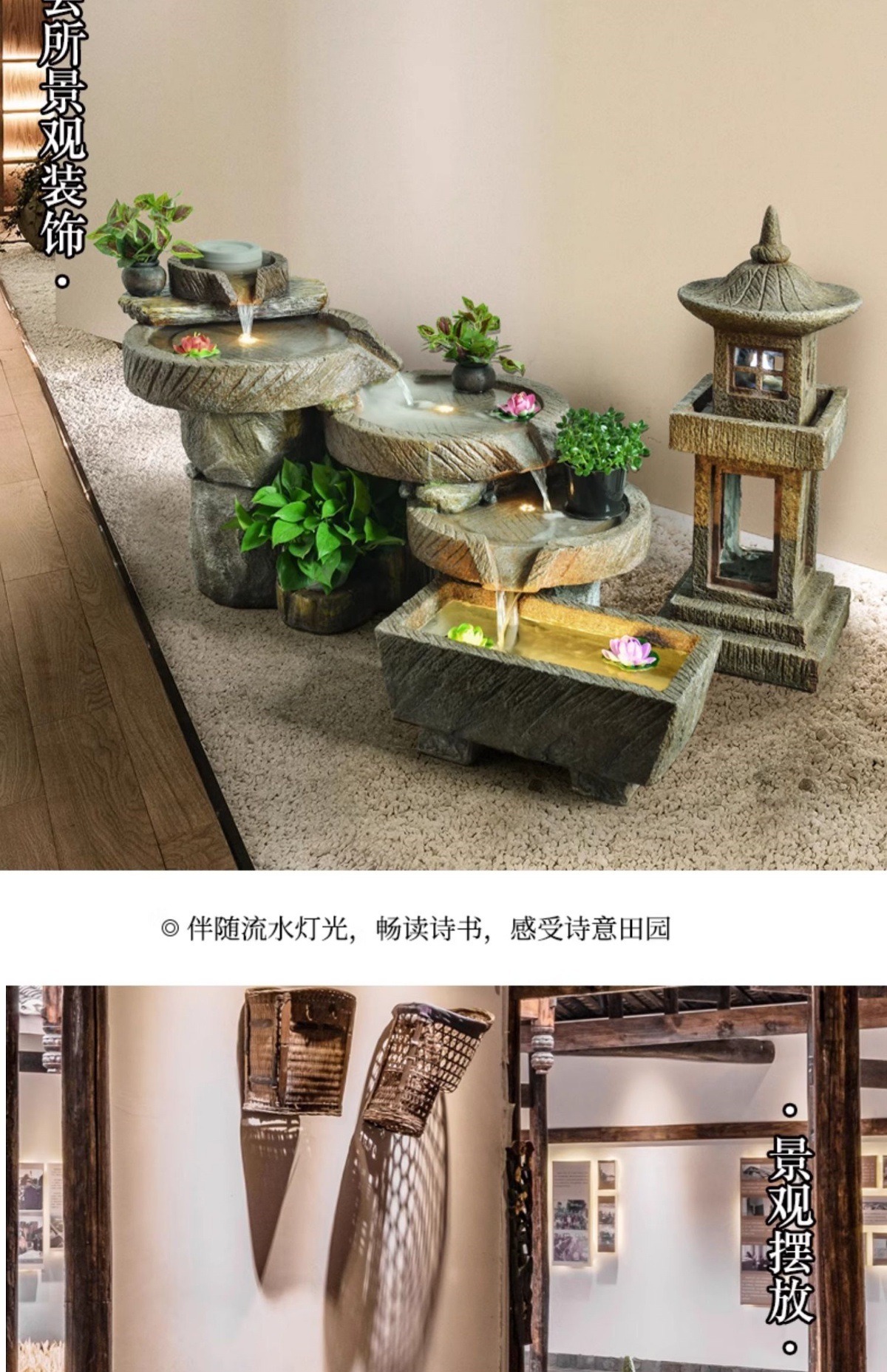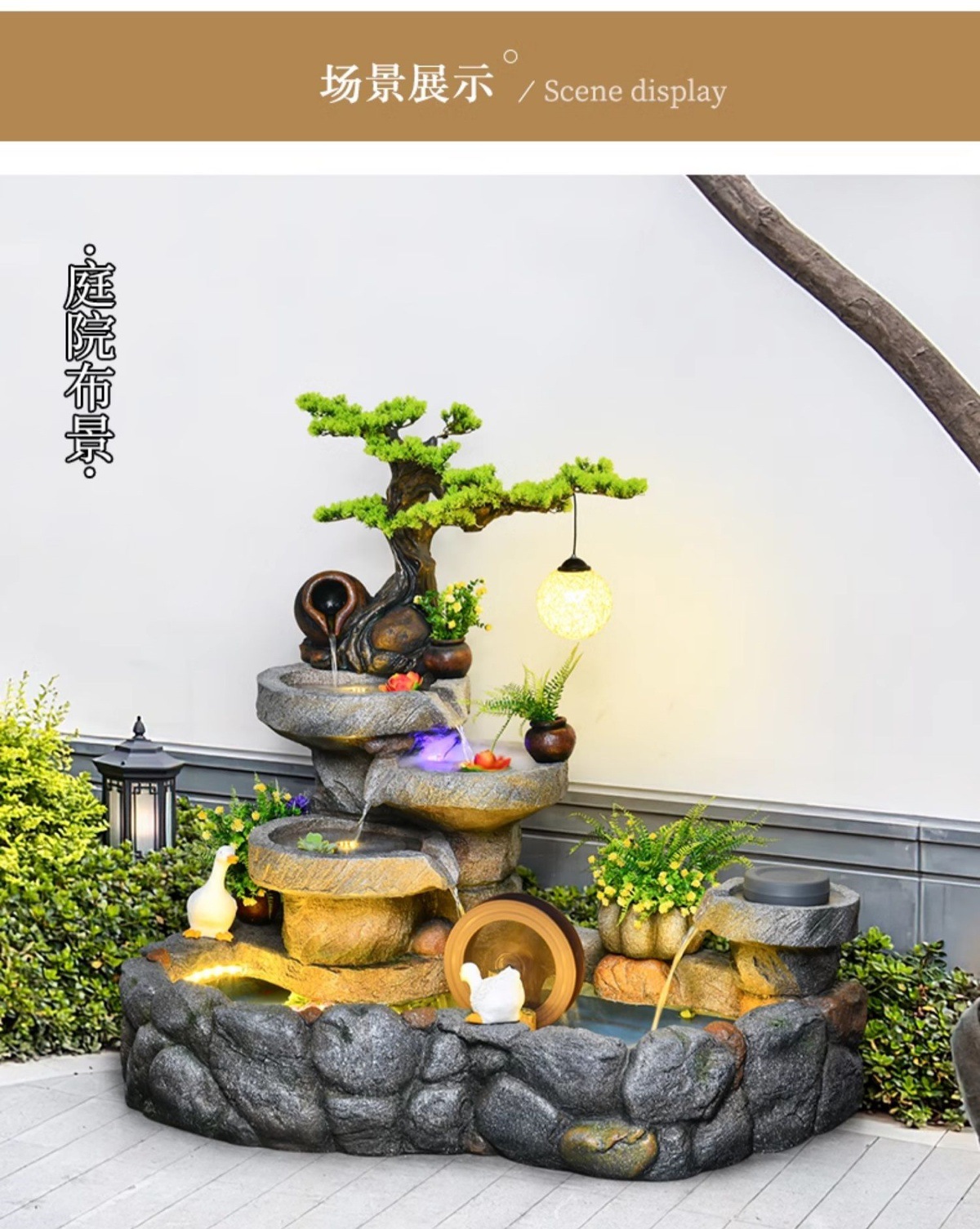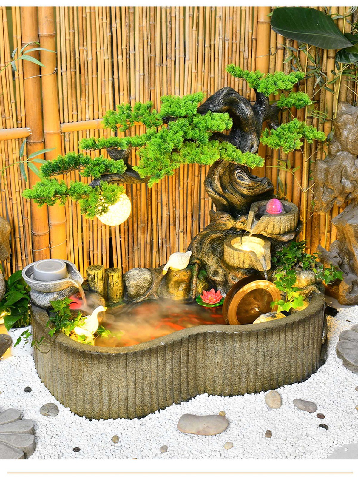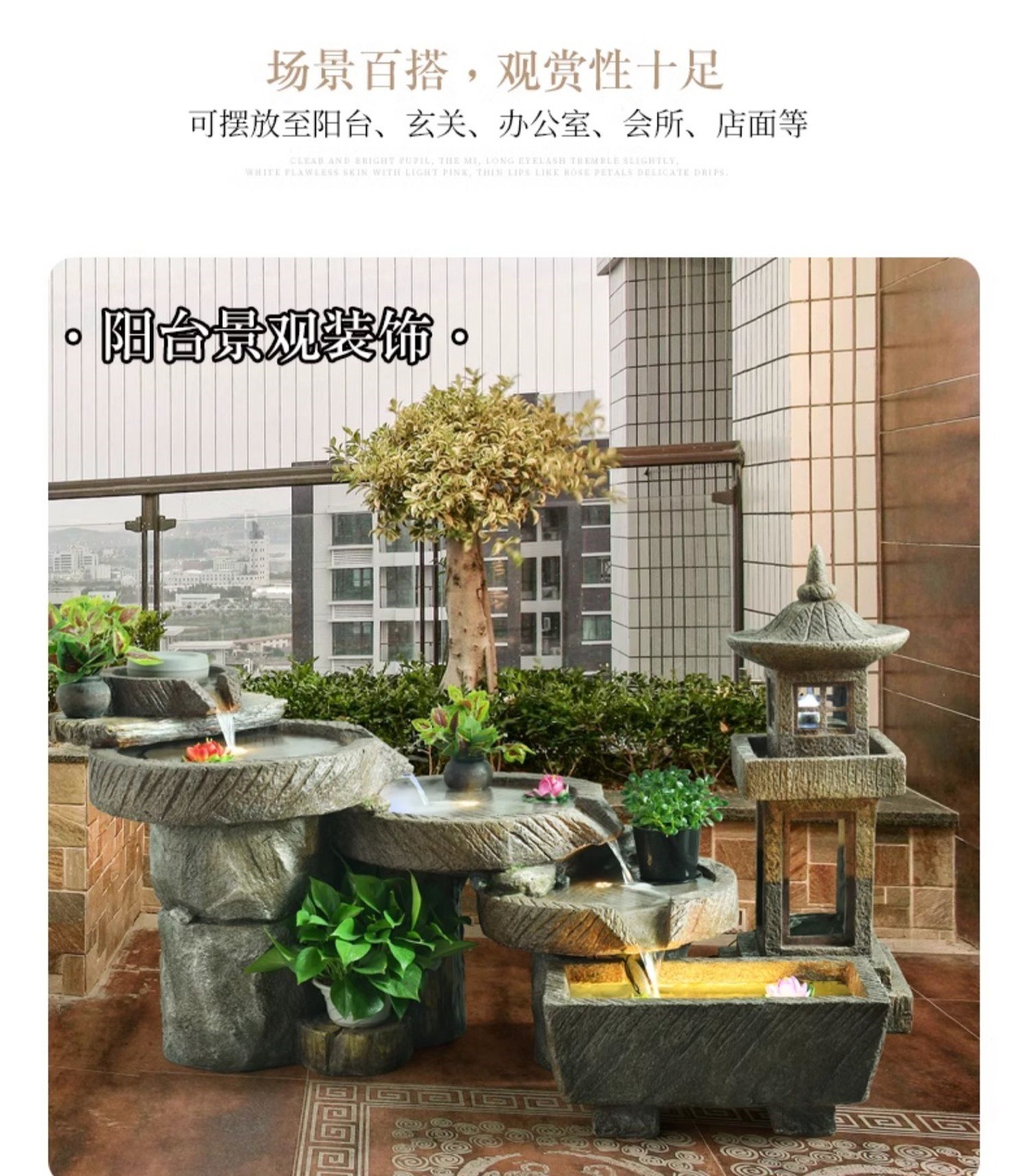 가짜 바위, 흐르는 물 분수 장식품, 안뜰 수경 시설, 발코니 물고기 연못, 실내 조경, 현관 테라스, 정원 장식