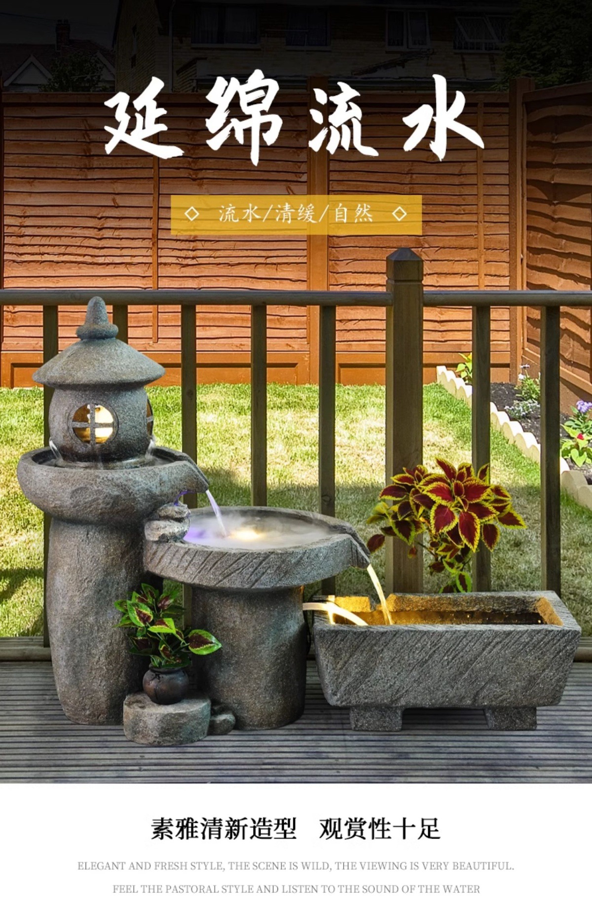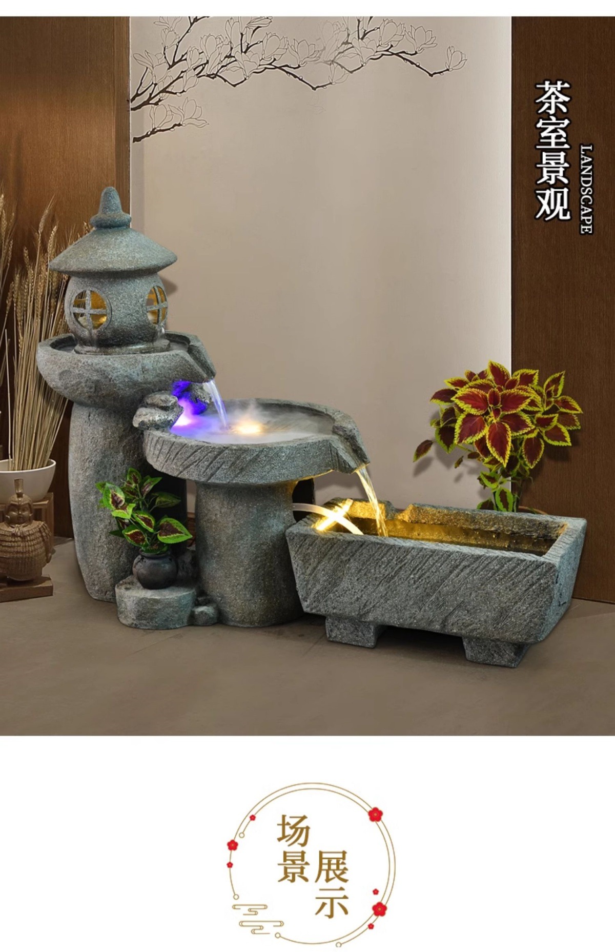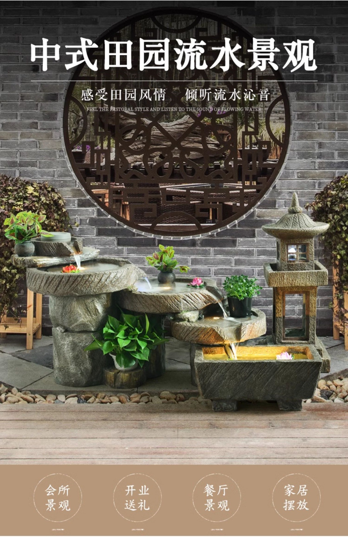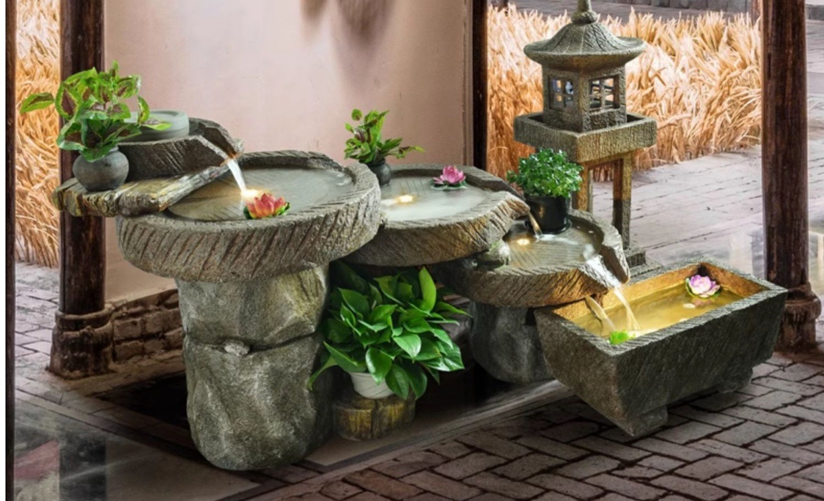 가짜 바위, 흐르는 물 분수 장식품, 안뜰 수경 시설, 발코니 물고기 연못, 실내 조경, 현관 테라스, 정원 장식