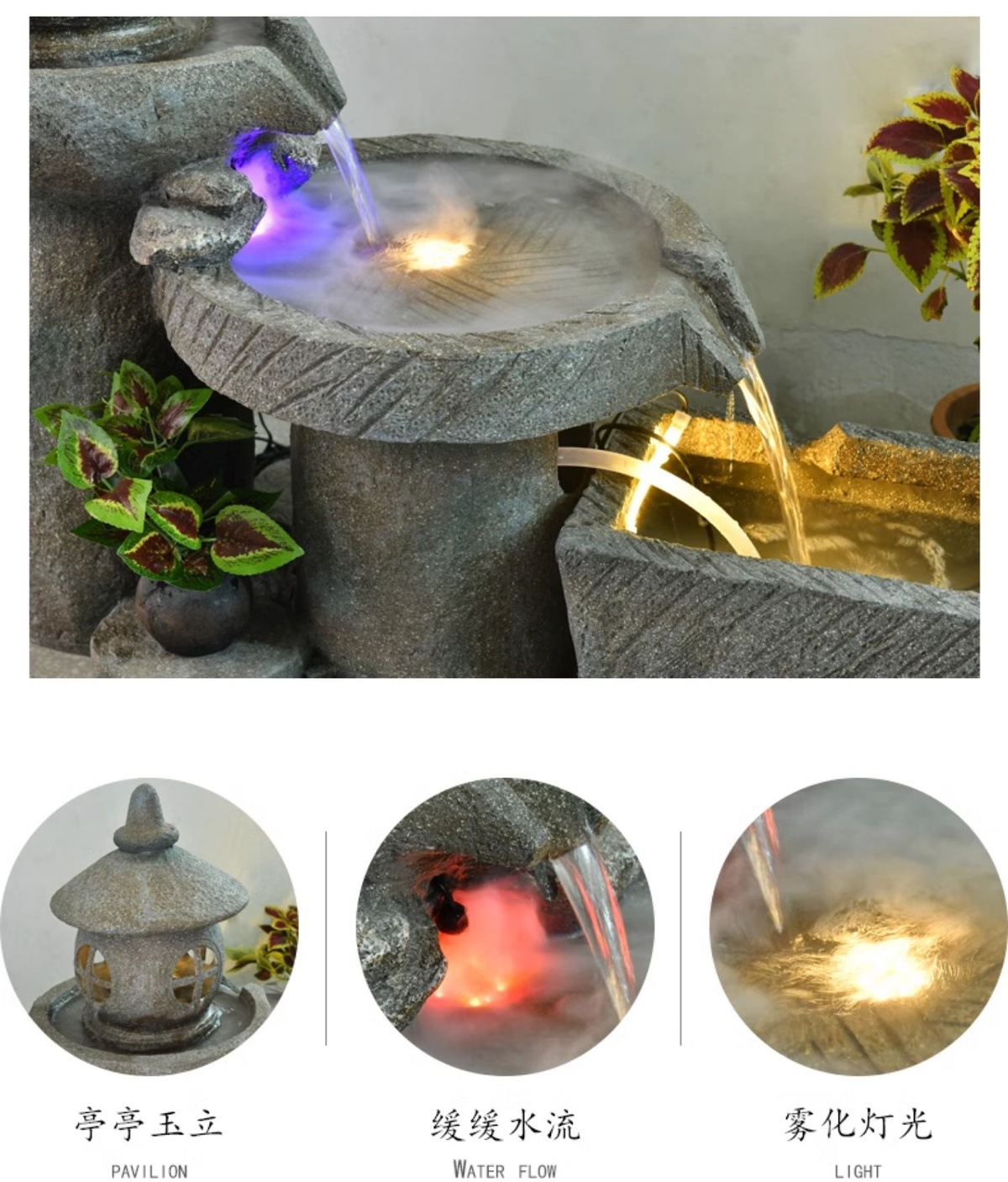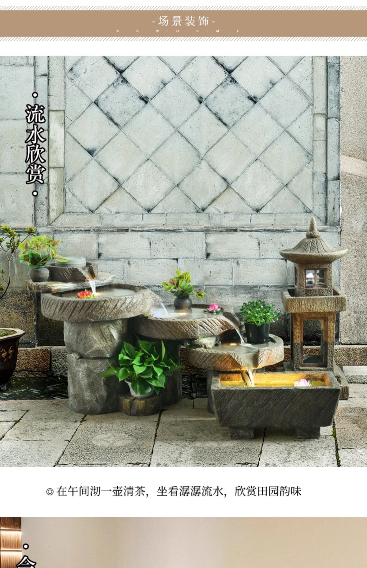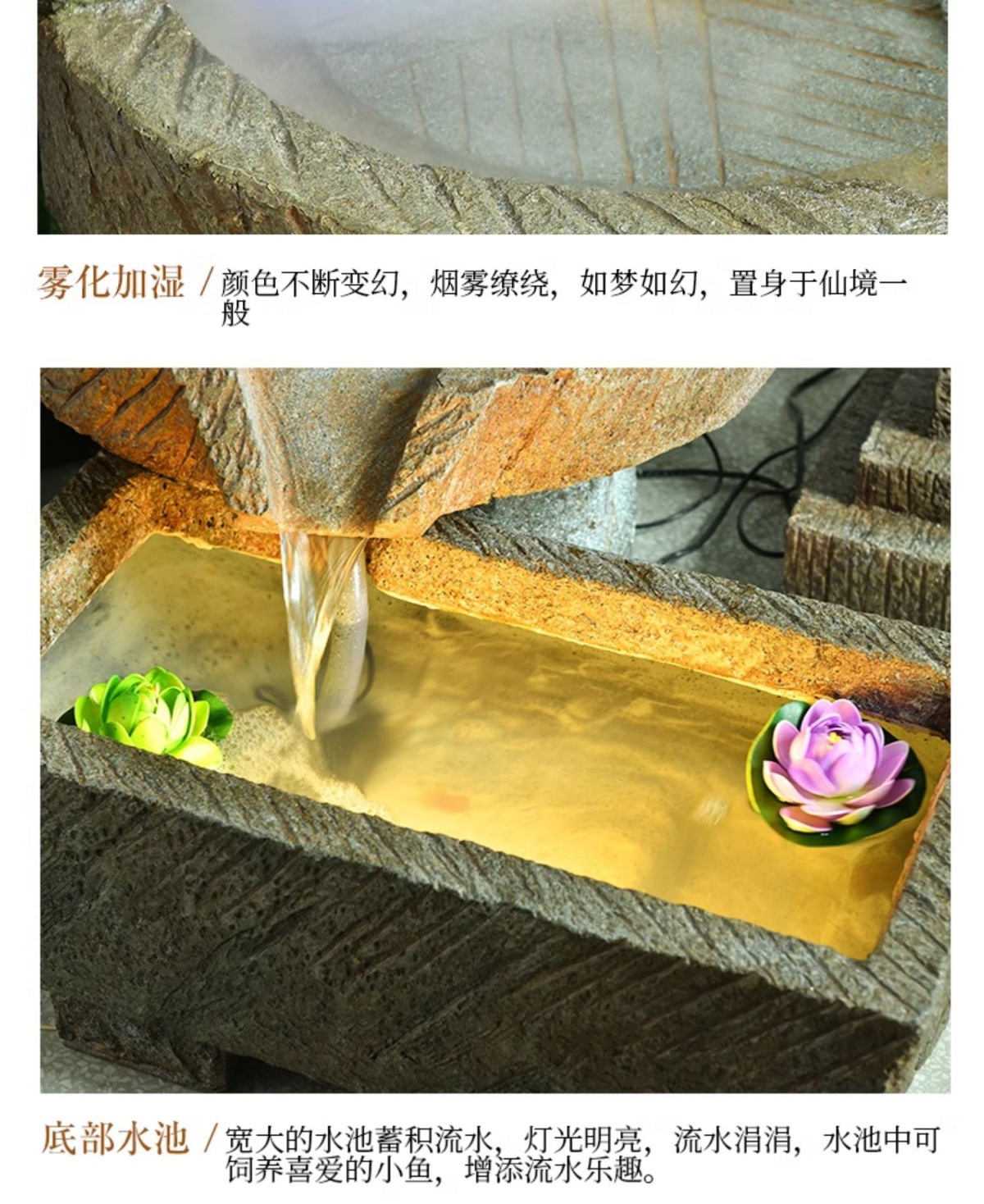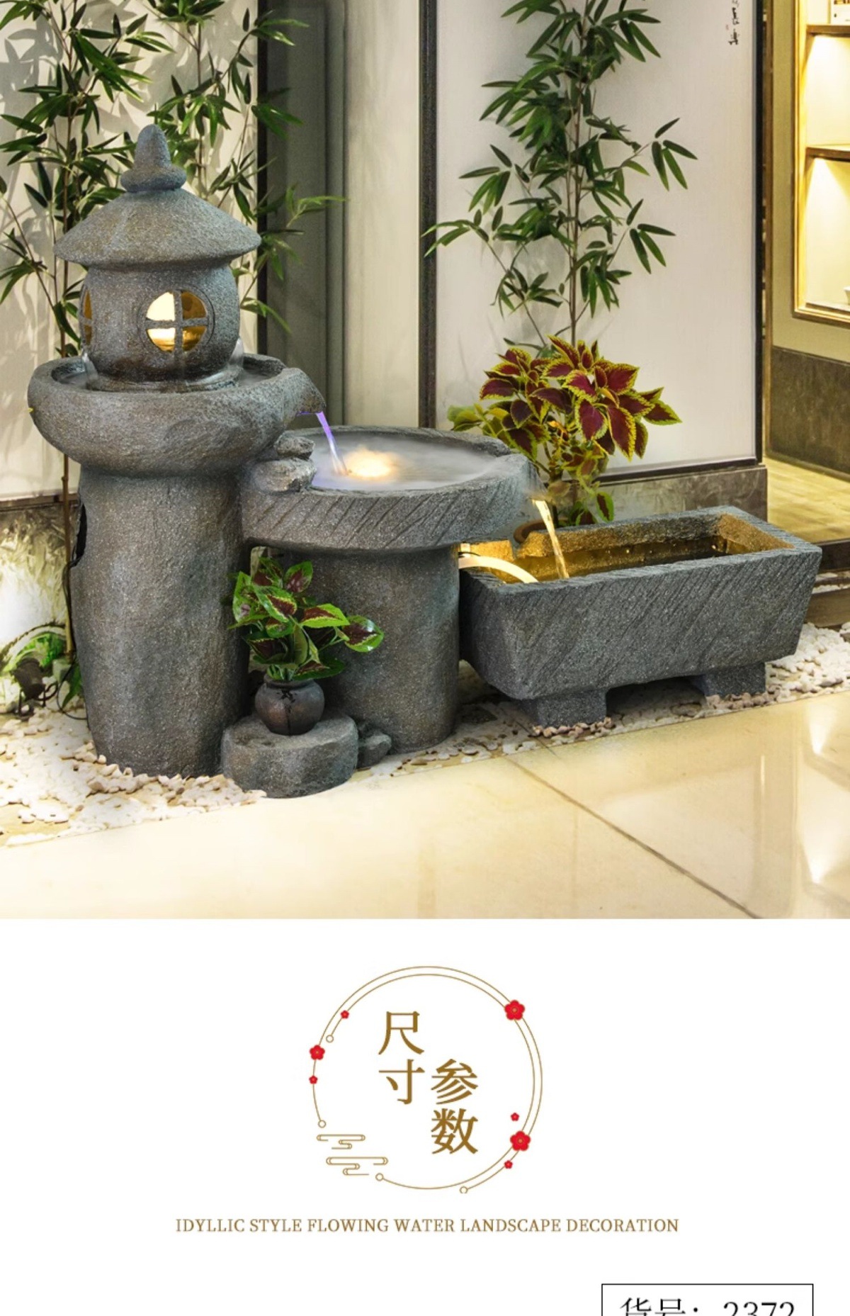 가짜 바위, 흐르는 물 분수 장식품, 안뜰 수경 시설, 발코니 물고기 연못, 실내 조경, 현관 테라스, 정원 장식