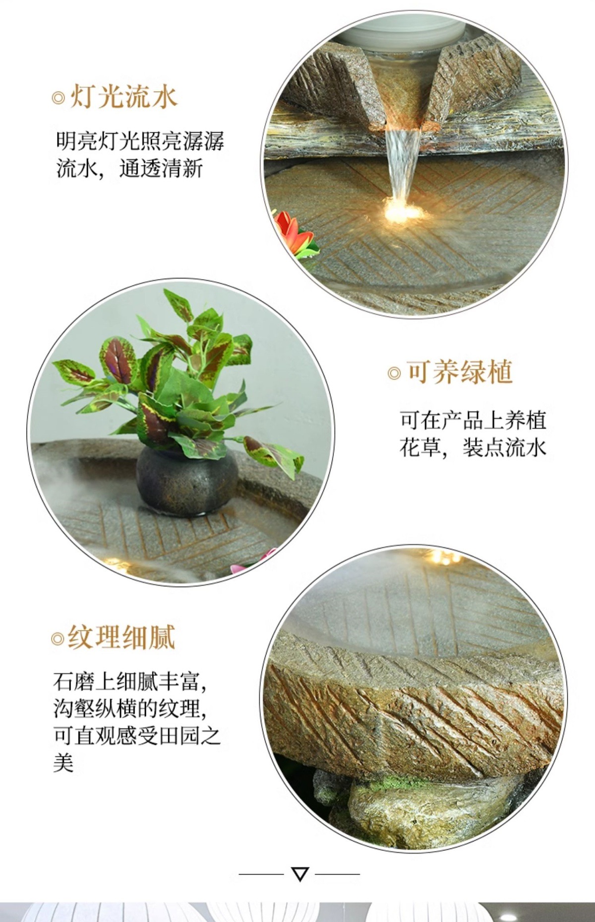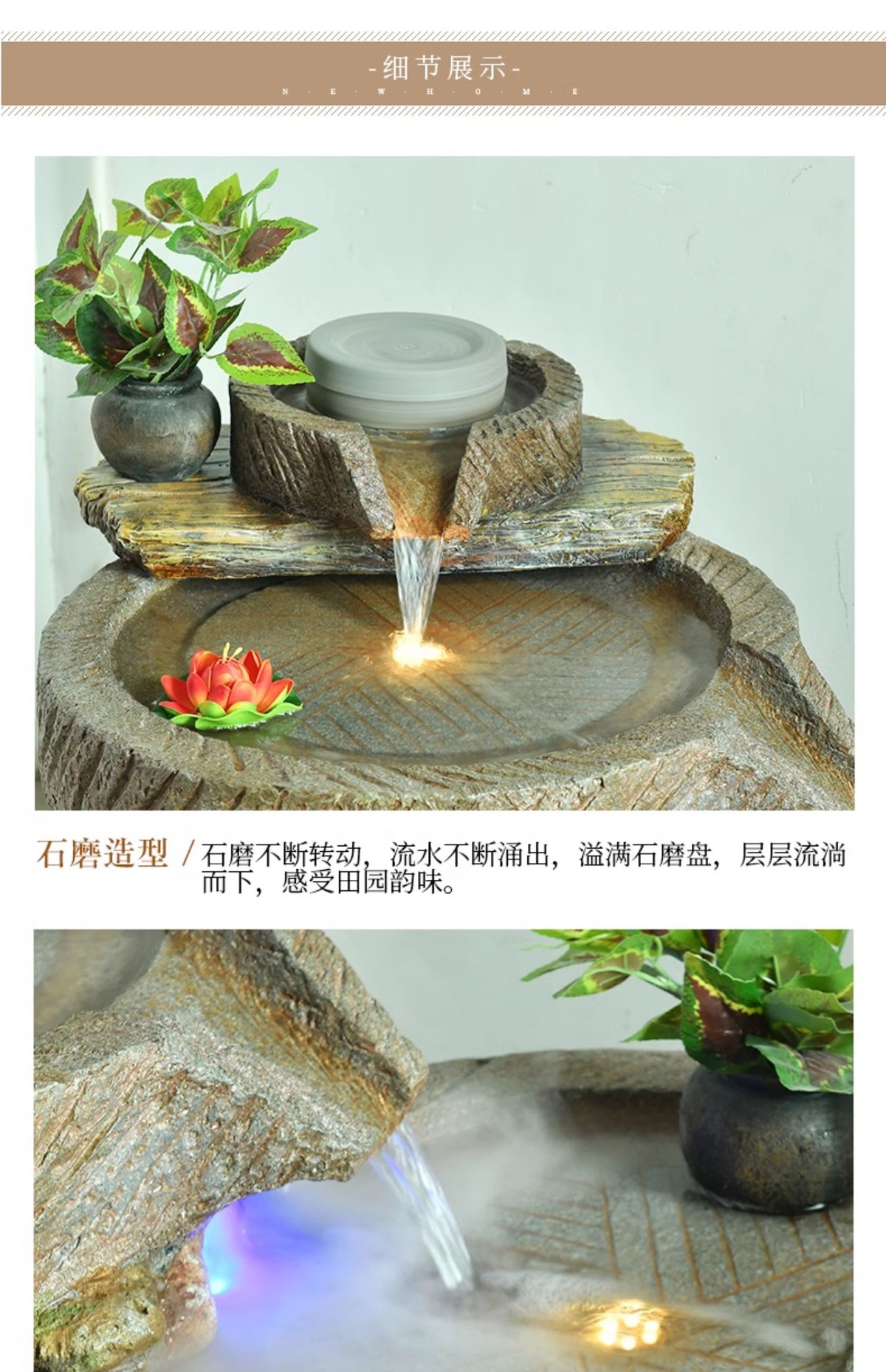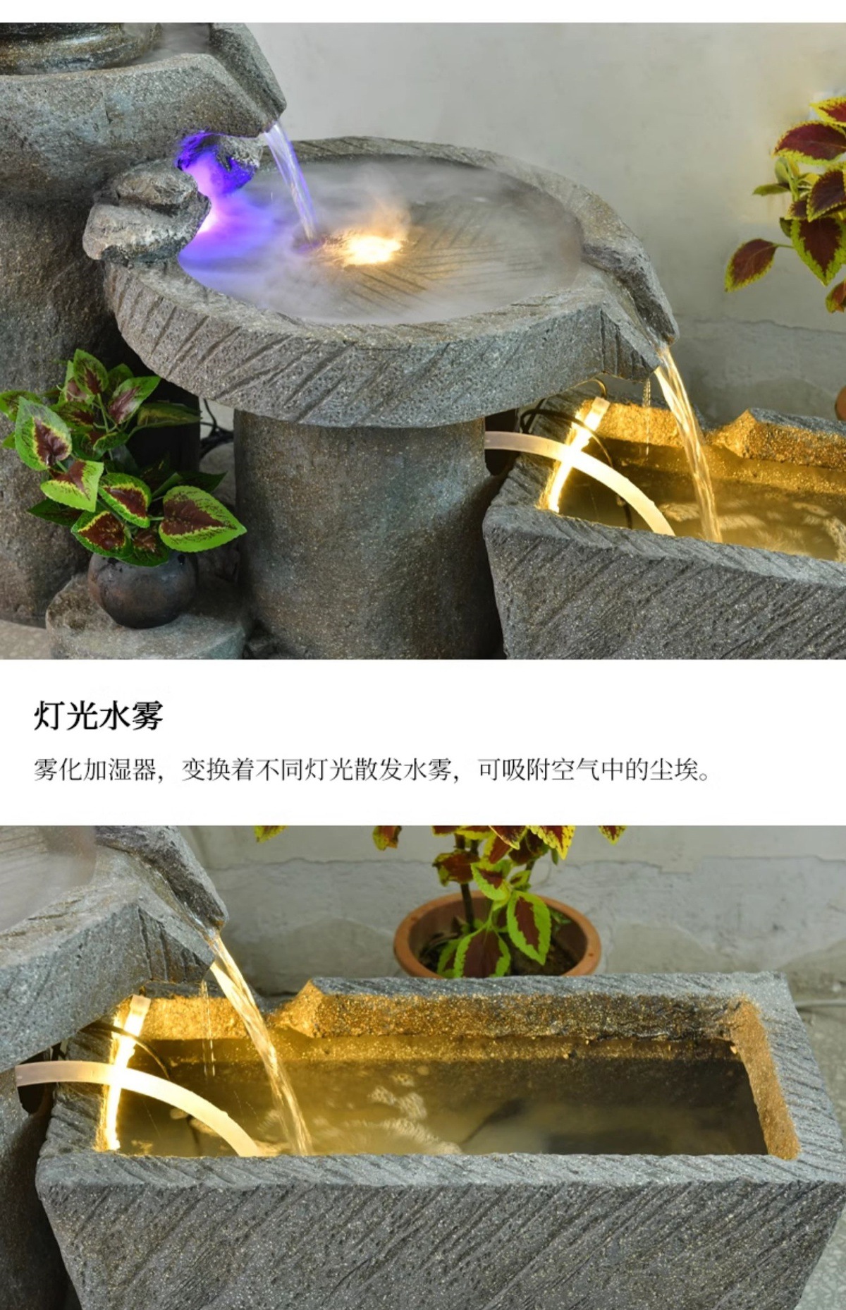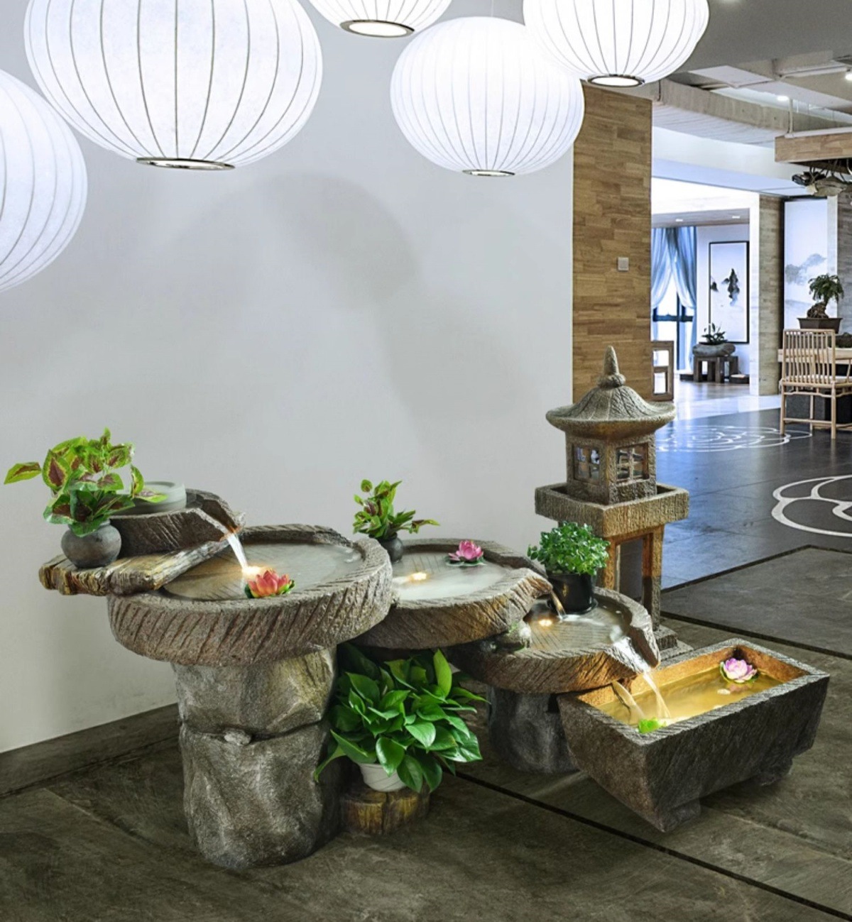 가짜 바위, 흐르는 물 분수 장식품, 안뜰 수경 시설, 발코니 물고기 연못, 실내 조경, 현관 테라스, 정원 장식