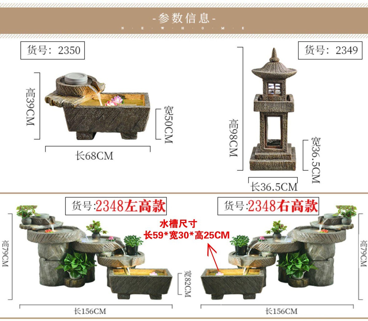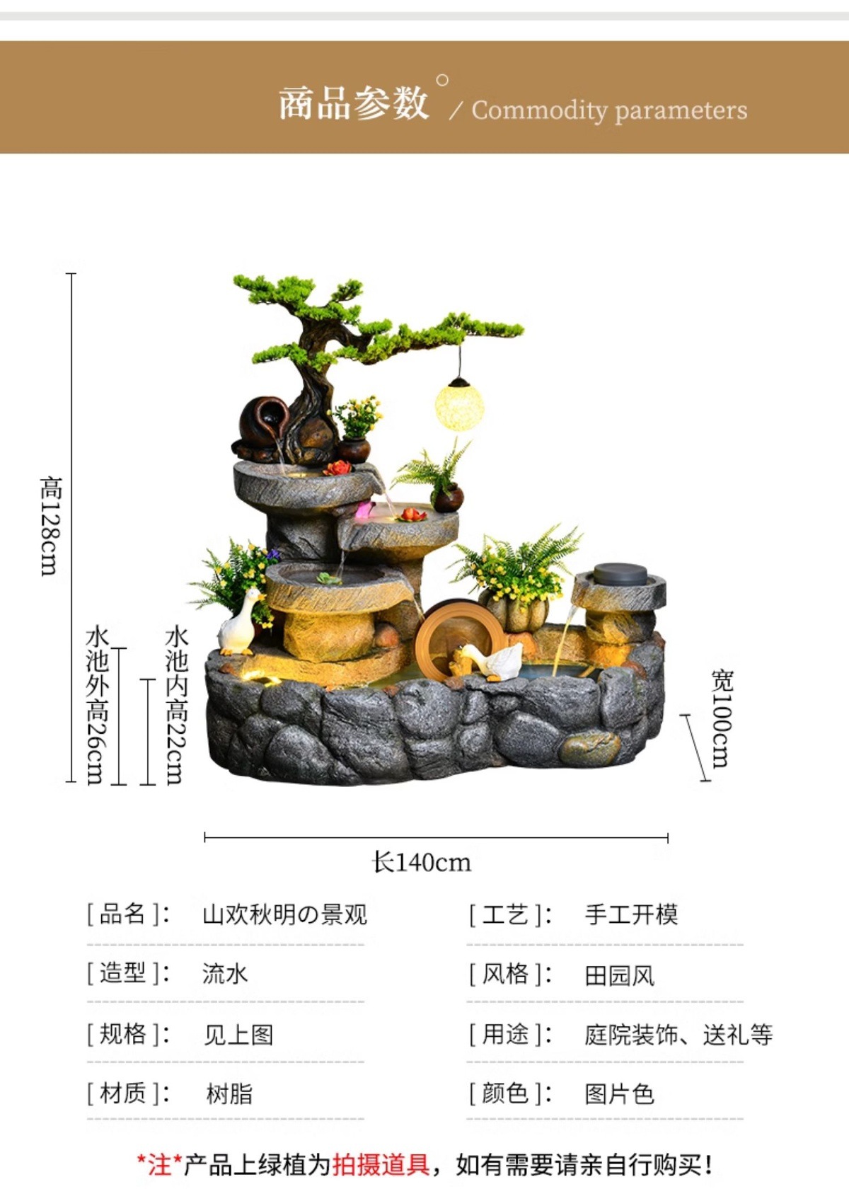 • 2307 물레방아 물고기 연못 모델: 길이 83cm 너비 51cm 높이 76cm