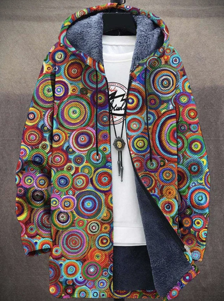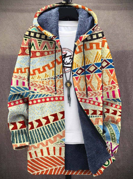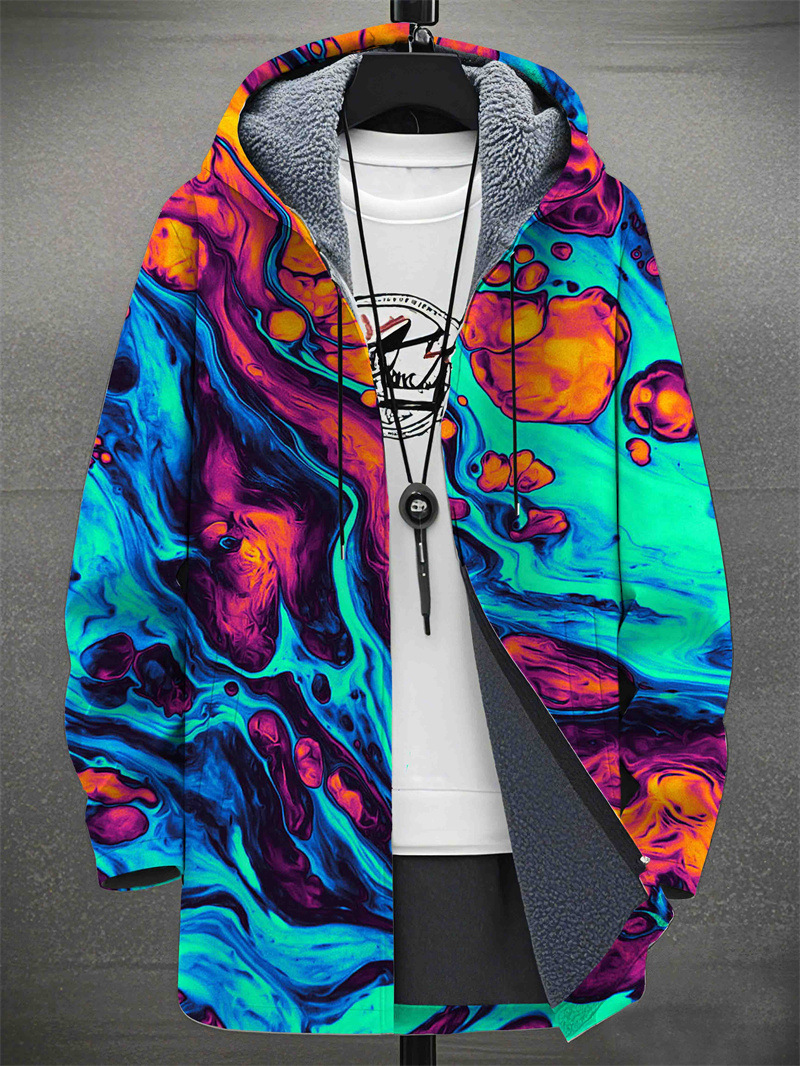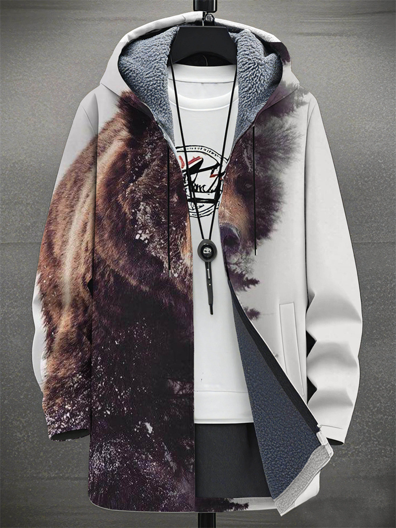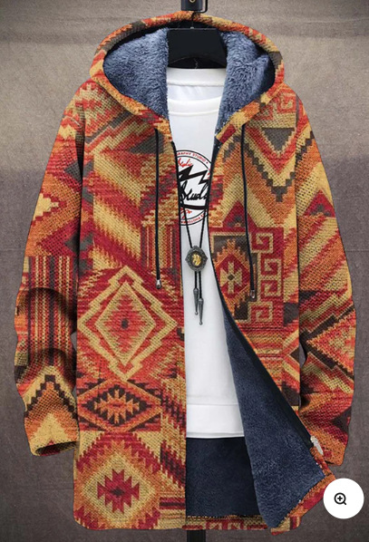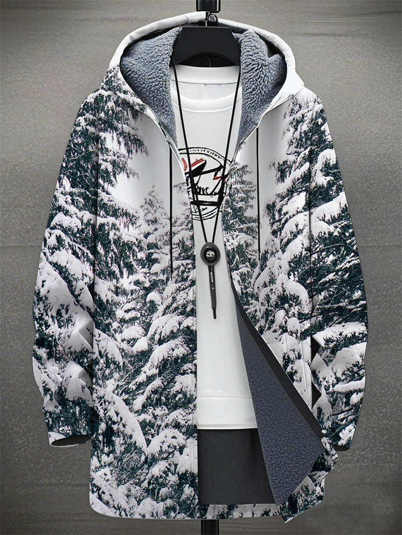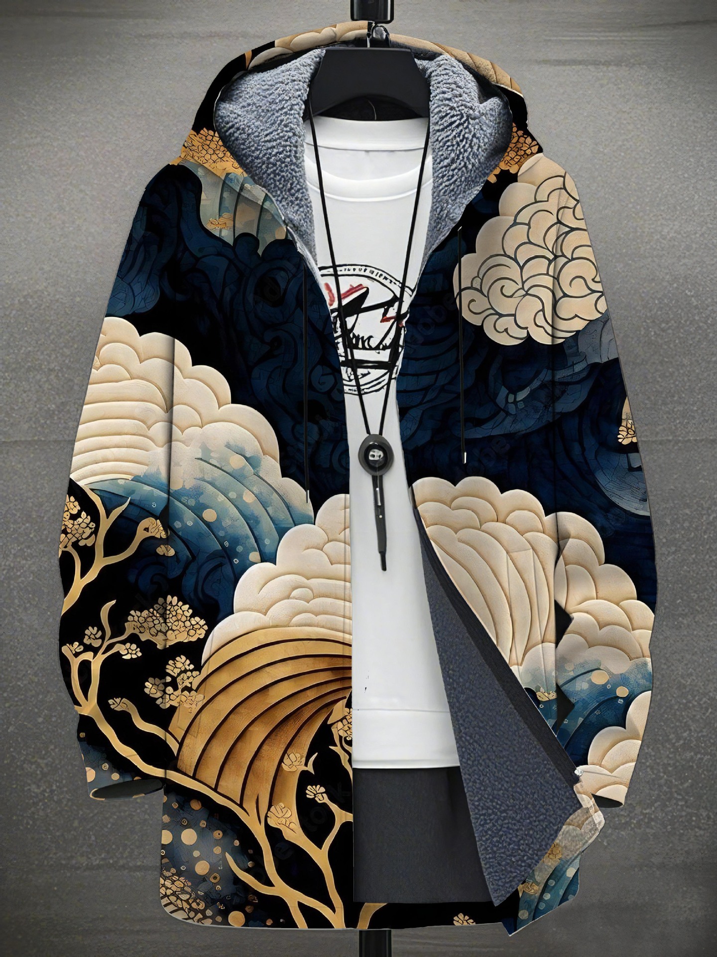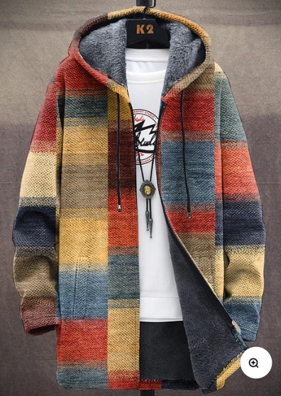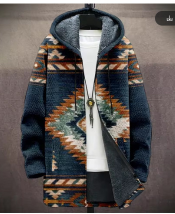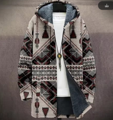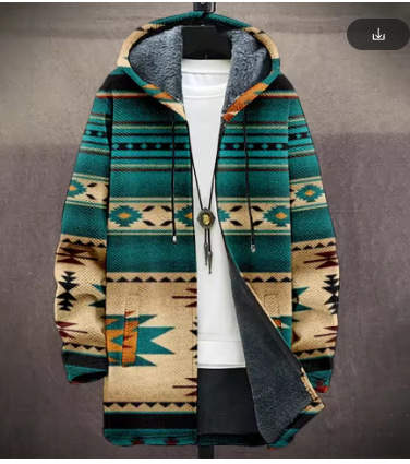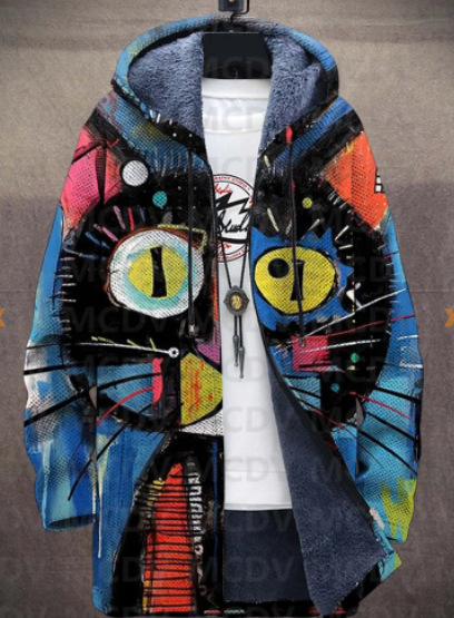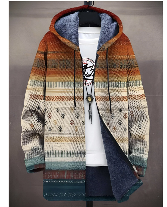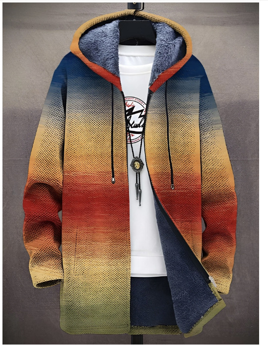 2024 겨울 새로운 패션 디지털 인쇄 기모 남성 코트 국경 캐주얼 남성 지퍼 후드 카디건