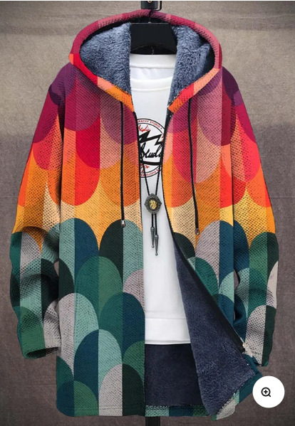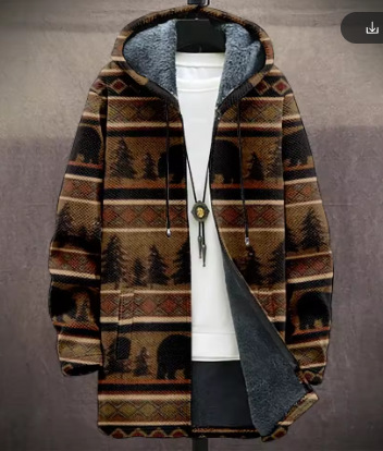 2024 겨울 새로운 패션 디지털 인쇄 기모 남성 코트 국경 캐주얼 남성 지퍼 후드 카디건스토어 가기